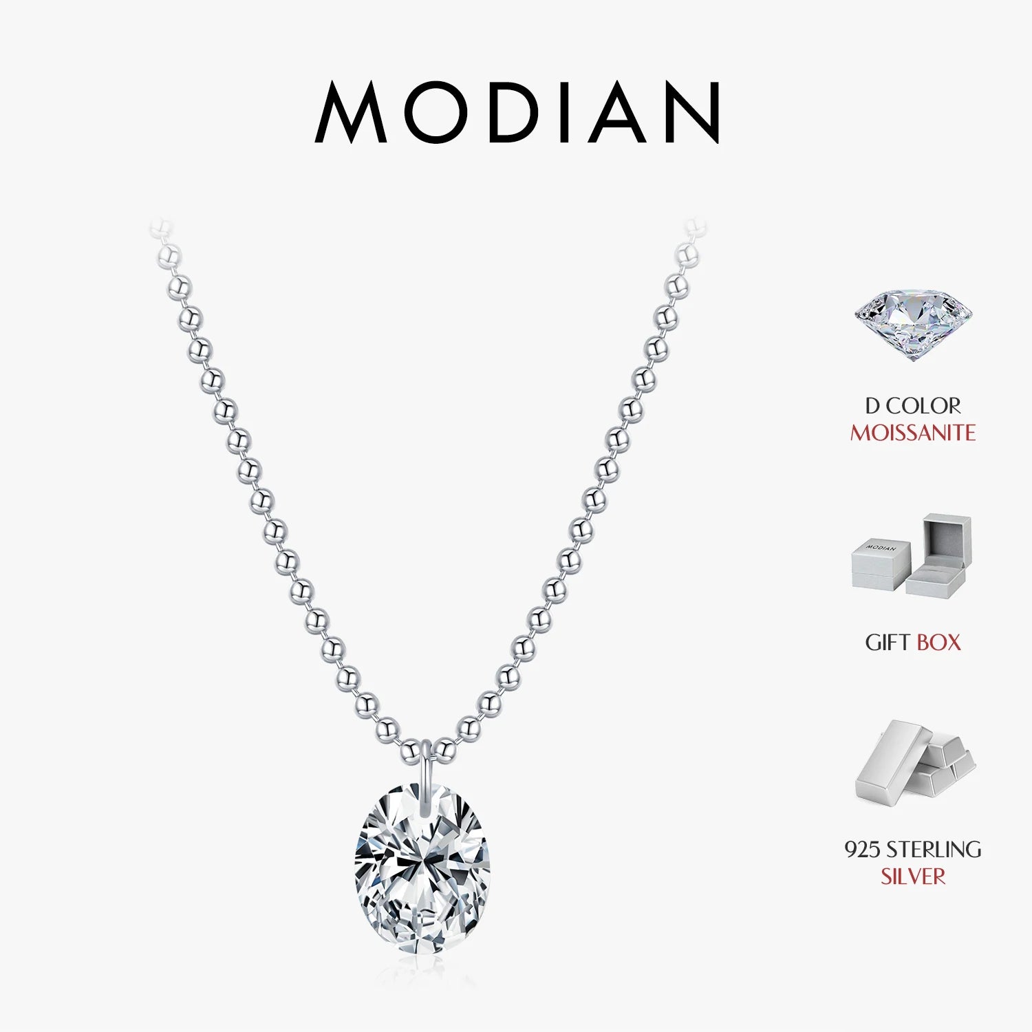 Colgante de moissanita ovalada de 1,5 quilates de MODIAN, cadena de cuentas sencillas de plata de ley 925, collar para mujer, joyería fina de uso diario.
