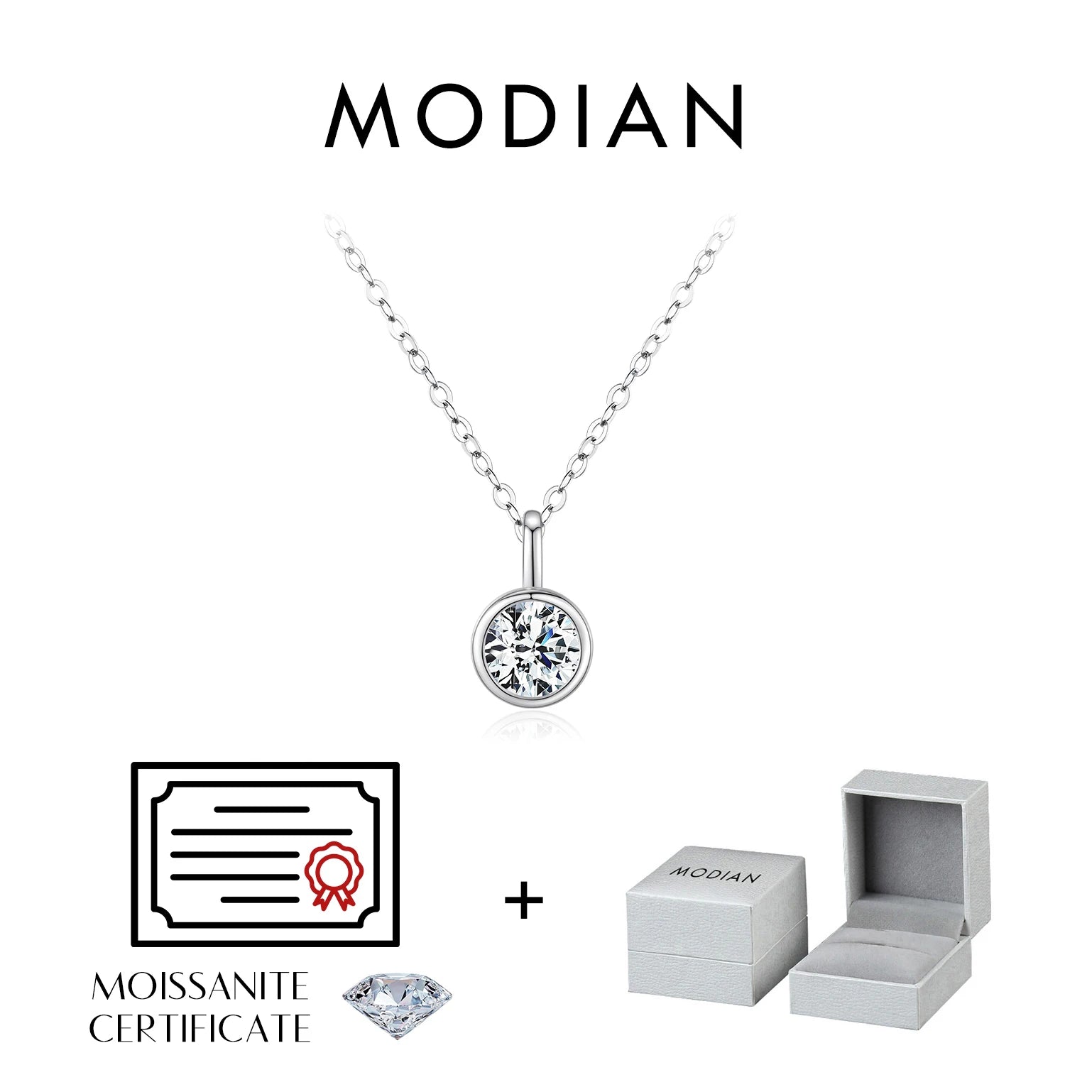 Collar con colgante de moissanita de 1 quilate, color D, engaste de bisel redondo, plata 925, diamante de laboratorio, joyería para mujer con certificado y caja.