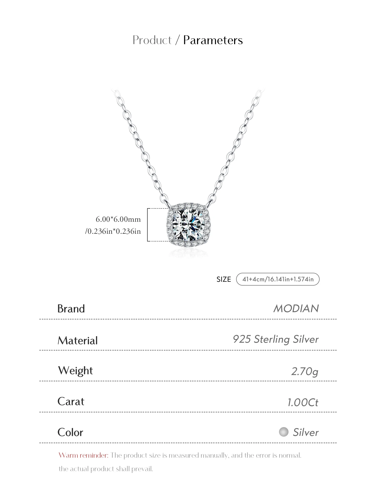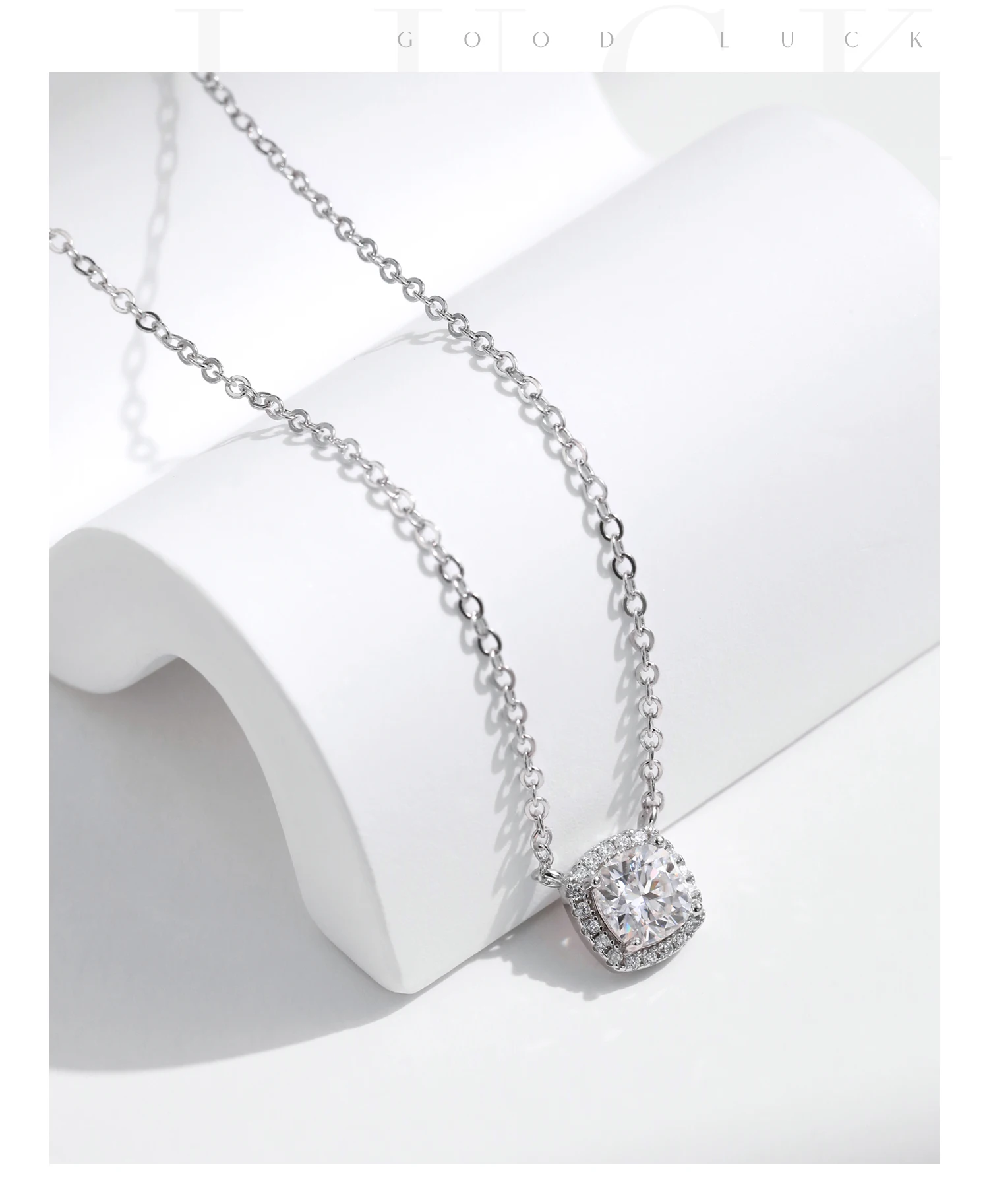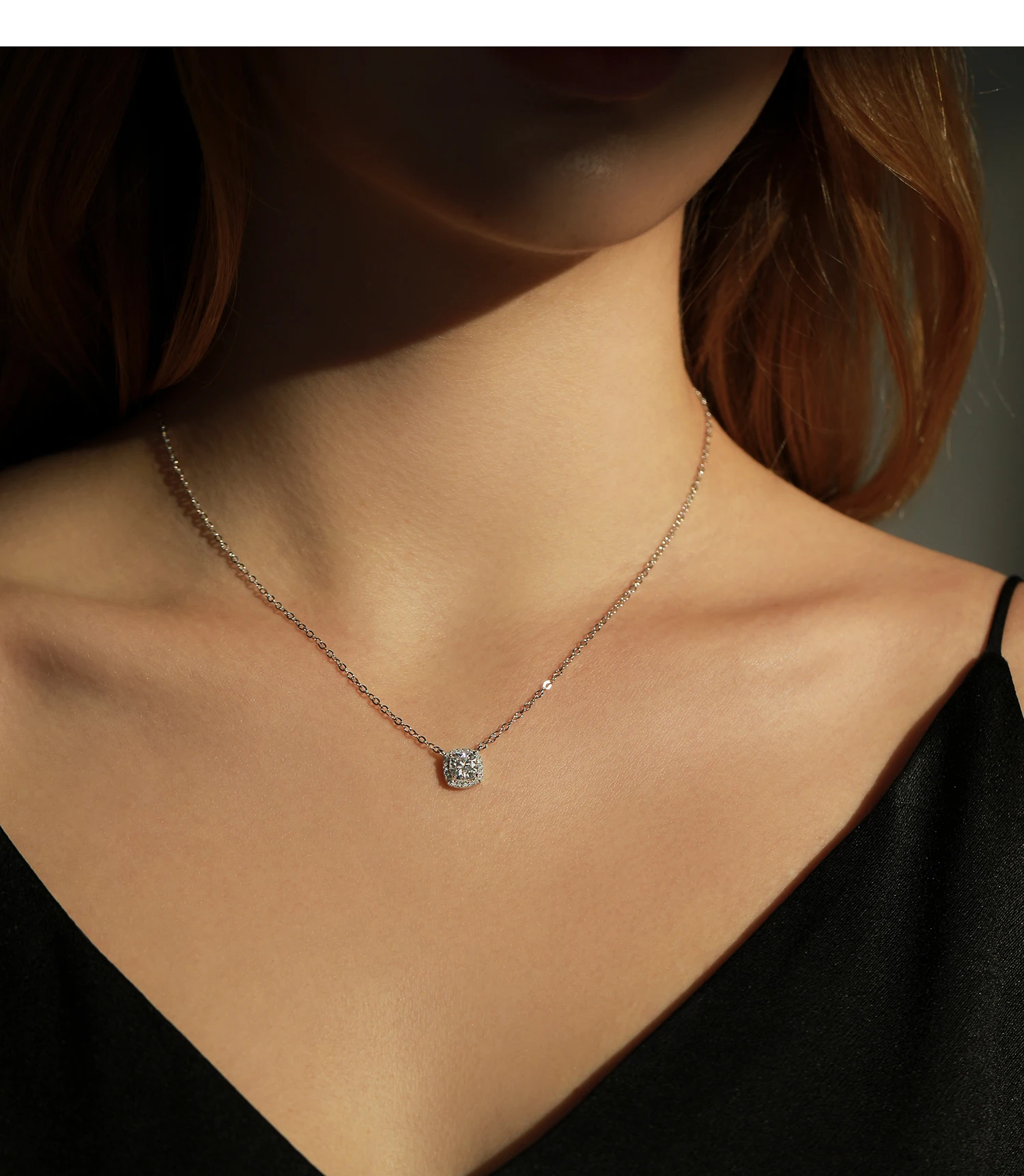 Collar con colgante de moissanita con halo de corte cojín cuadrado de 1 quilate de MODIAN para mujer, plata de ley 925, deslumbrante joyería nupcial para bodas.