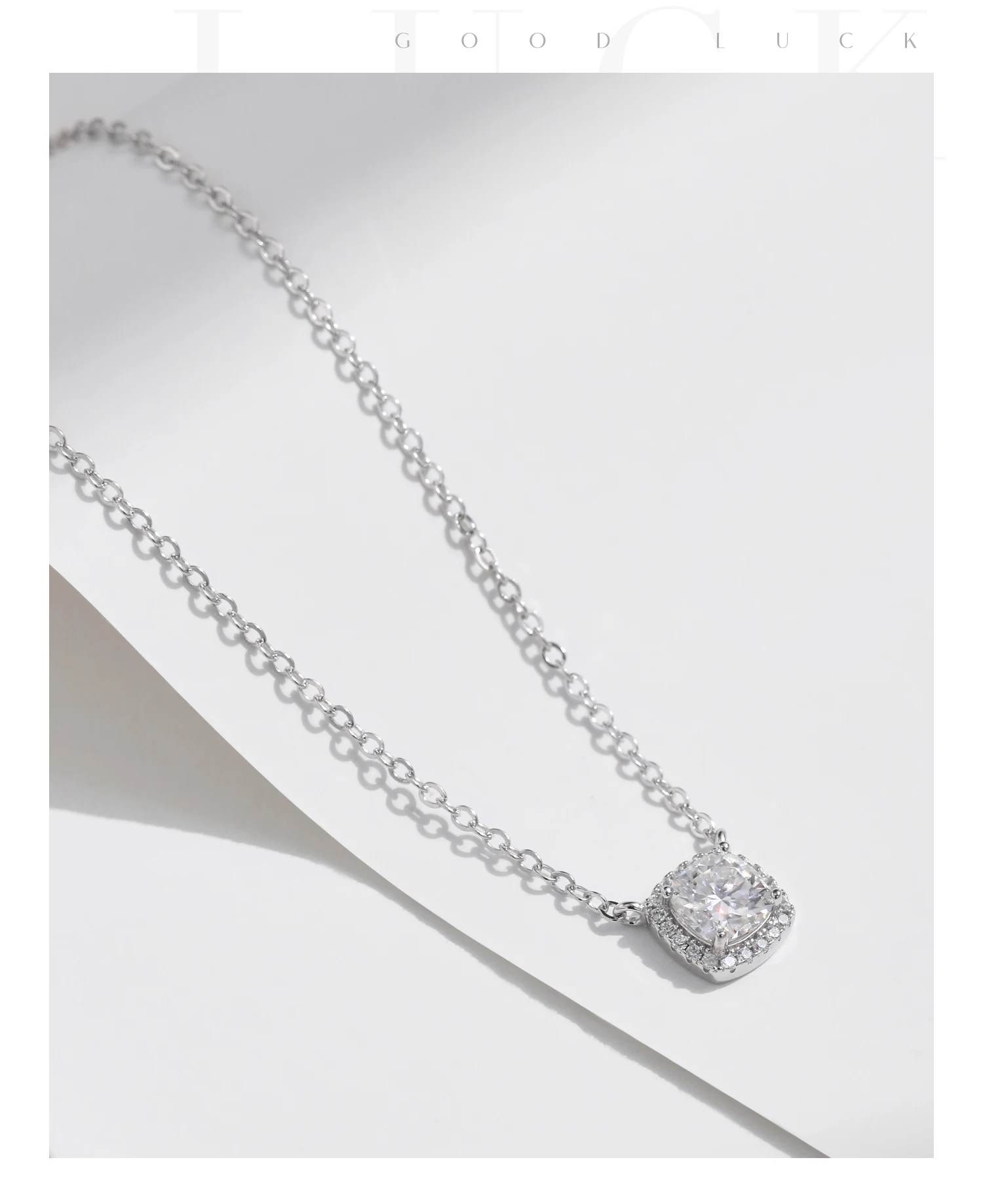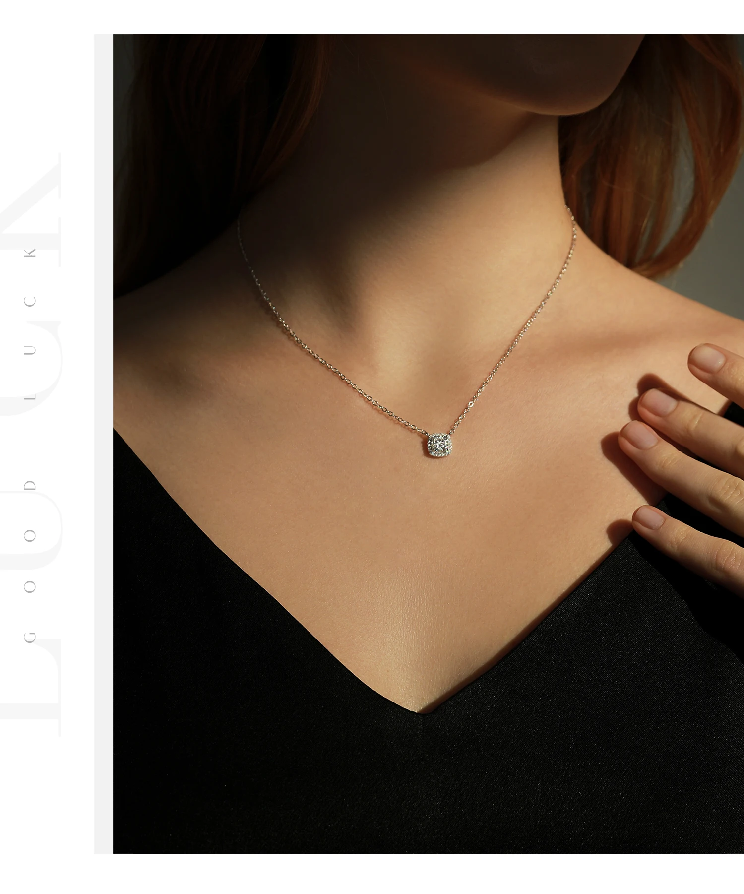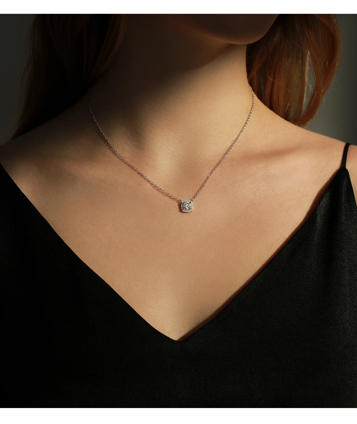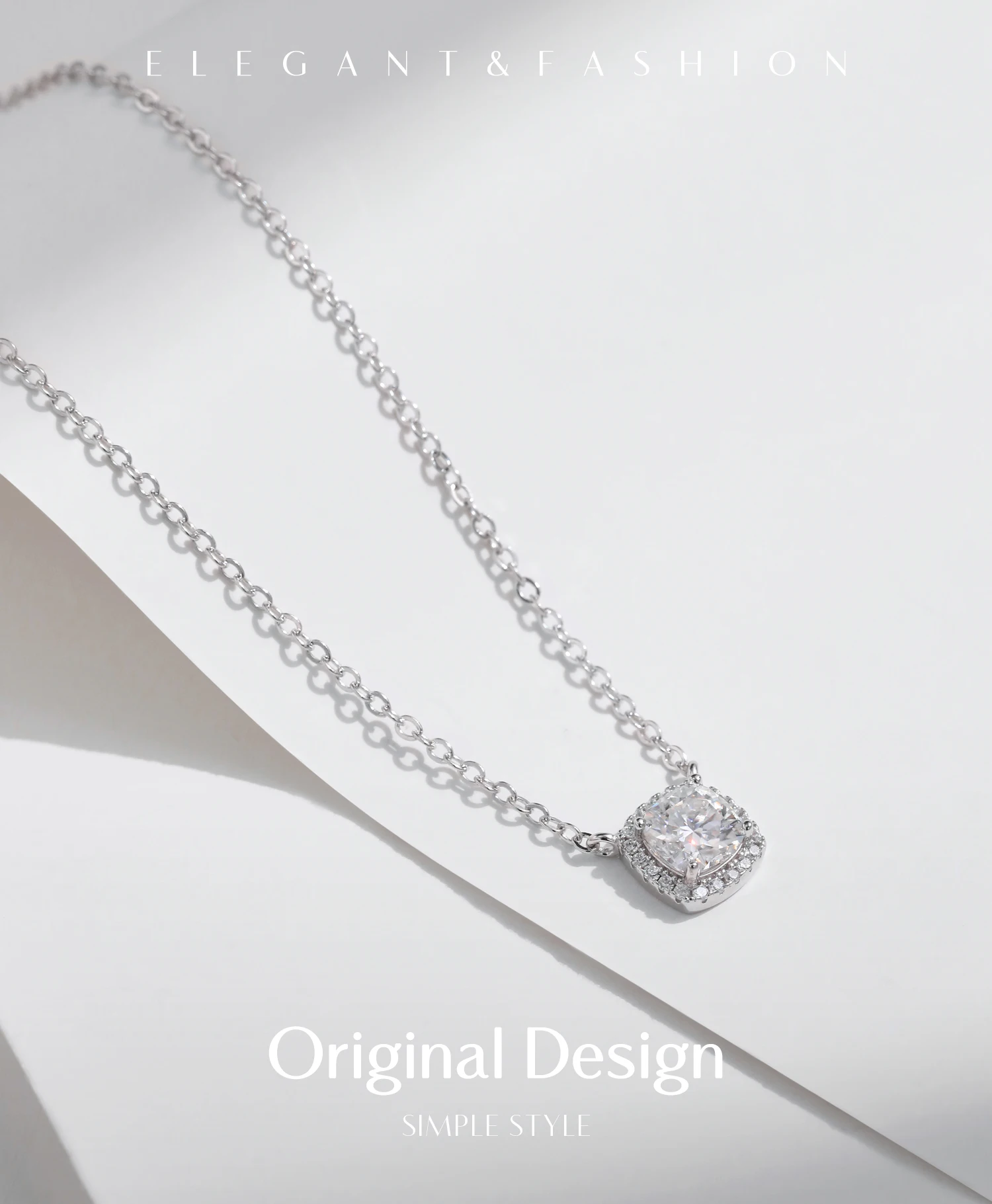 Collar con colgante de moissanita con halo de corte cojín cuadrado de 1 quilate de MODIAN para mujer, plata de ley 925, deslumbrante joyería nupcial para bodas.
