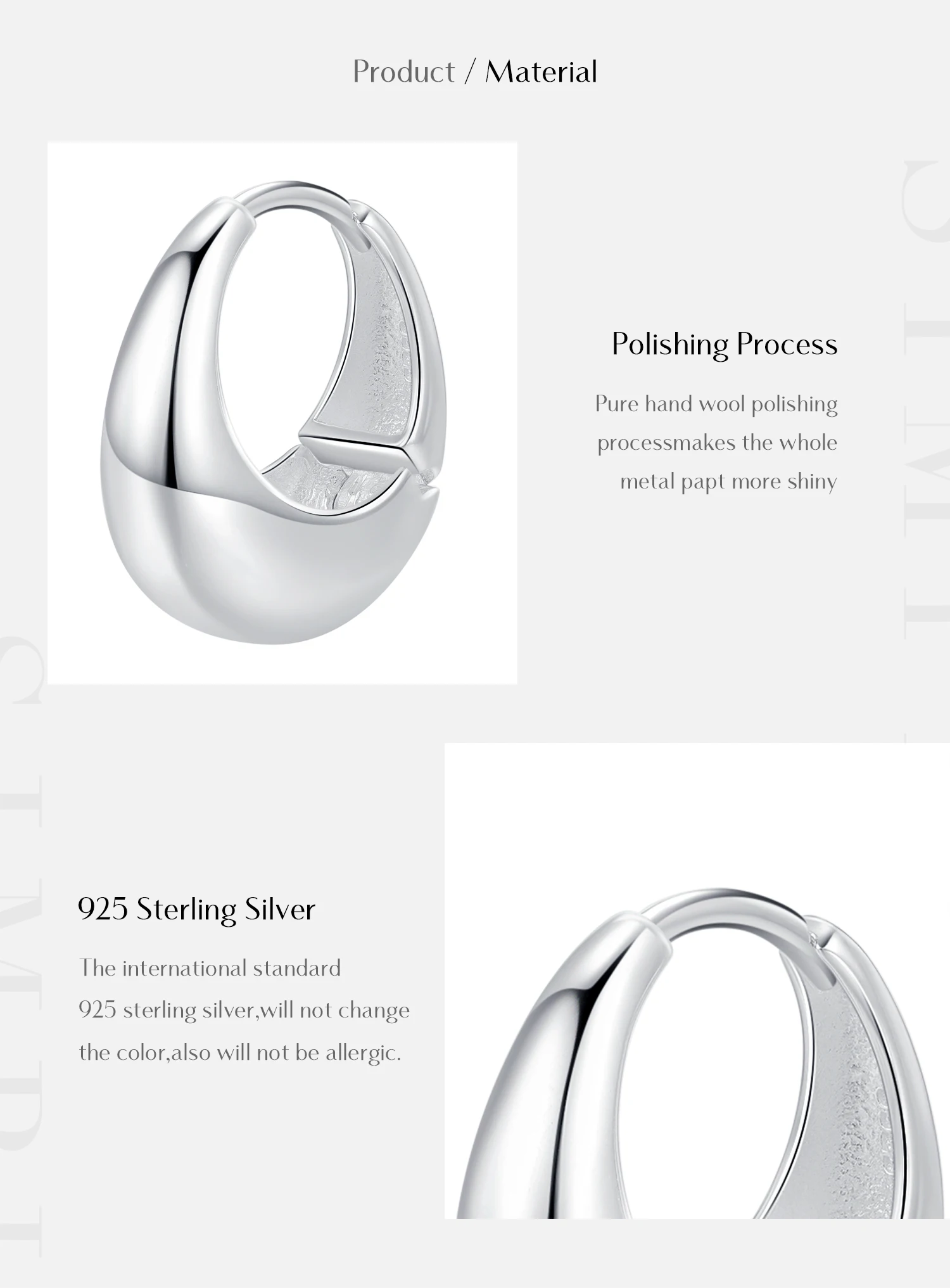 MODIAN 1 pieza de pendientes de aro geométricos lisos y brillantes de plata de ley 925 para mujer, joyería fina para fiestas y vacaciones.