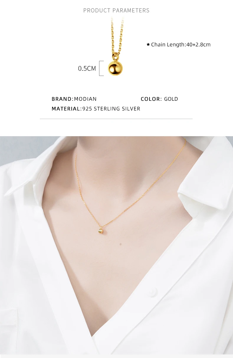 Collar Modian de cadena de plata de ley 925 para mujer, con cuentas pequeñas doradas, accesorios de joyería para mujer