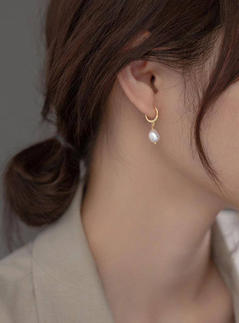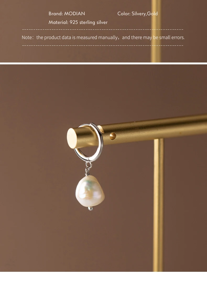 Pendientes de aro Modian de plata de ley 925 con perlas barrocas para mujer, modernos y brillantes, joyería fina, regalo de lujo.