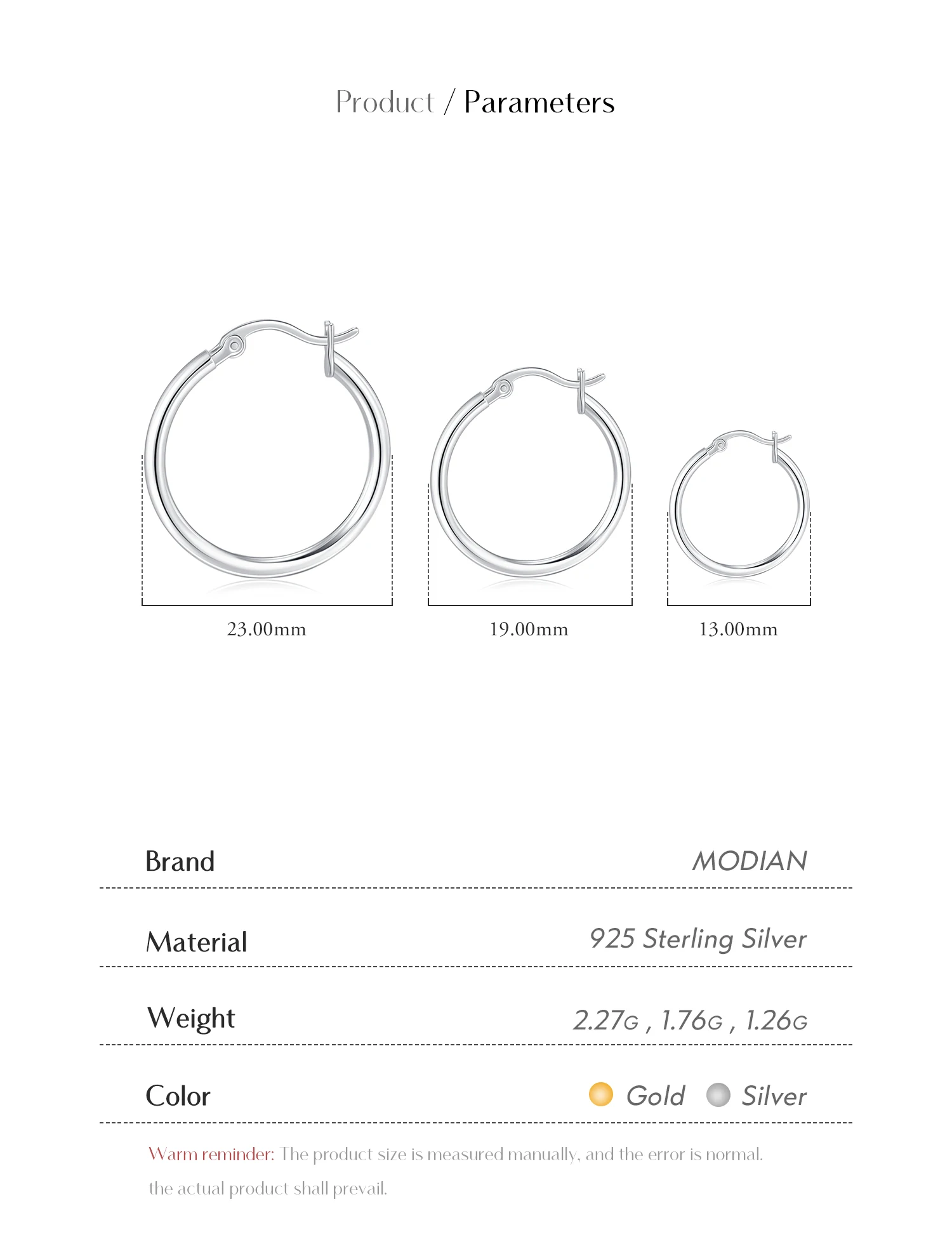 Pendientes de aro franceses clásicos y atrevidos de MODIAN en plata de ley 925, chapados en oro blanco de 18 quilates, joyería fina para mujer.