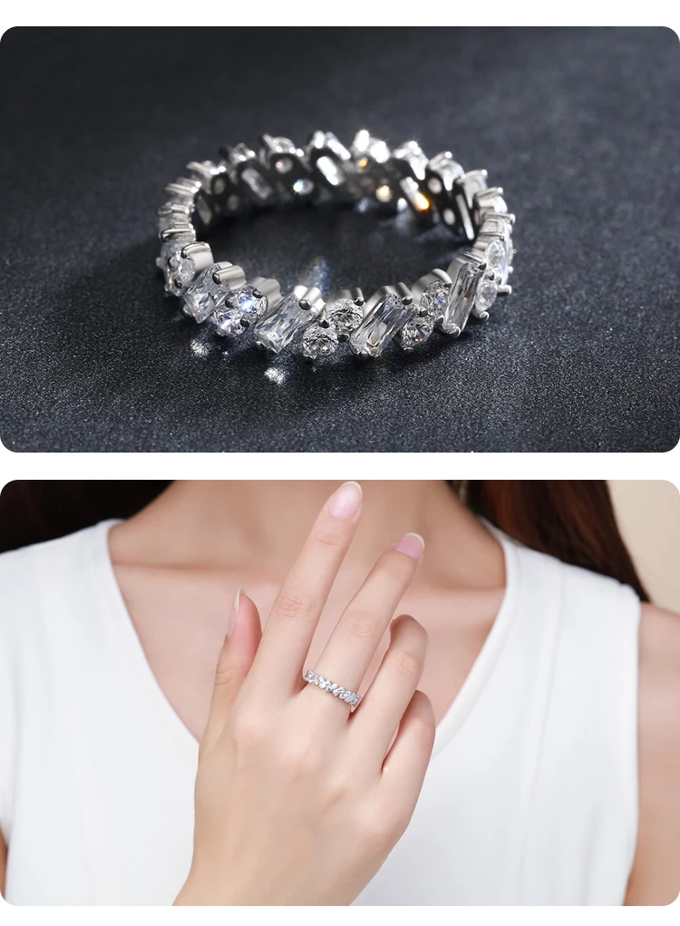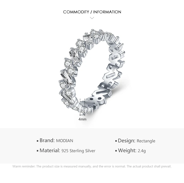 Anillos de eternidad MODIAN de plata de ley 925 con diamantes de imitación clásicos de lujo para mujer, anillos de boda con estilo, joyería fina