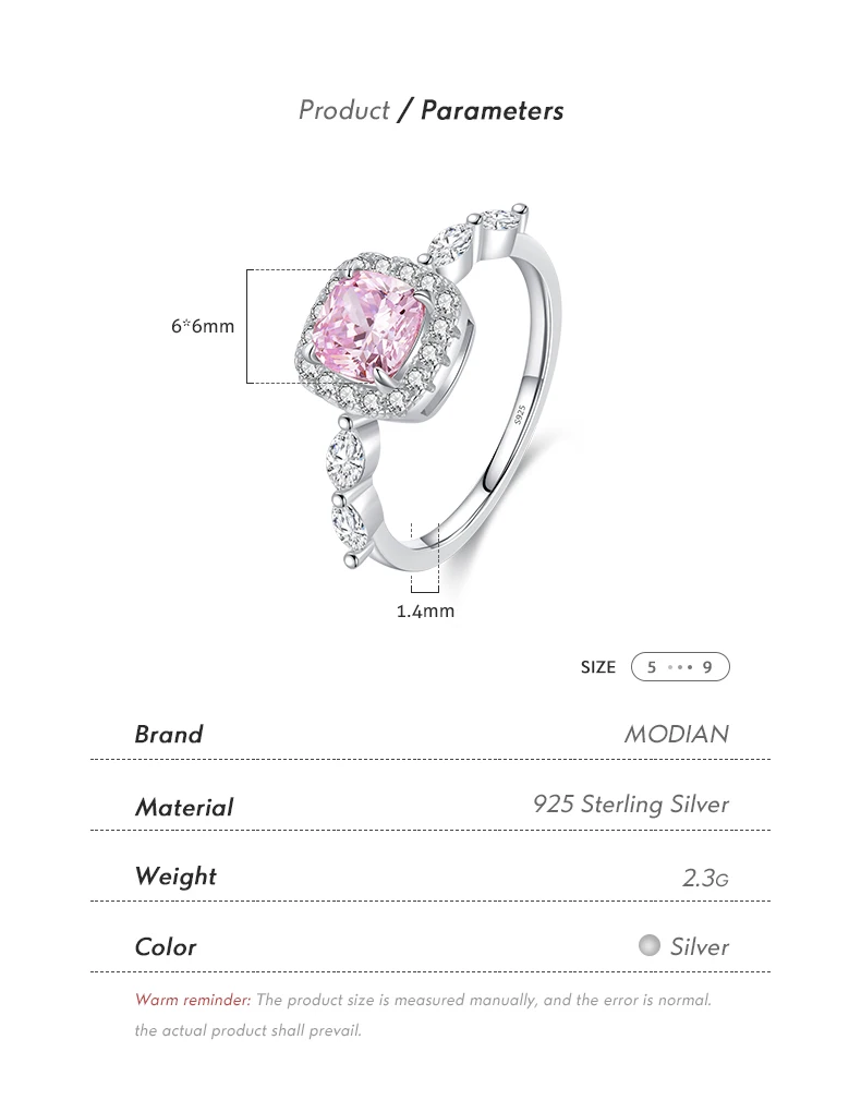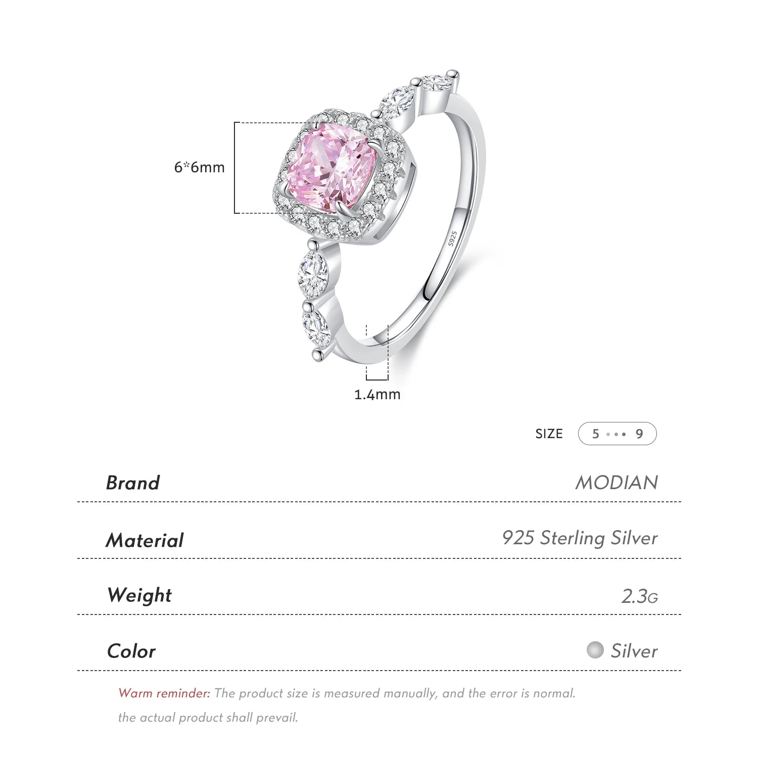 Anillo MODIAN de plata de ley 925 con circonitas rosas y amarillas de alta calidad para mujer, ideal para bodas, joyería fina.