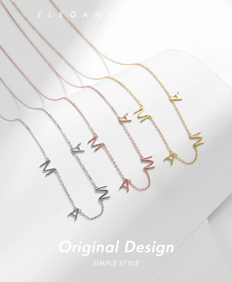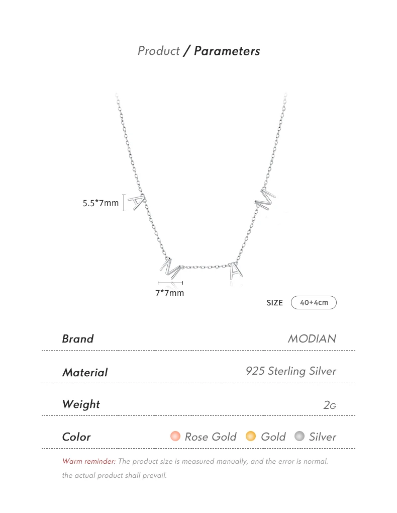 Collar con colgante clásico de MAMA de MODIAN en plata de ley 925, color oro rosa brillante, para mujer, joyería fina, regalo