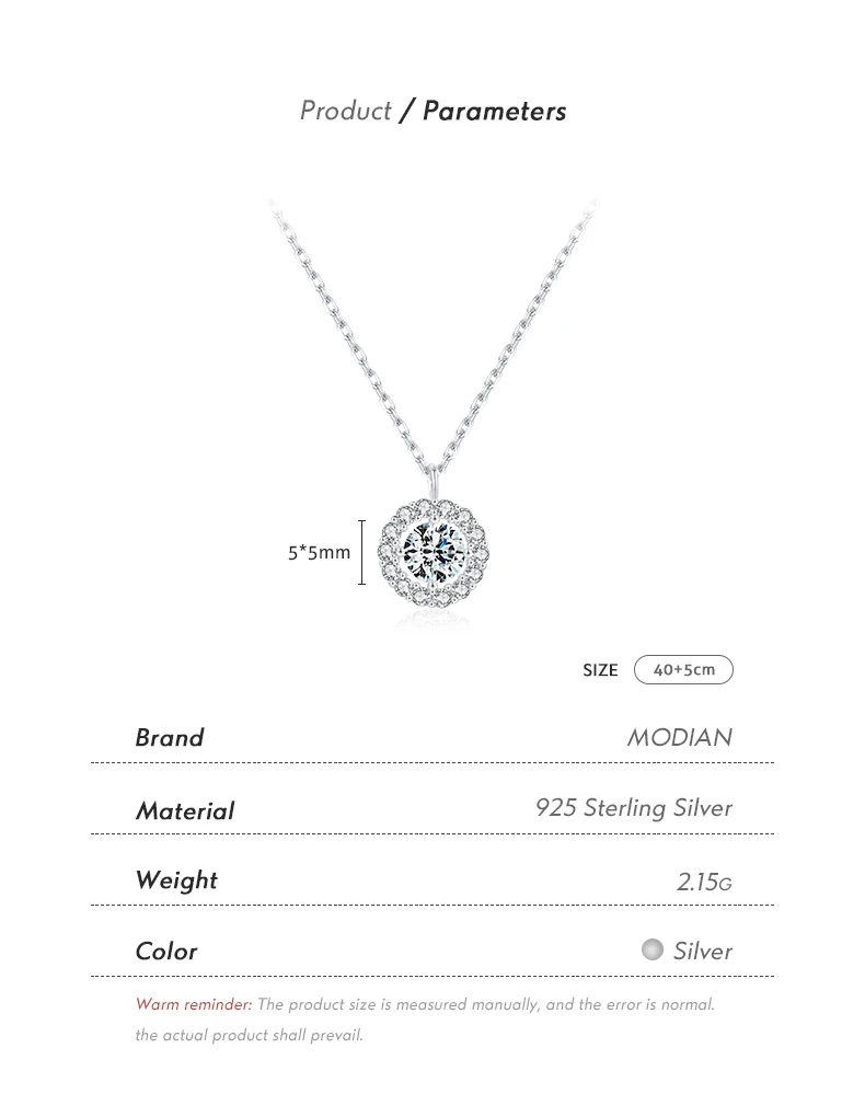 Collar con colgante de boda MODIAN de plata de ley 925 con circonitas redondas brillantes de alta calidad para mujer, joyería de aniversario