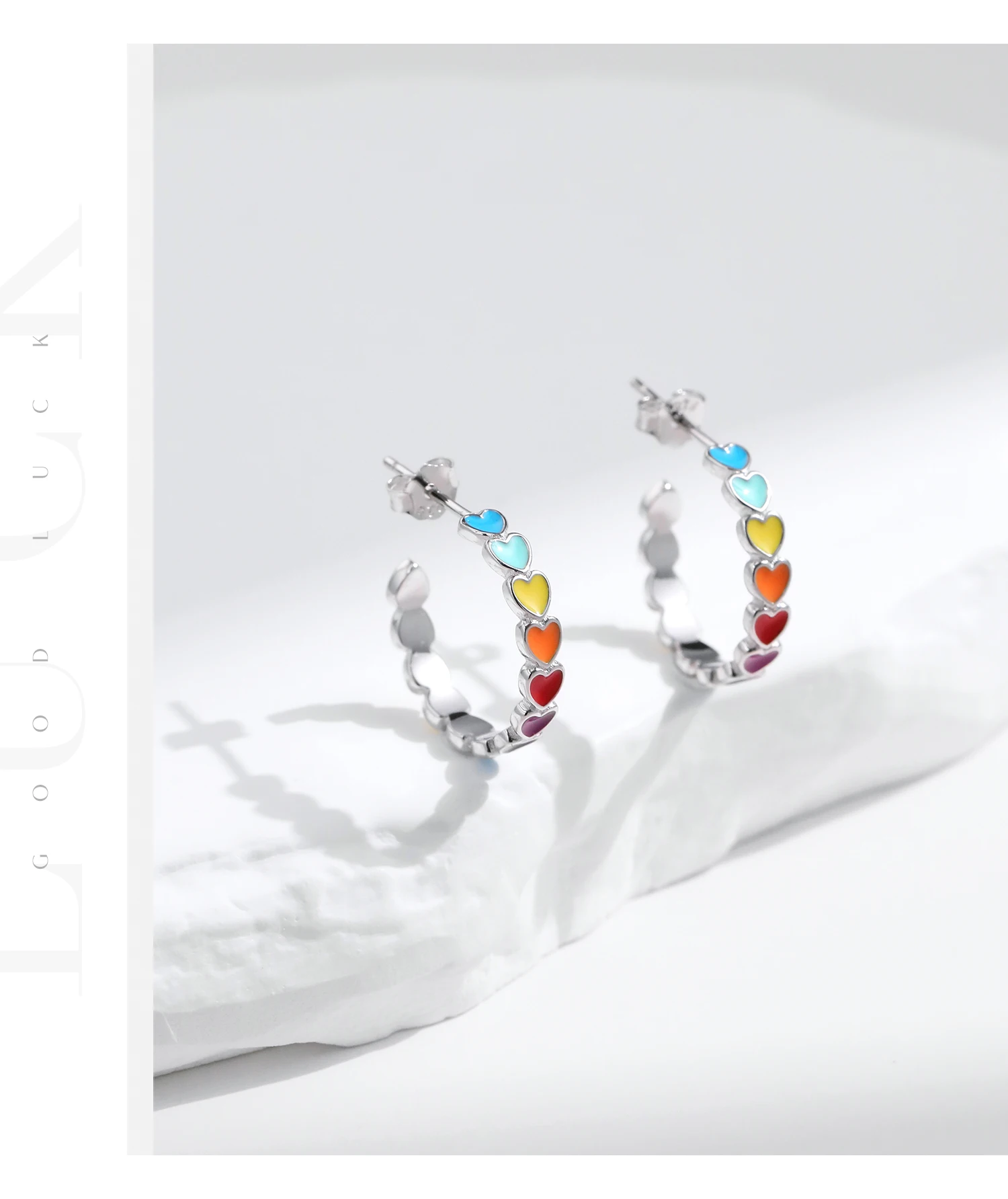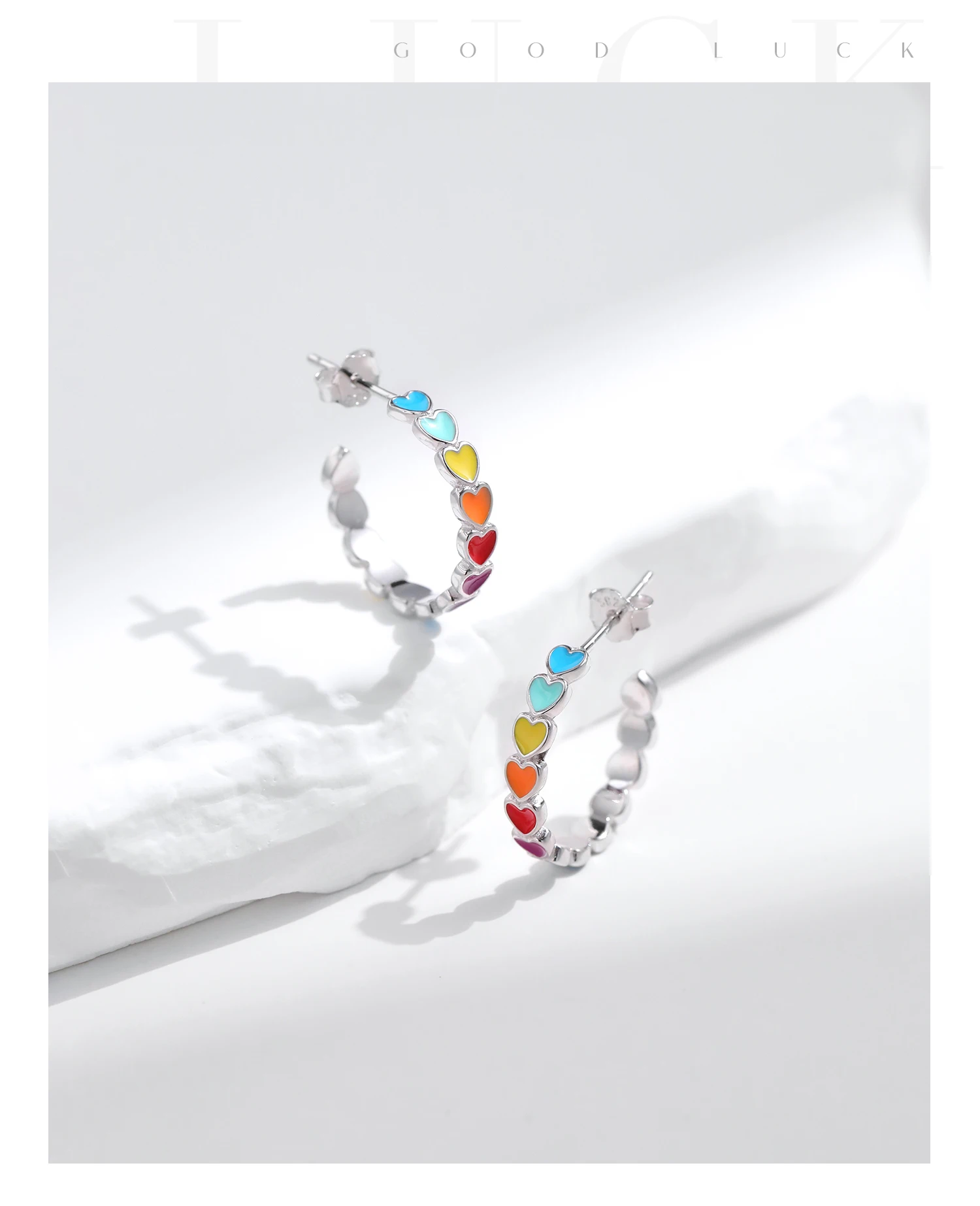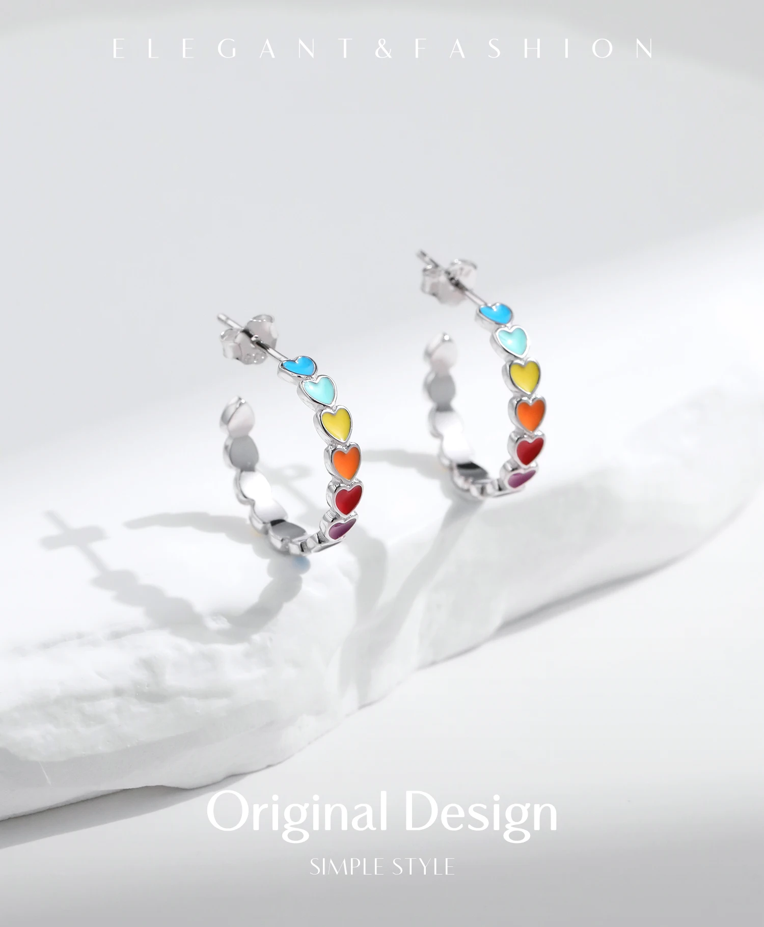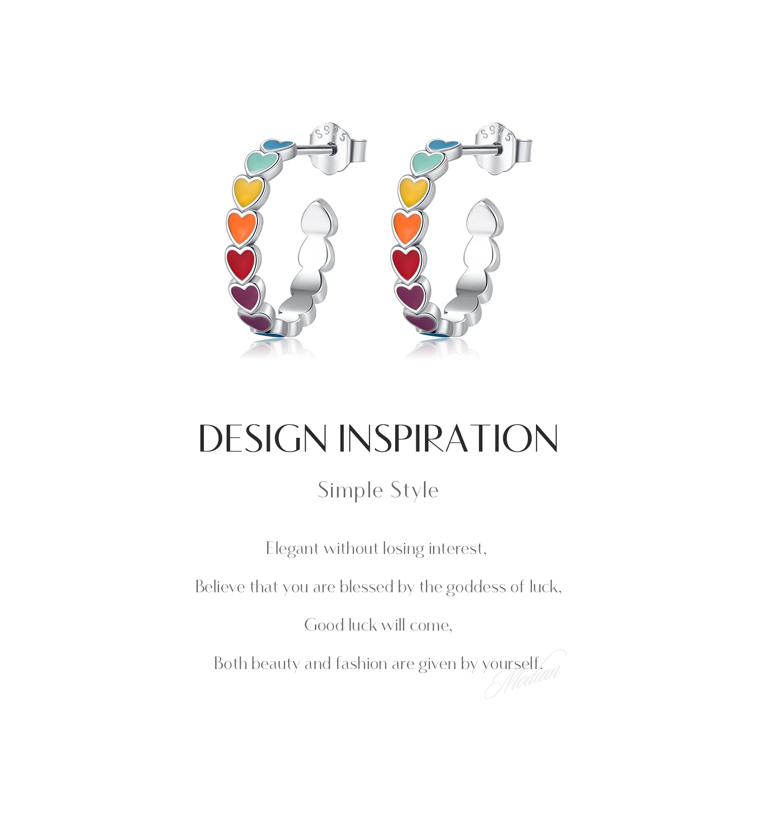 Pendientes MODIAN de plata de ley 925 con forma de C y corazones esmaltados de colores, joyería romántica y dulce para mujeres y niñas.