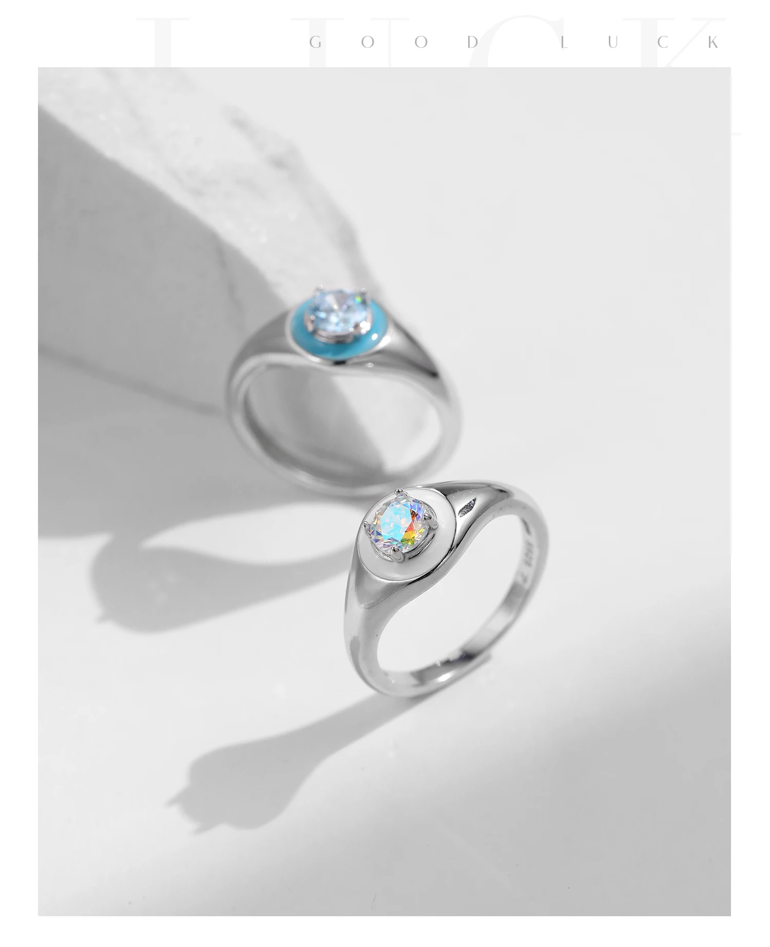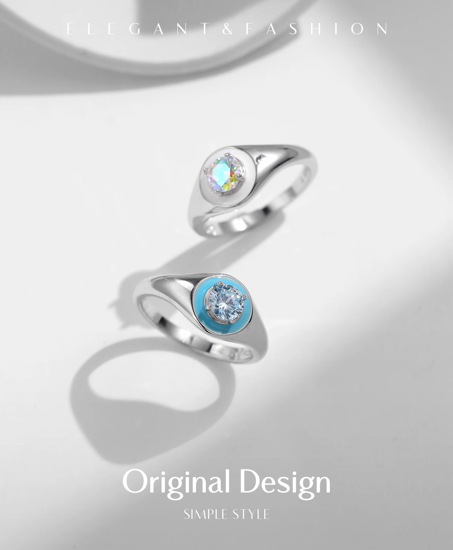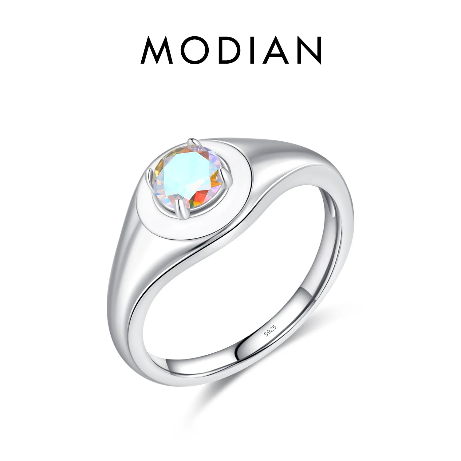 Anillo de sello MODIAN de plata de ley 925 con circonitas esmaltadas de colores para mujer, accesorios diarios, joyería fina