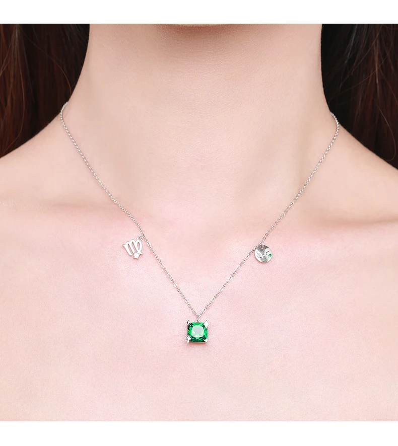 Collar MODIAN de plata de ley 925 con símbolo de la constelación de Virgo, cadena brillante y deslumbrante con colgante cuadrado de circonita cúbica, joyería fina de moda.