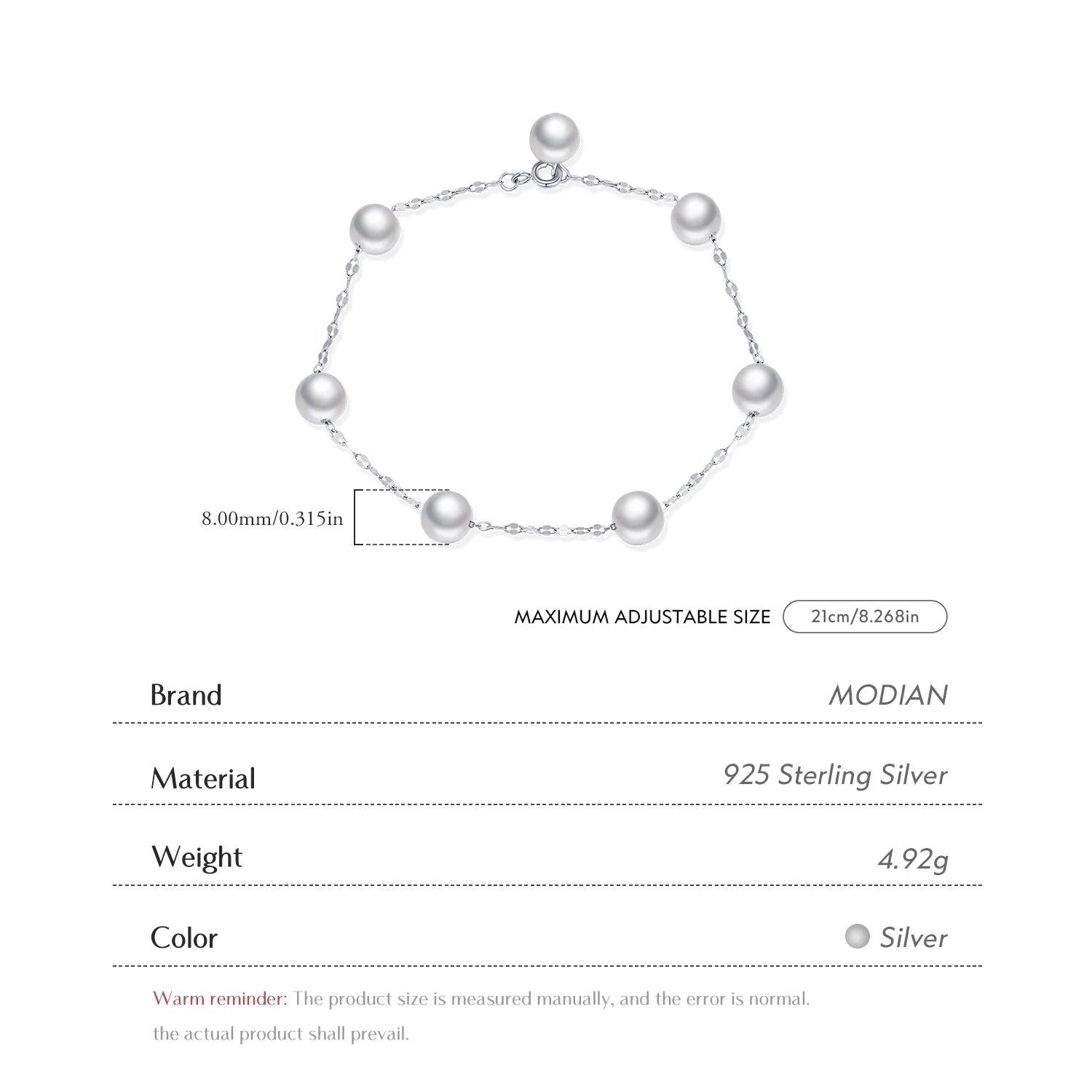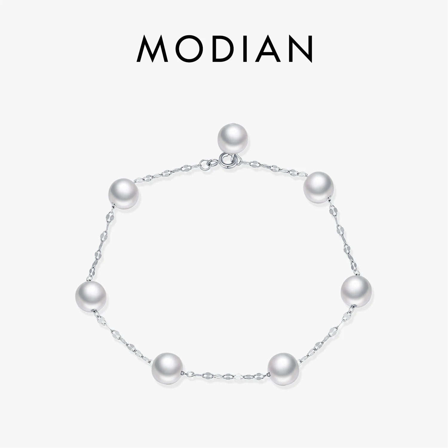 Pulsera MODIAN de plata de ley 925 con perlas de cristal geométricas, elegante y recatada, para mujer, joyería fina