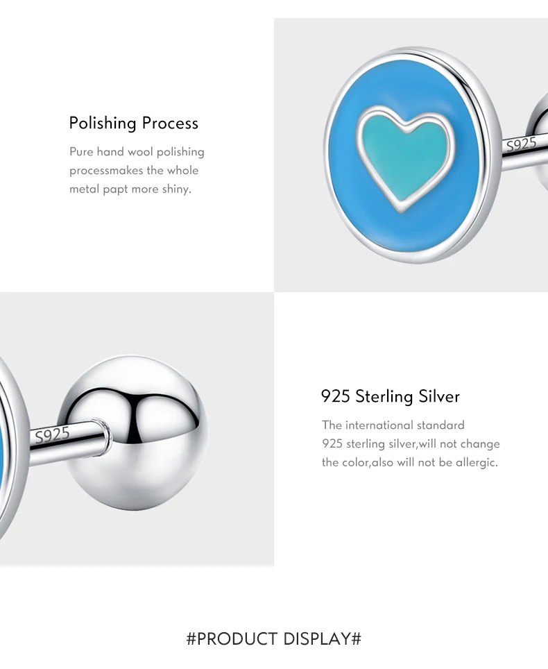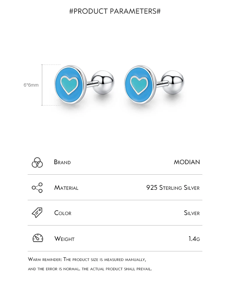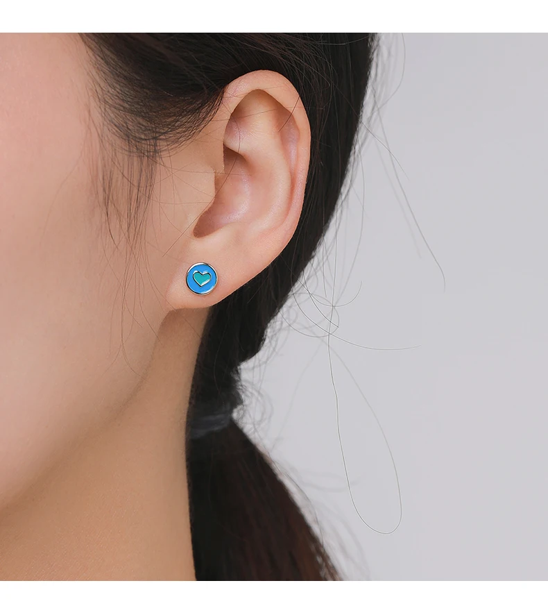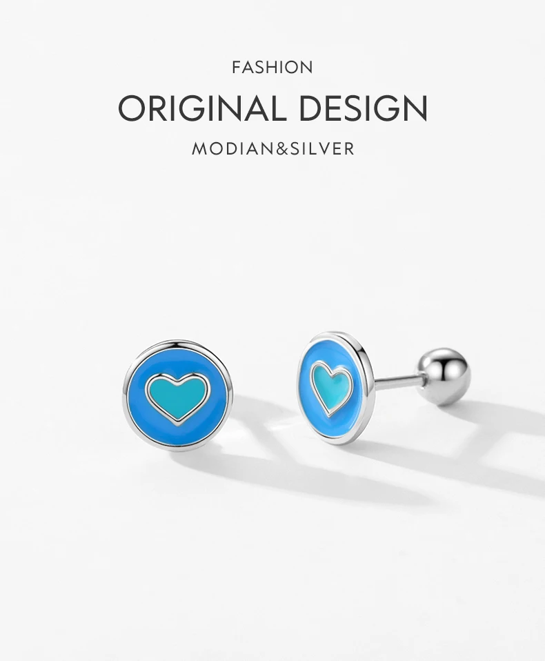 Pendientes Modian de plata de ley 925 con forma de corazón esmaltado, sencillos y redondos, con cuentas de rosca minimalistas, para mujer, joyería fina, regalos.