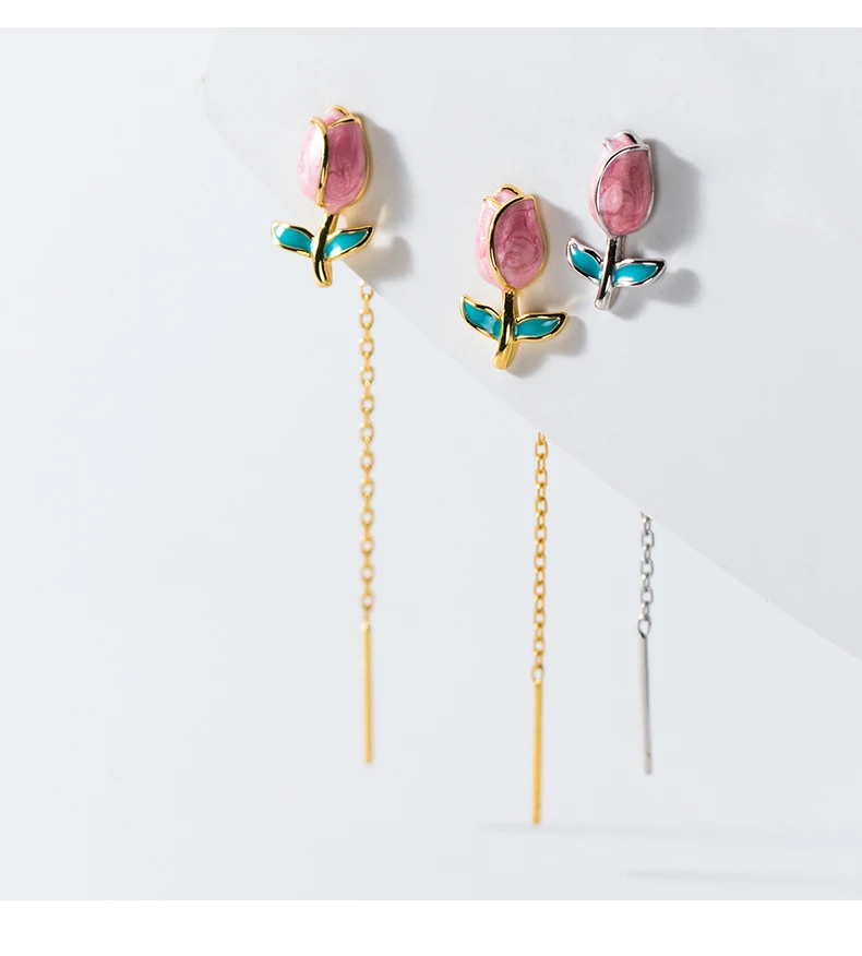 Pendientes MODIAN de plata de ley 925 con borlas de rosa esmaltadas, cadena larga, elegantes, para mujer, joyería fina, regalos
