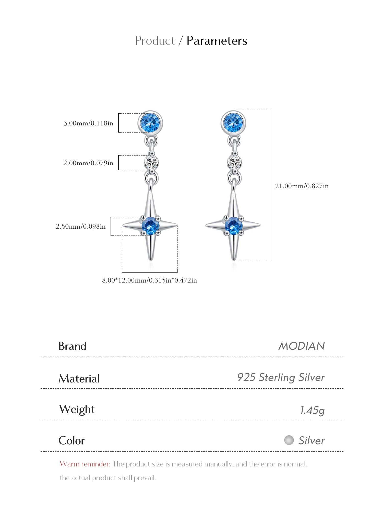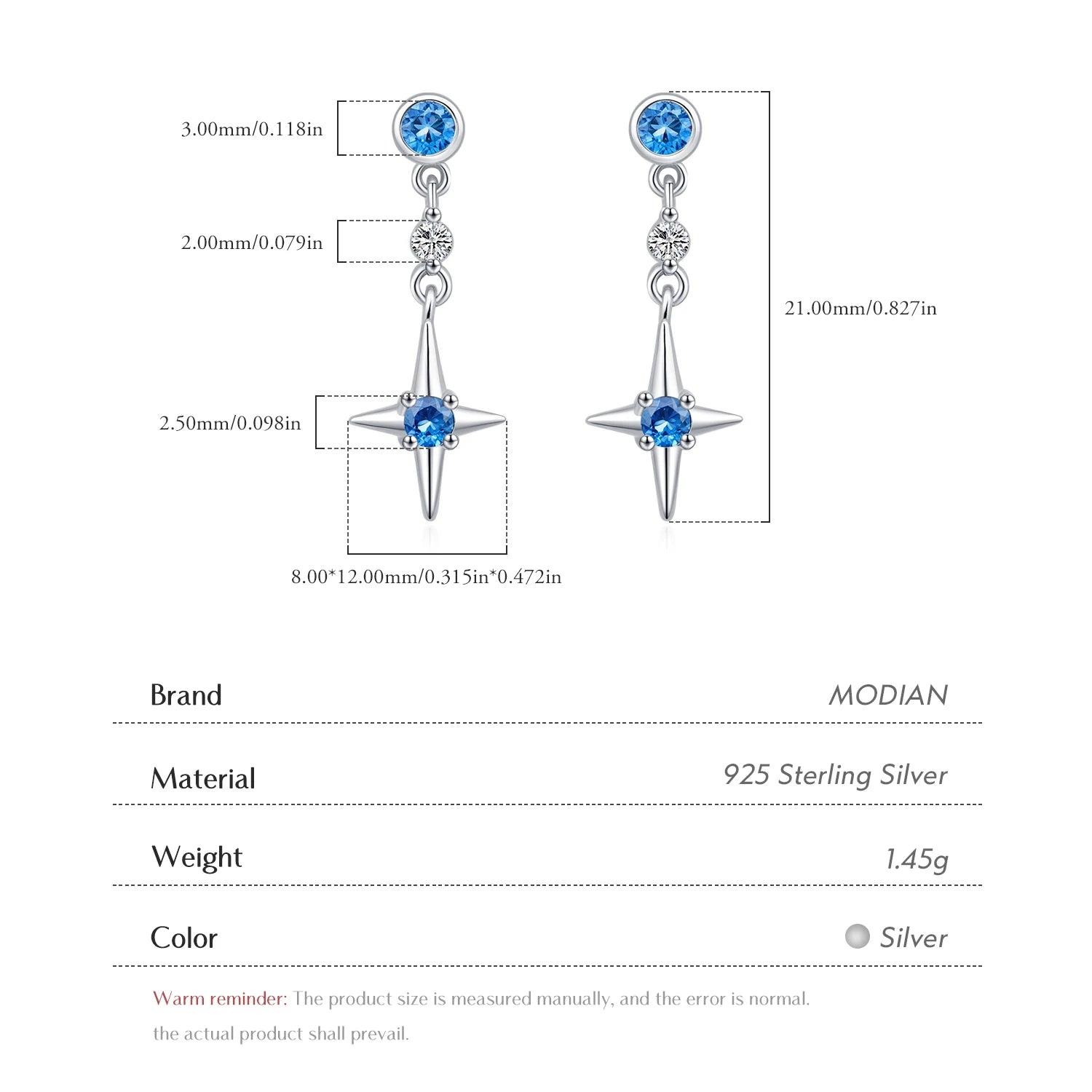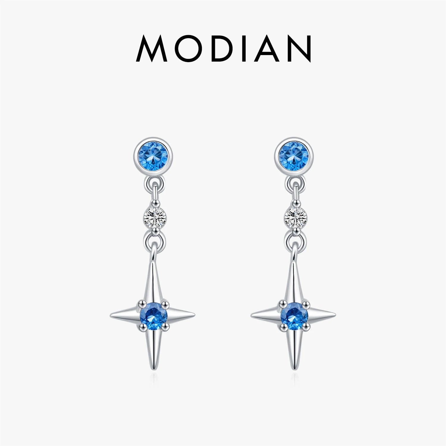 Pendientes MODIAN de plata de ley 925 con circonitas azules y estrellas brillantes para mujer, joyería fina