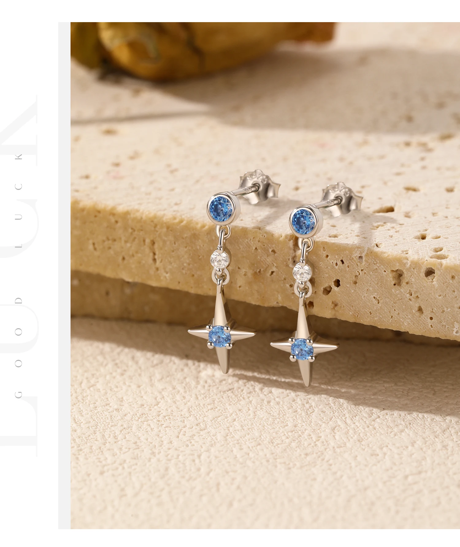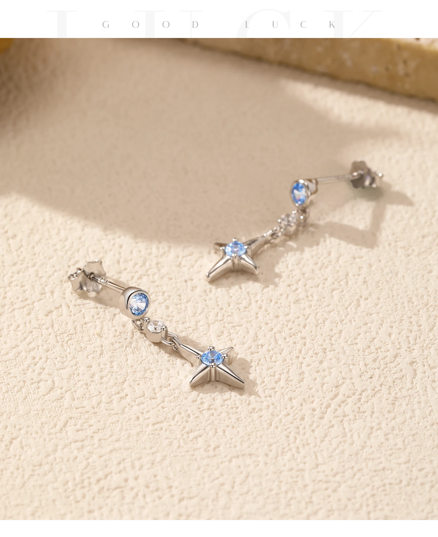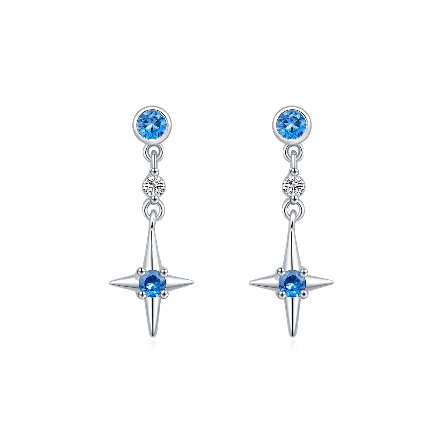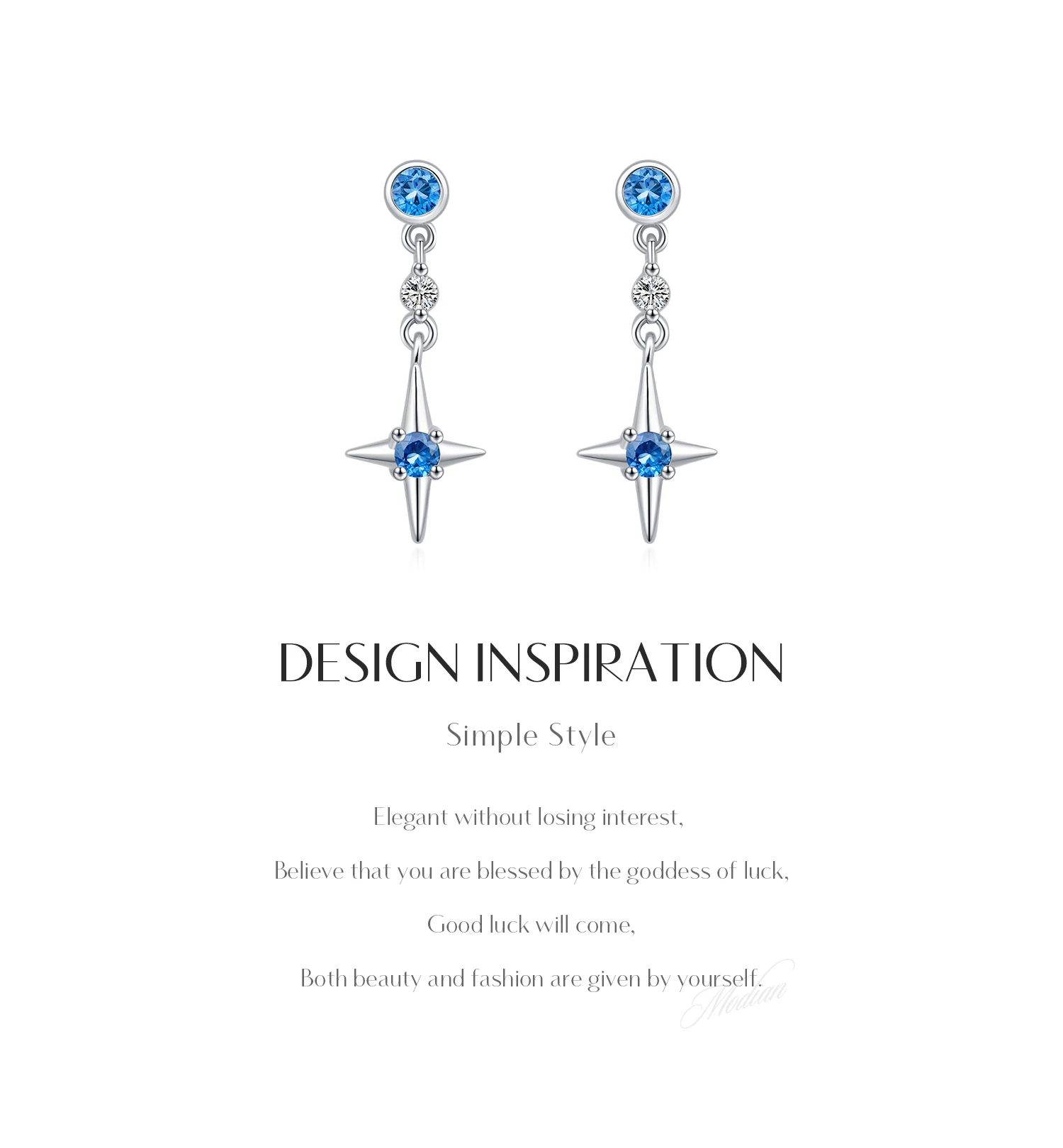 Pendientes MODIAN de plata de ley 925 con circonitas azules y estrellas brillantes para mujer, joyería fina