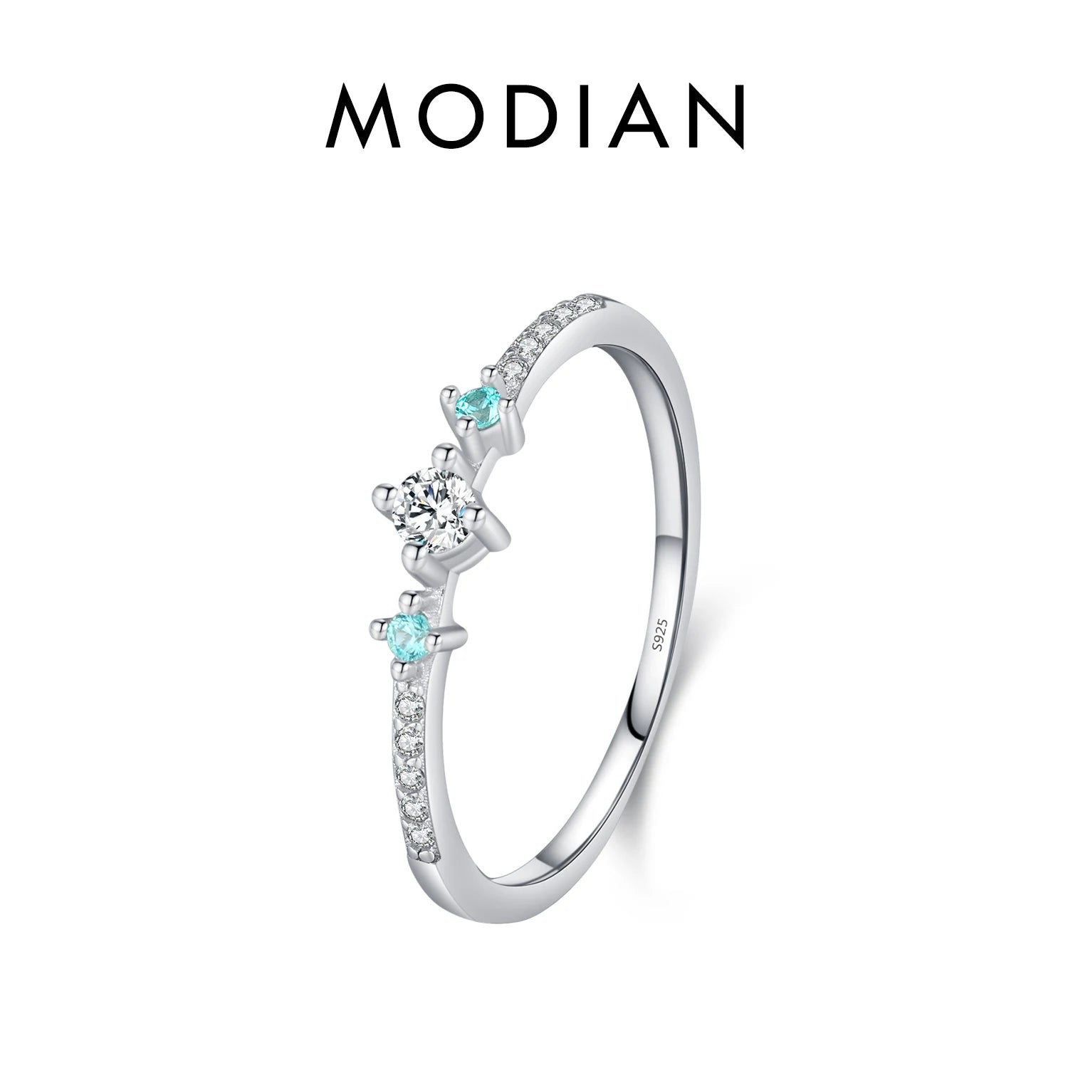 Anillo MODIAN de plata de ley 925 con circonita cúbica color Paraiba, apilable, color verde menta, para mujer, joyería fina