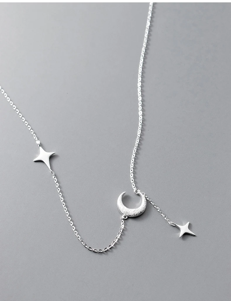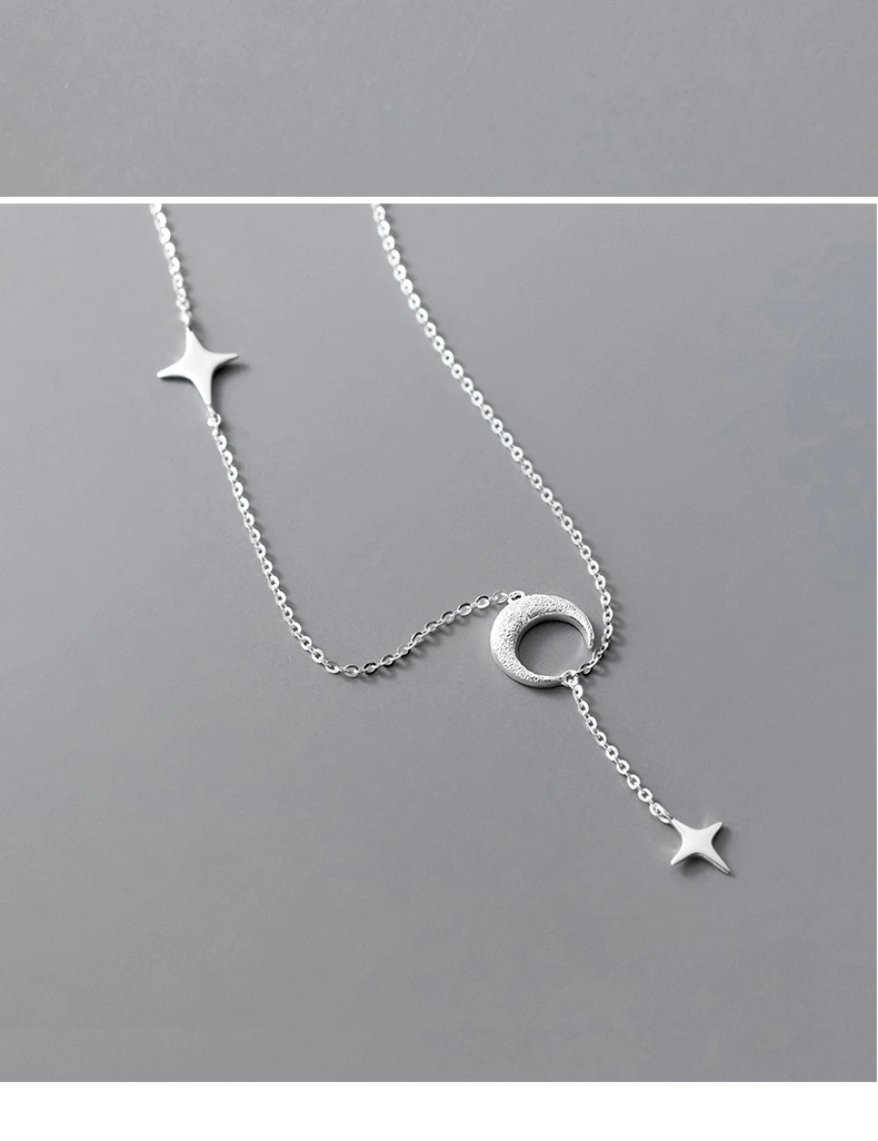 Collar con colgante de luna y estrella de MODIAN en plata de ley 925 para mujer, gargantilla sencilla con cadena de estrellas chapada en platino, regalo de joyería