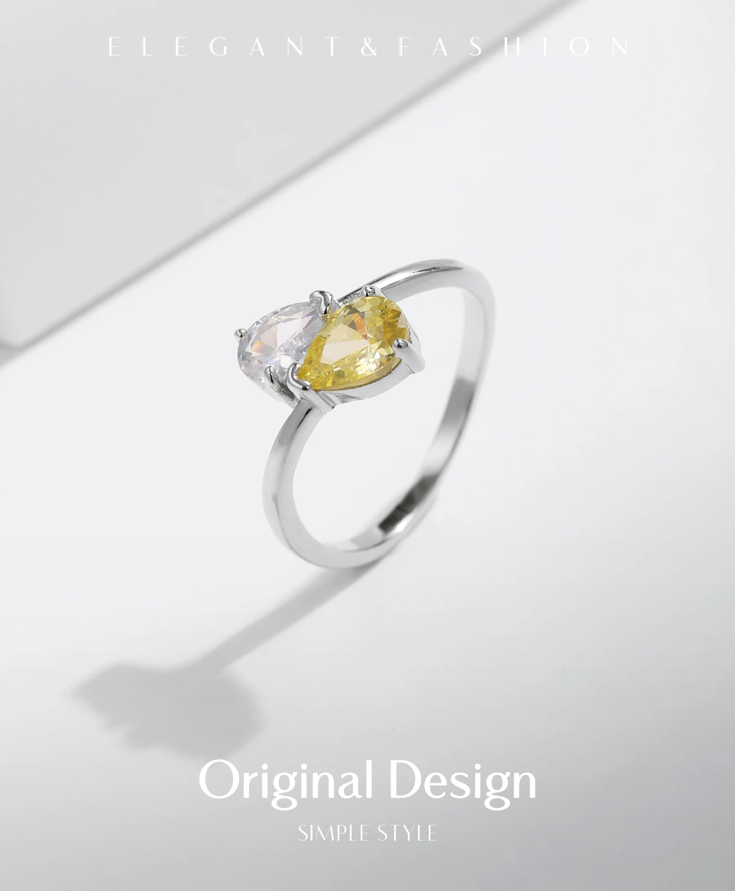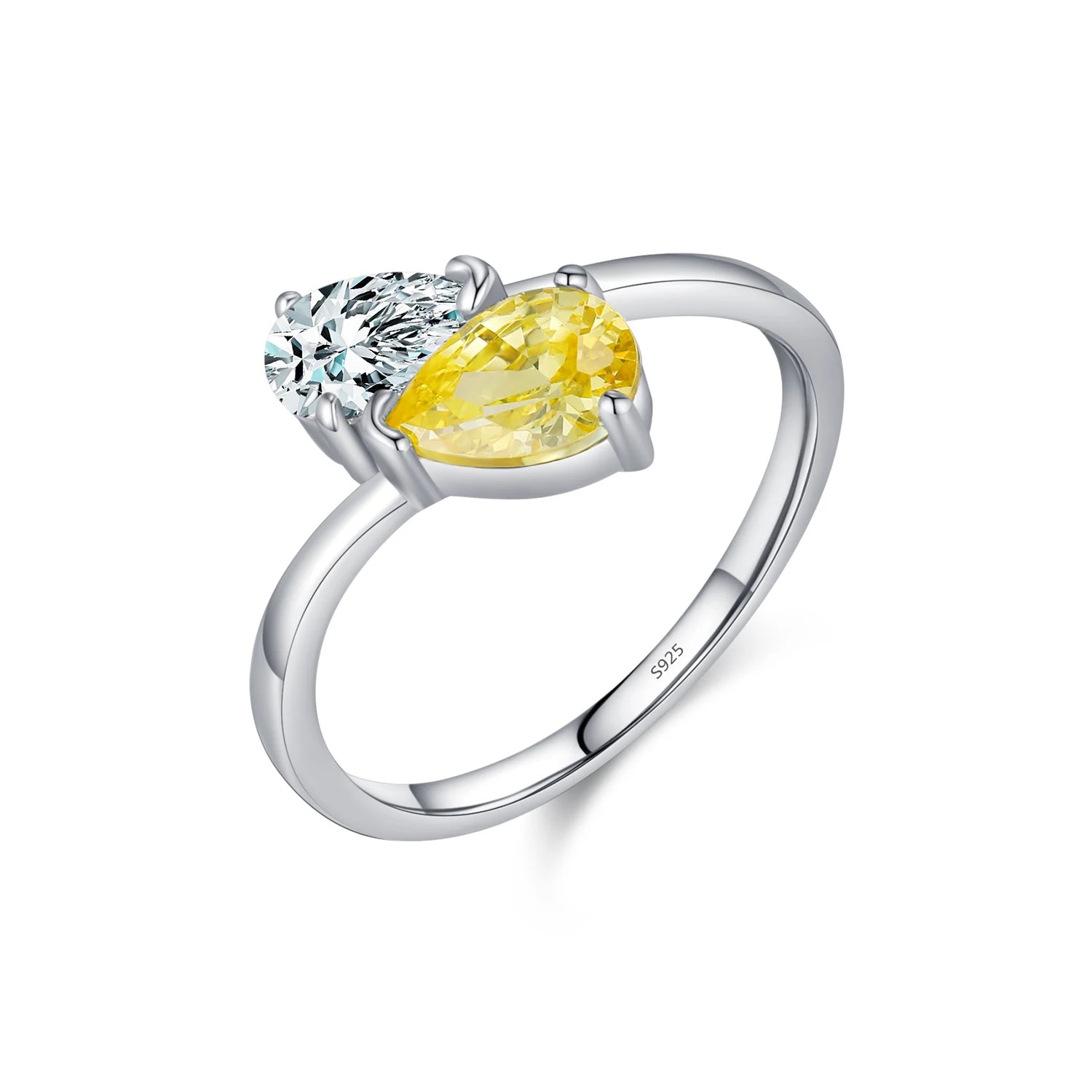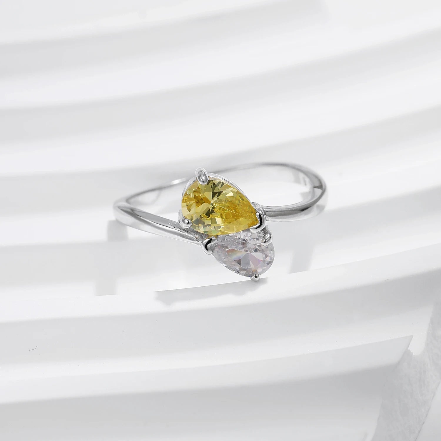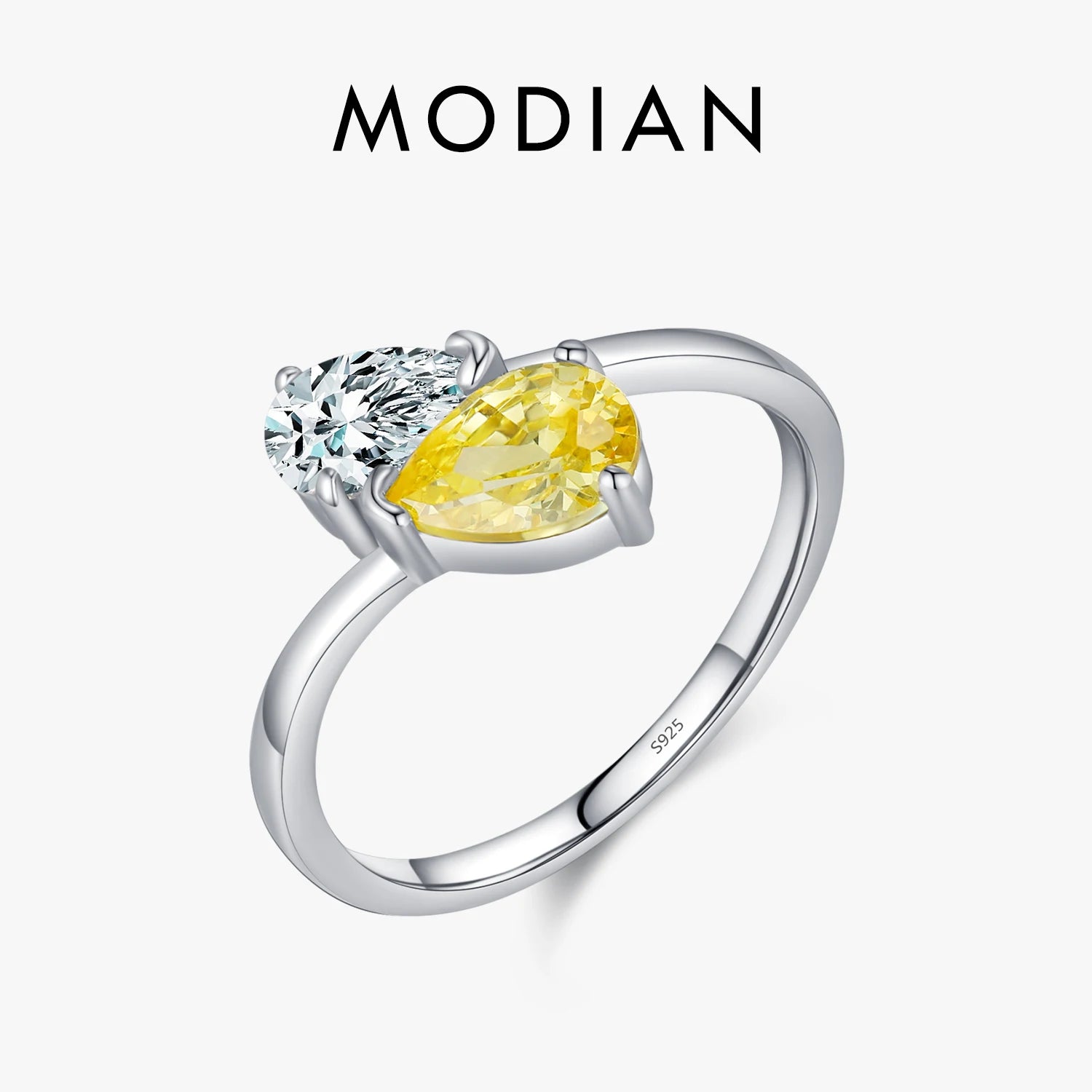 Anillo MODIAN de plata de ley 925 con forma de gota de agua y circonita cúbica, chapado en oro blanco, para mujer, joyería de fiesta, regalo