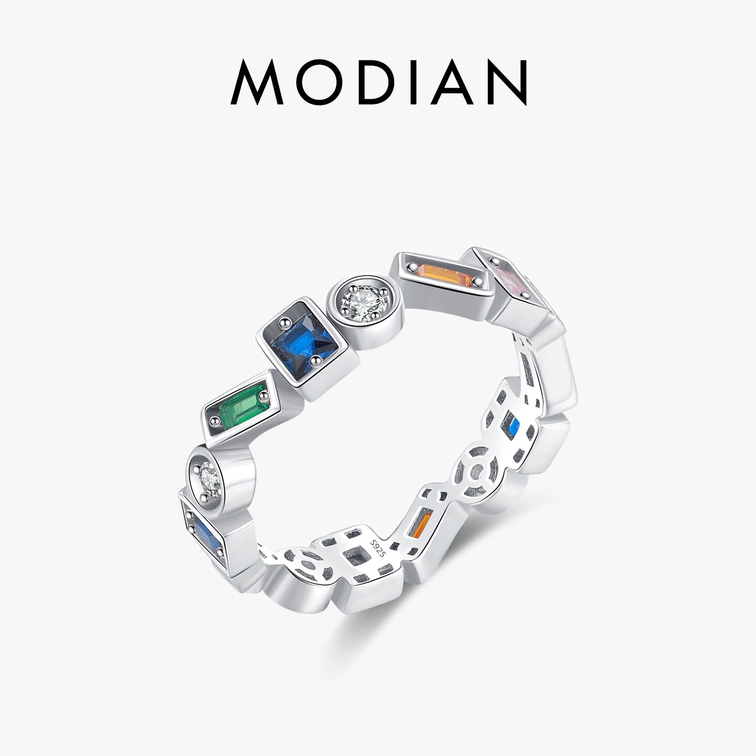 Anillo de dedo apilable de diseño irregular de plata esterlina 925 de MODIAN, anillos de fiesta de circonitas coloridas de moda para mujer, regalo de joyería