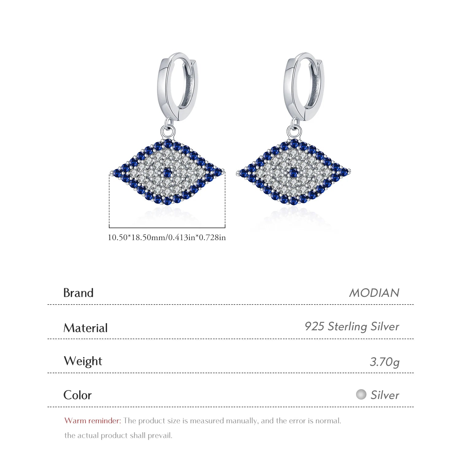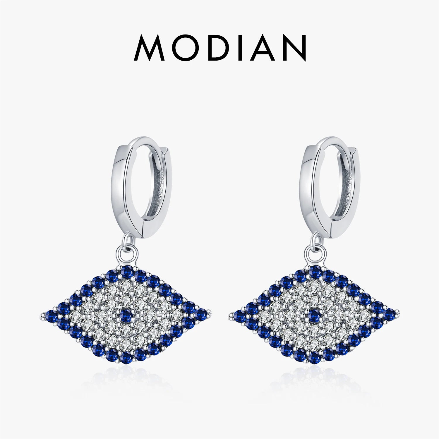 Pendientes de aro MODIAN de plata de ley 925 con circonitas azules de lujo, joyería fina y brillante para mujer, con hebilla para la oreja.