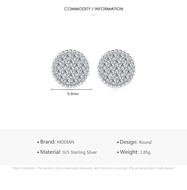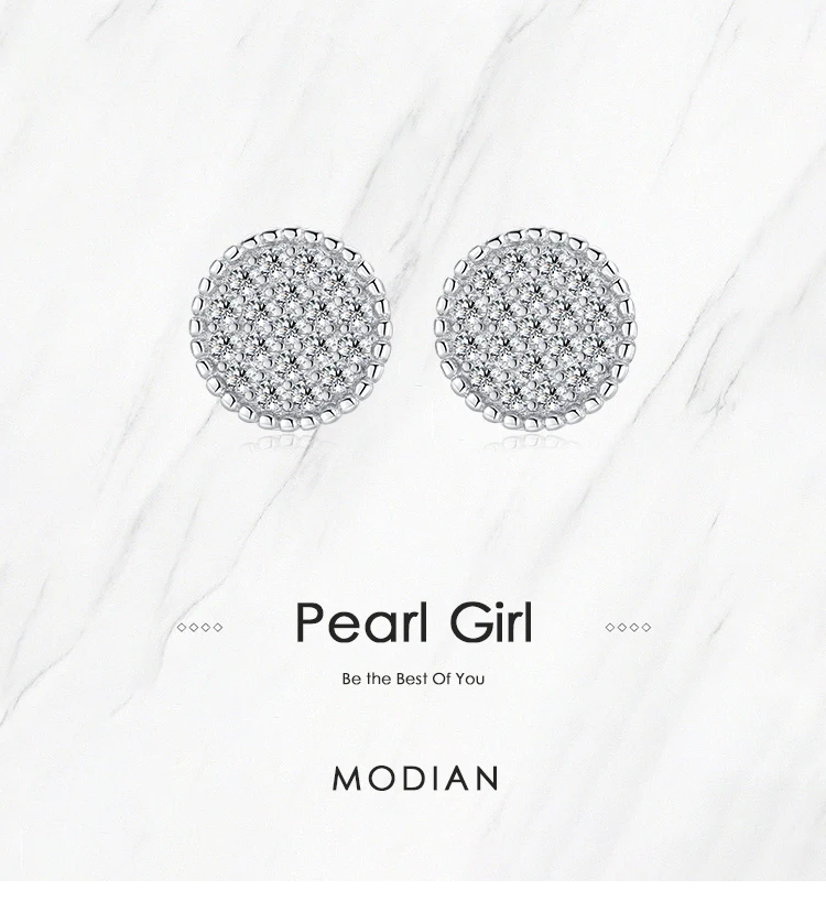 Pendientes Modian de plata de ley 925 con botones de lujo para mujer, con circonitas cúbicas transparentes y brillantes, redondos y sencillos, joyería fina para bodas.