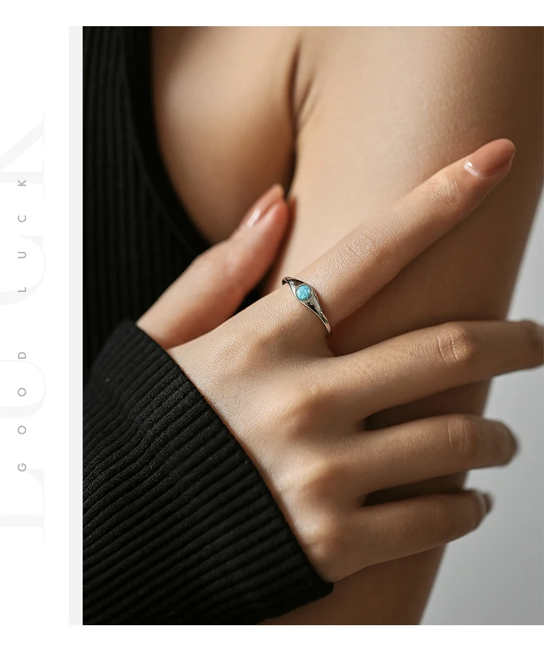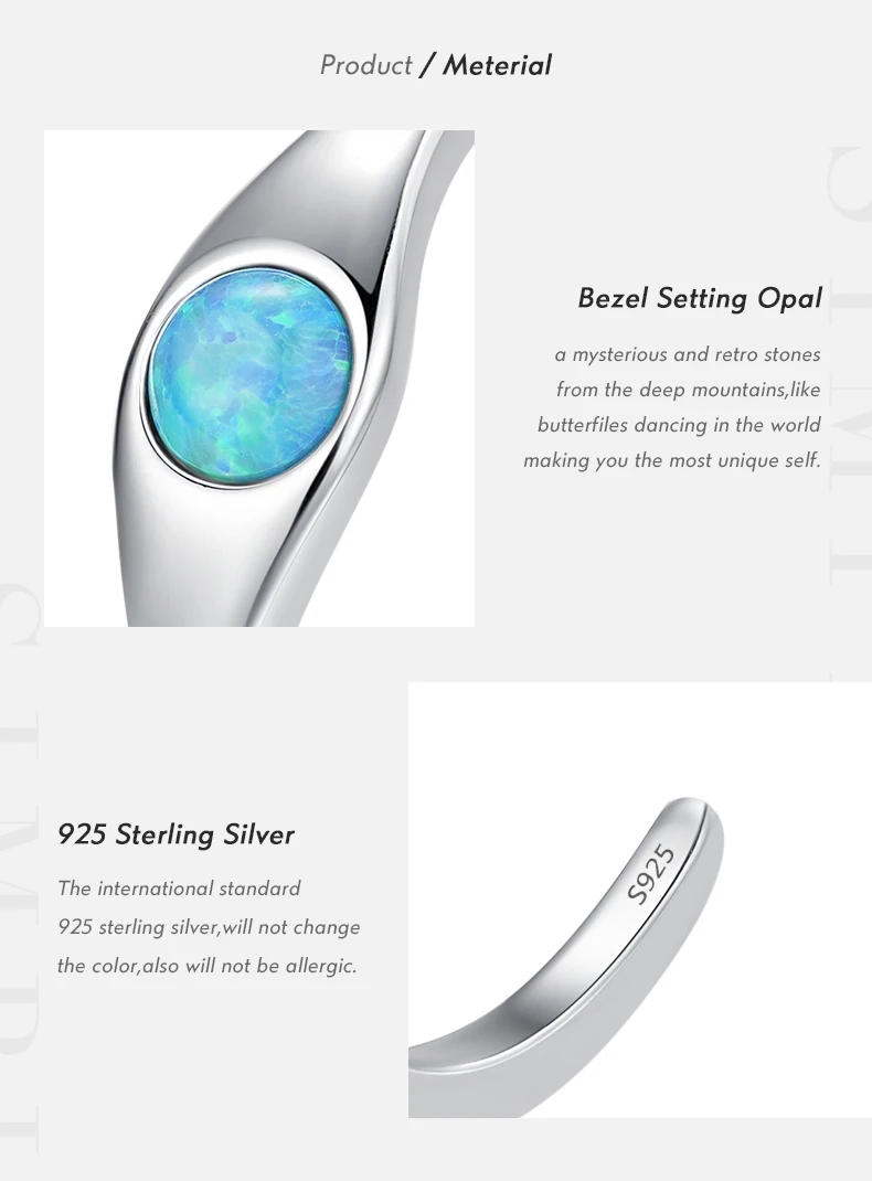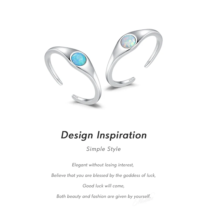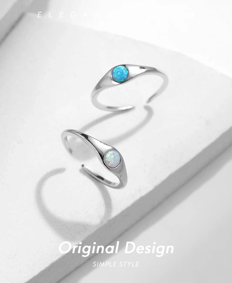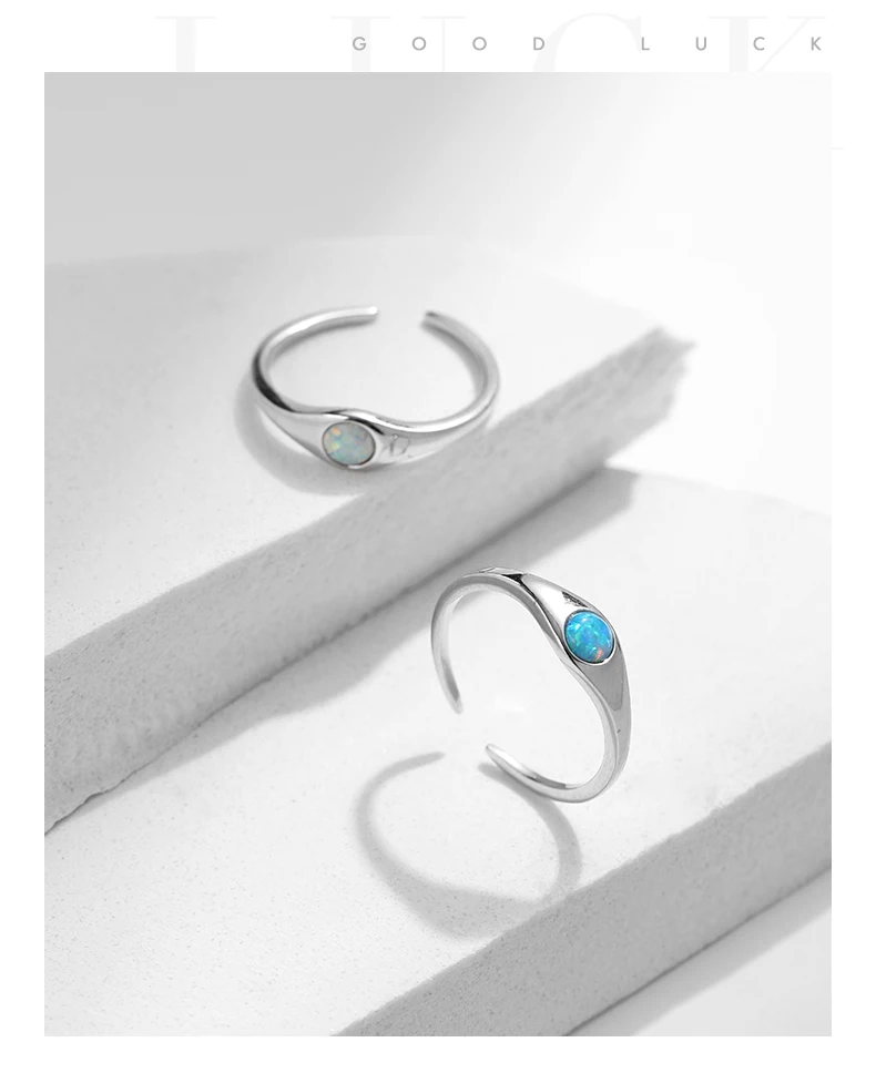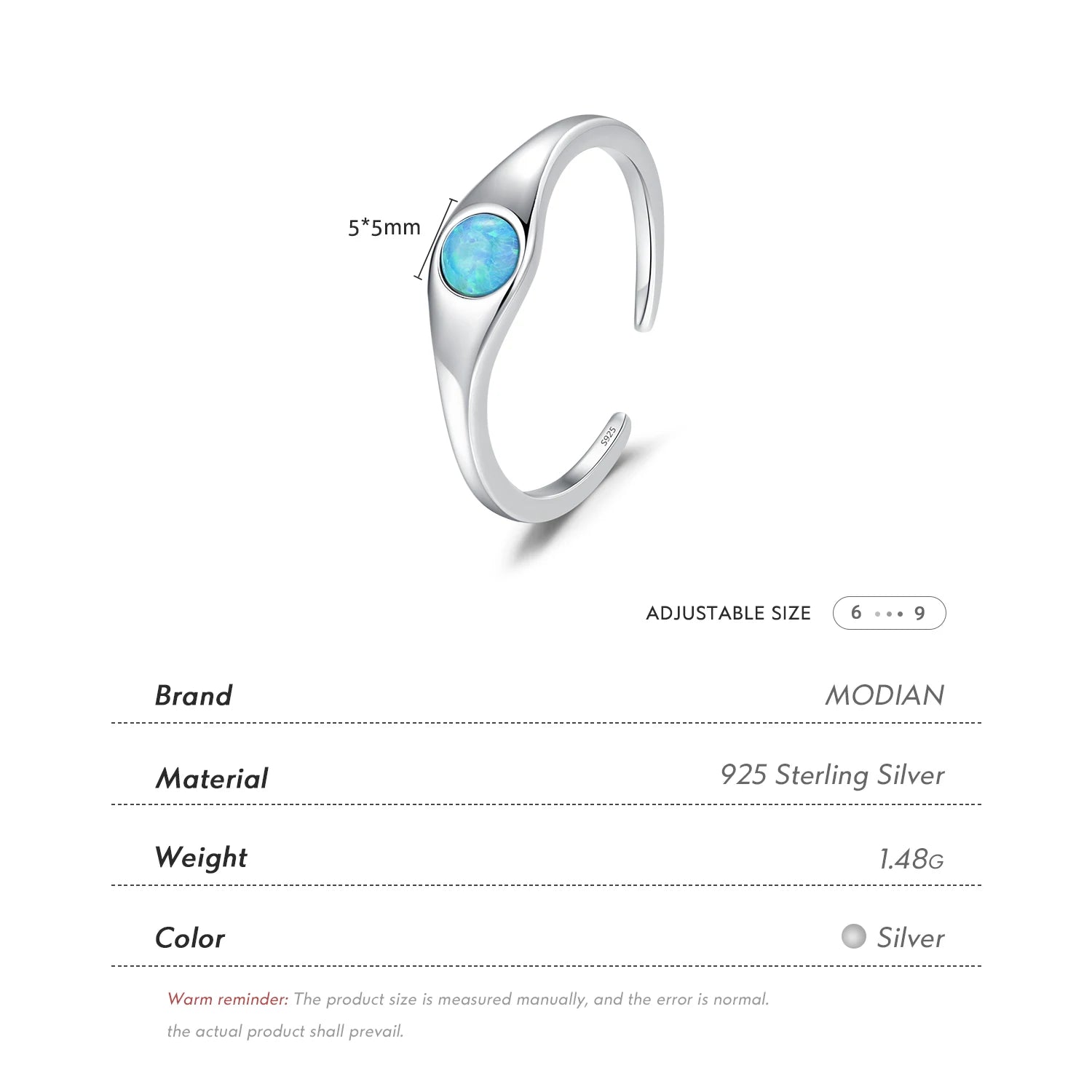 Anillo minimalista de plata de ley 925 MODIAN con ópalo brillante y redondo, ajustable y liso, ideal como regalo de joyería fina para mujer.