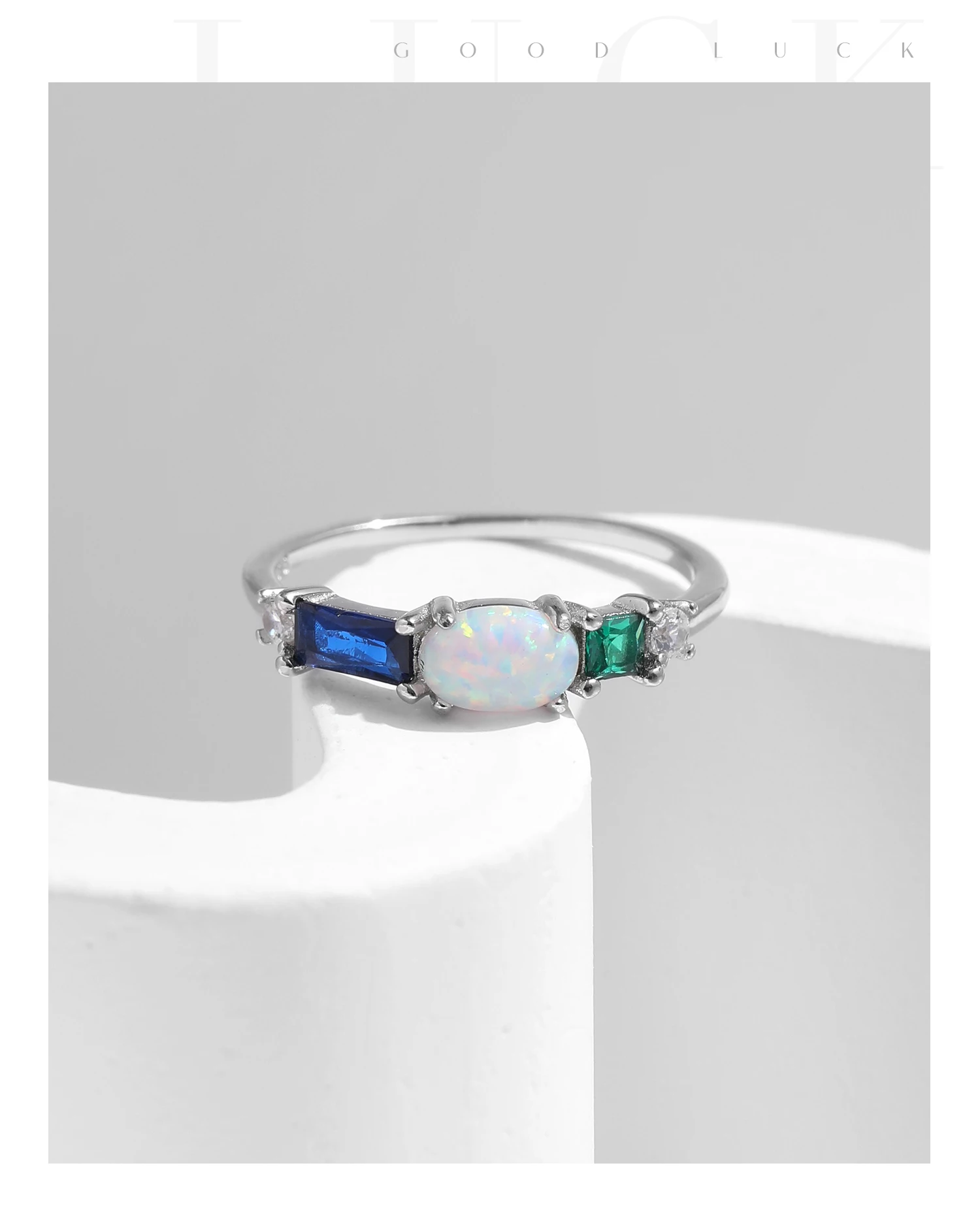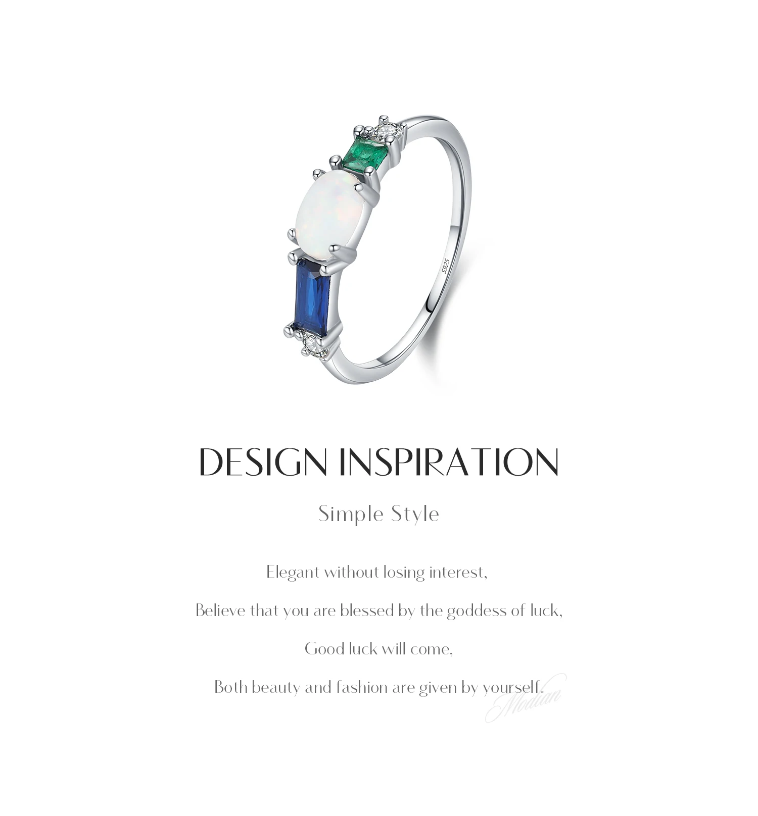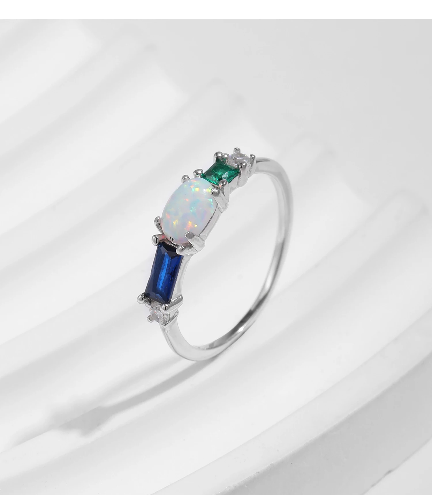 Anillo de lujo MODIAN de plata de ley 925 con ópalo y circonitas de colores, chapado en platino, apilable, moderno, para mujer