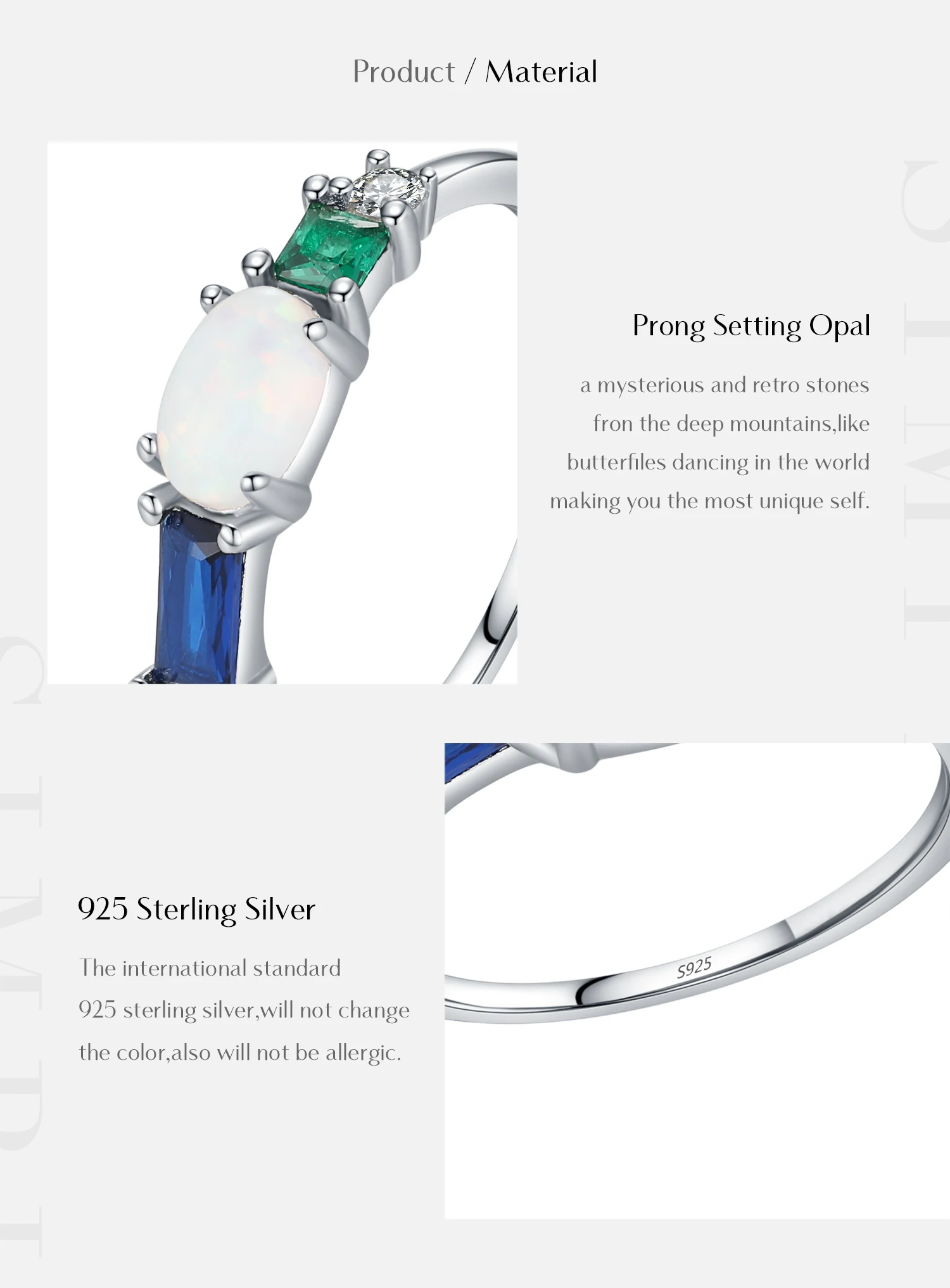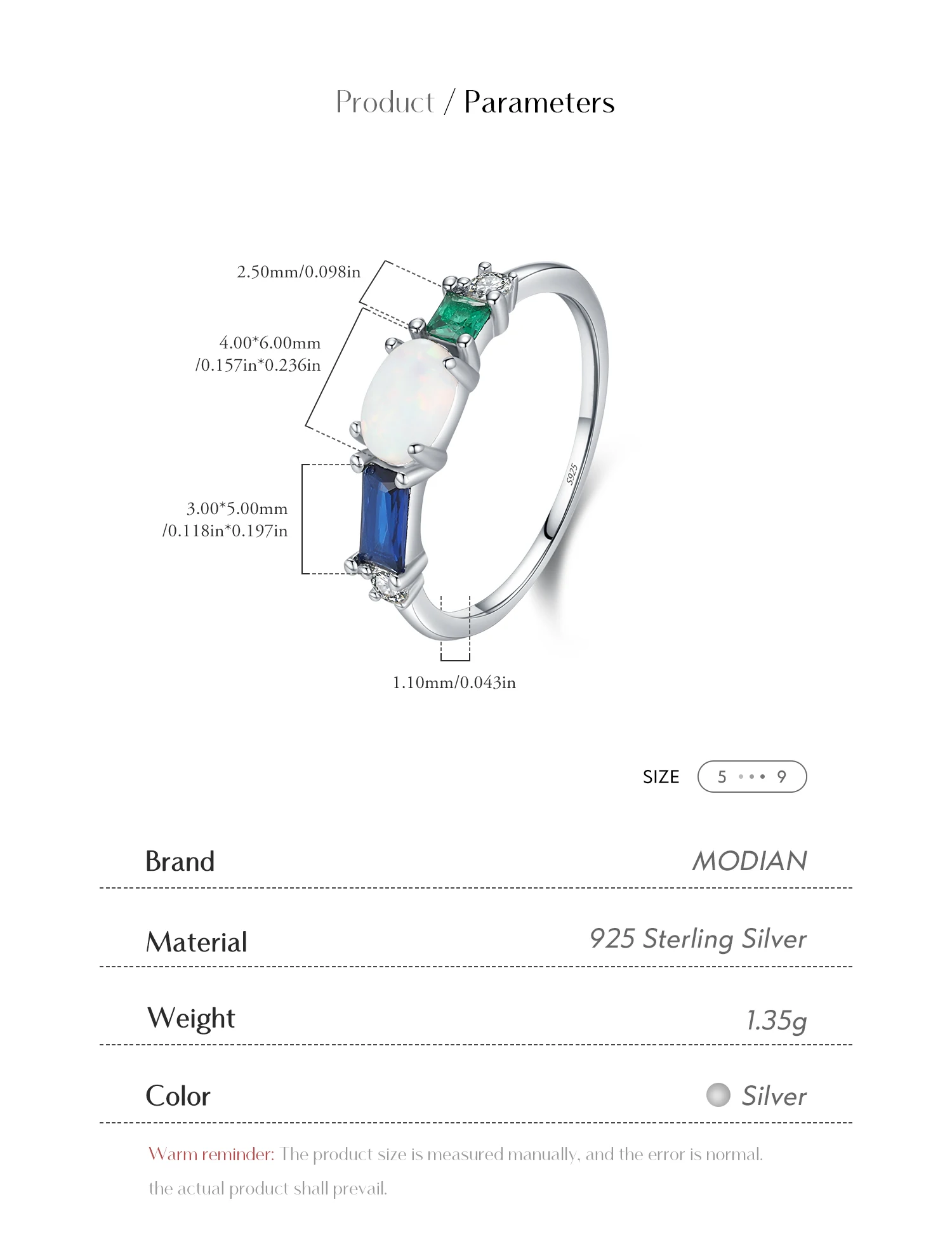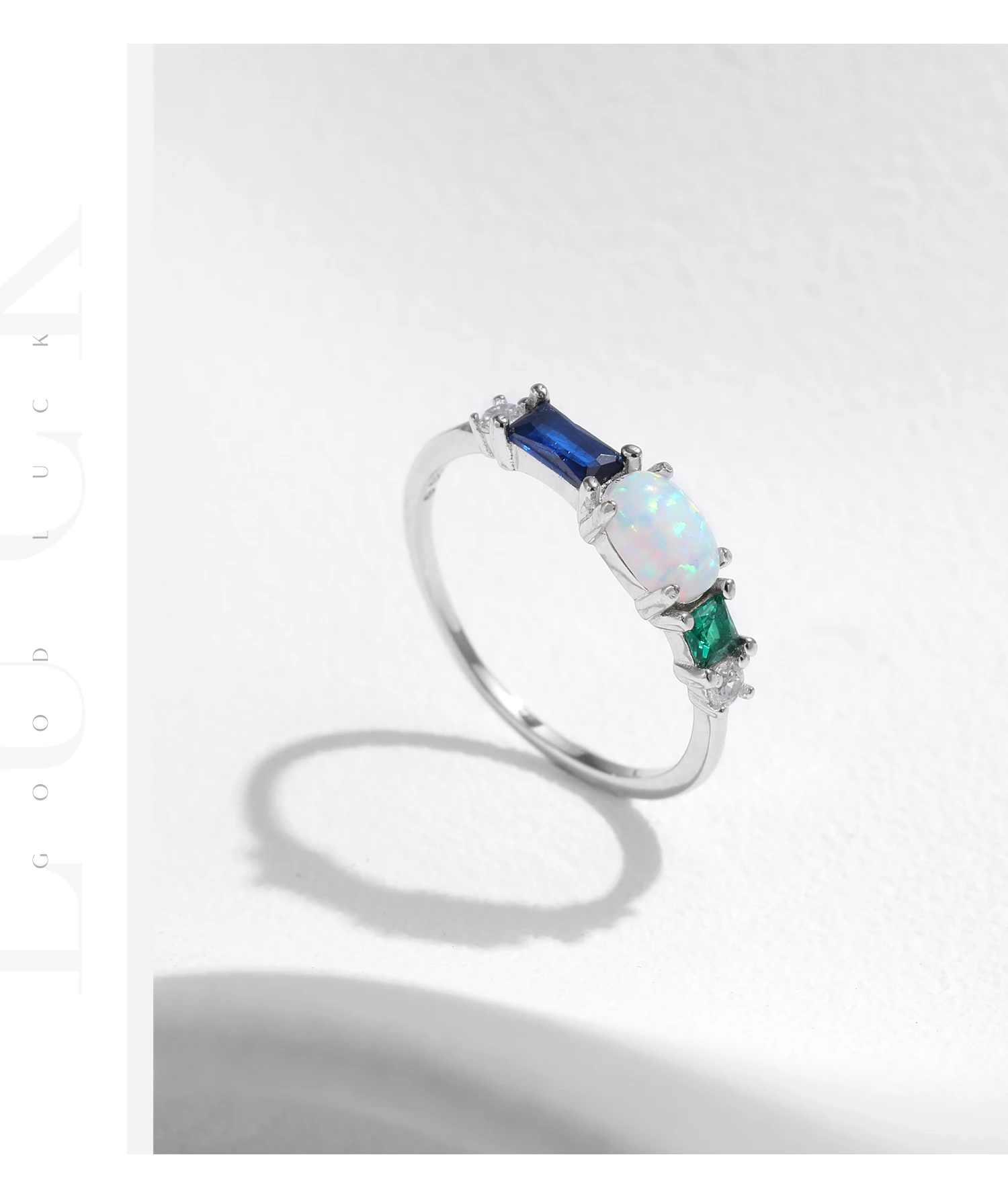 Anillo de lujo MODIAN de plata de ley 925 con ópalo y circonitas de colores, chapado en platino, apilable, moderno, para mujer