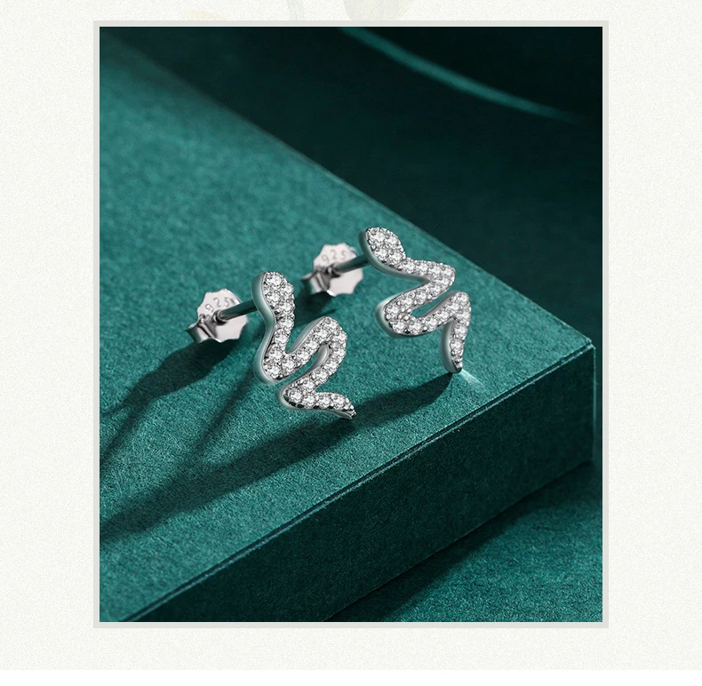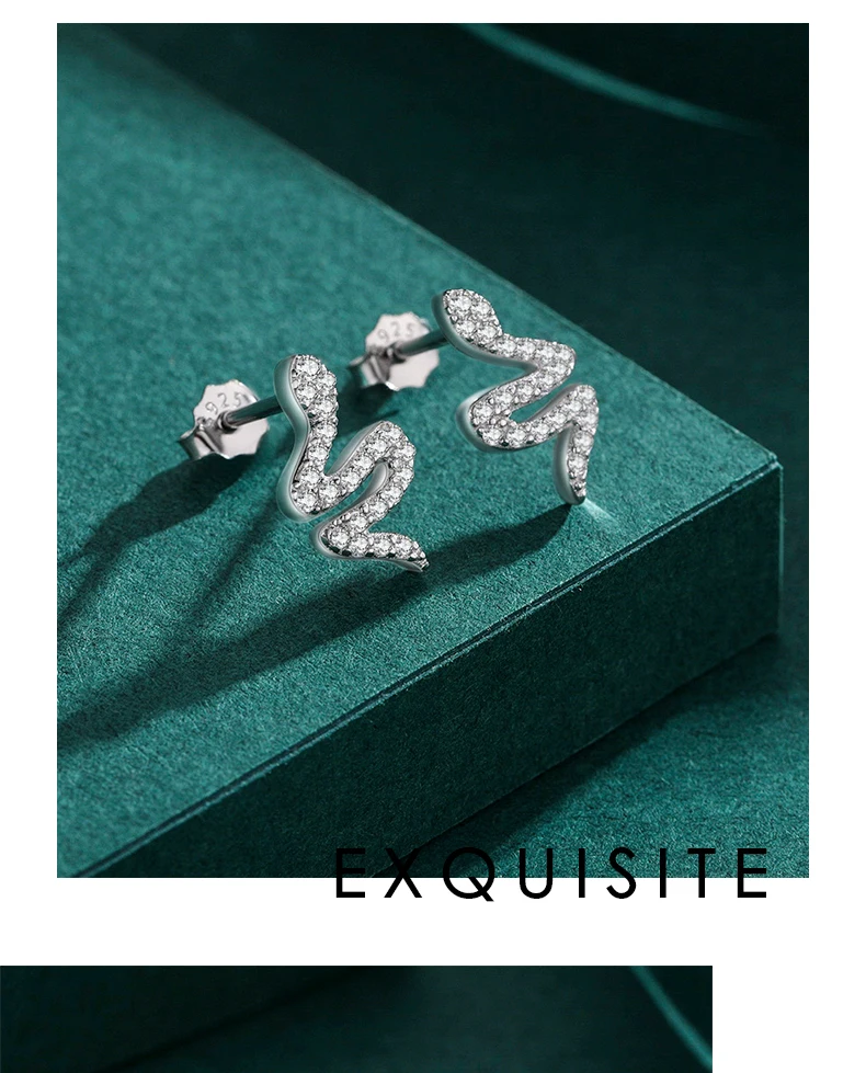 Pendientes MODIAN de plata de ley 925 con circonitas cúbicas brillantes y forma de serpiente para mujer, aretes de animales, joyería moderna y llamativa.