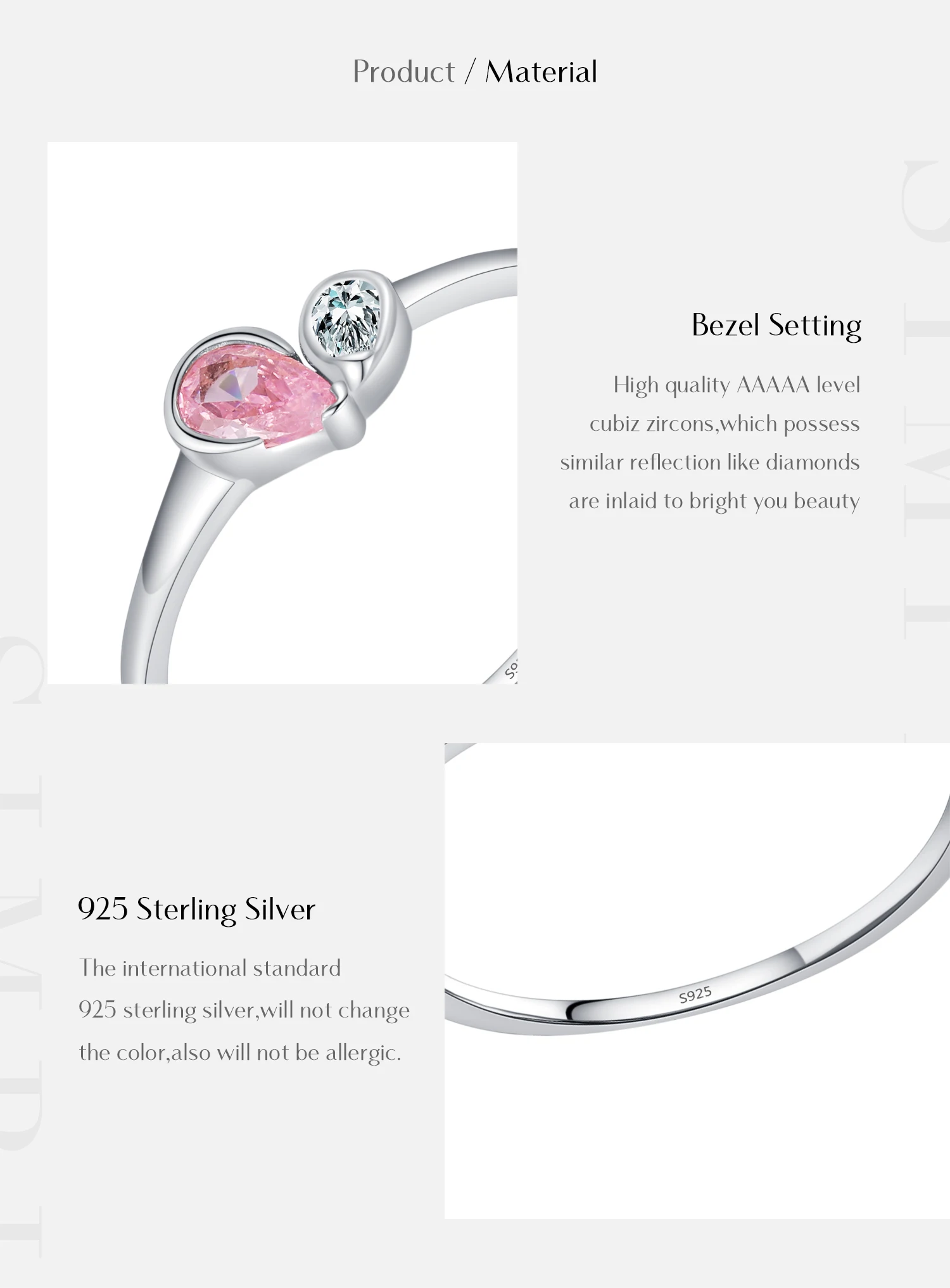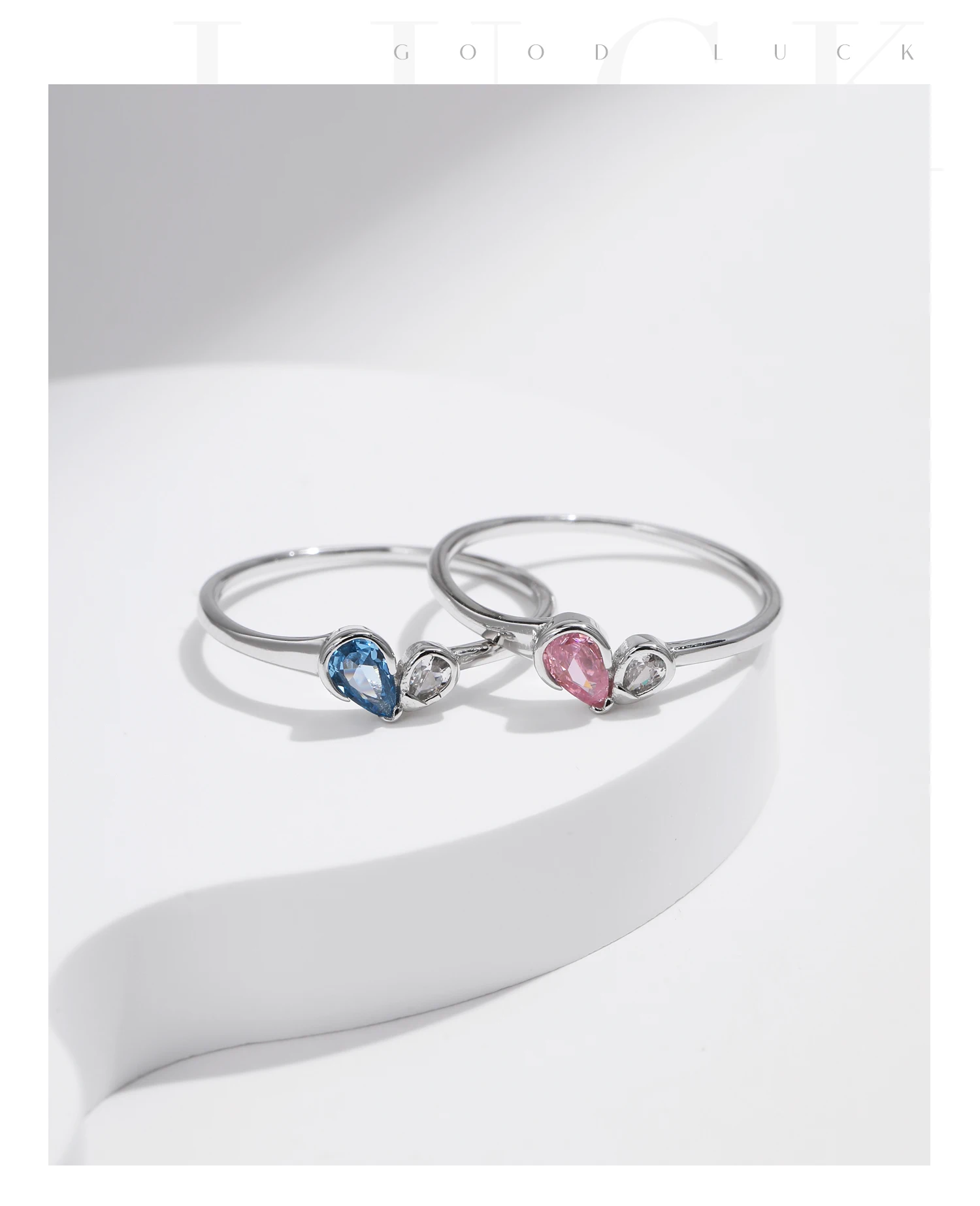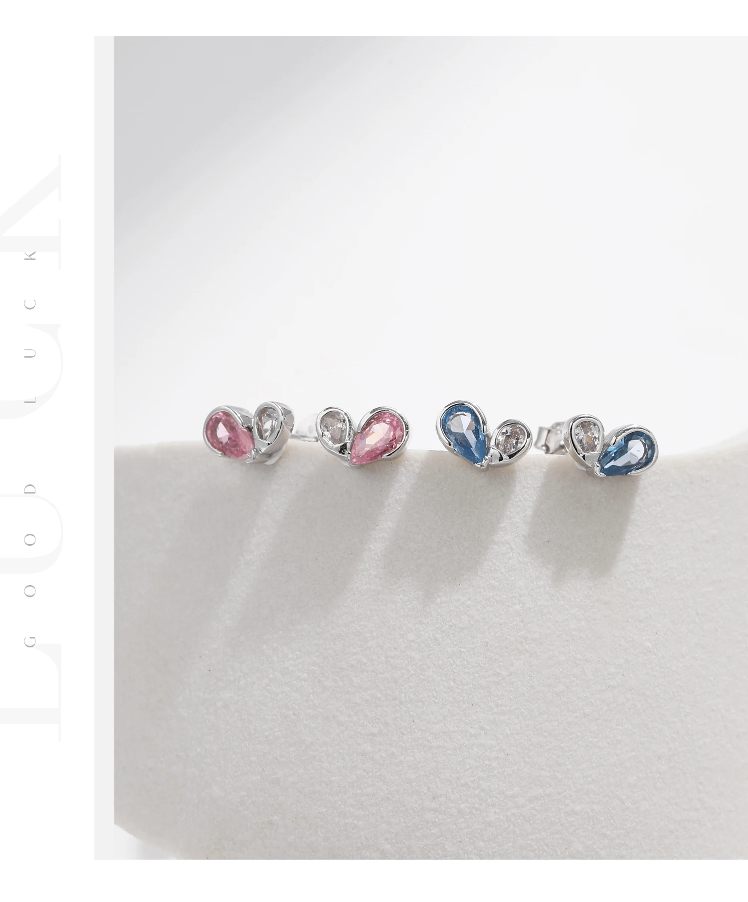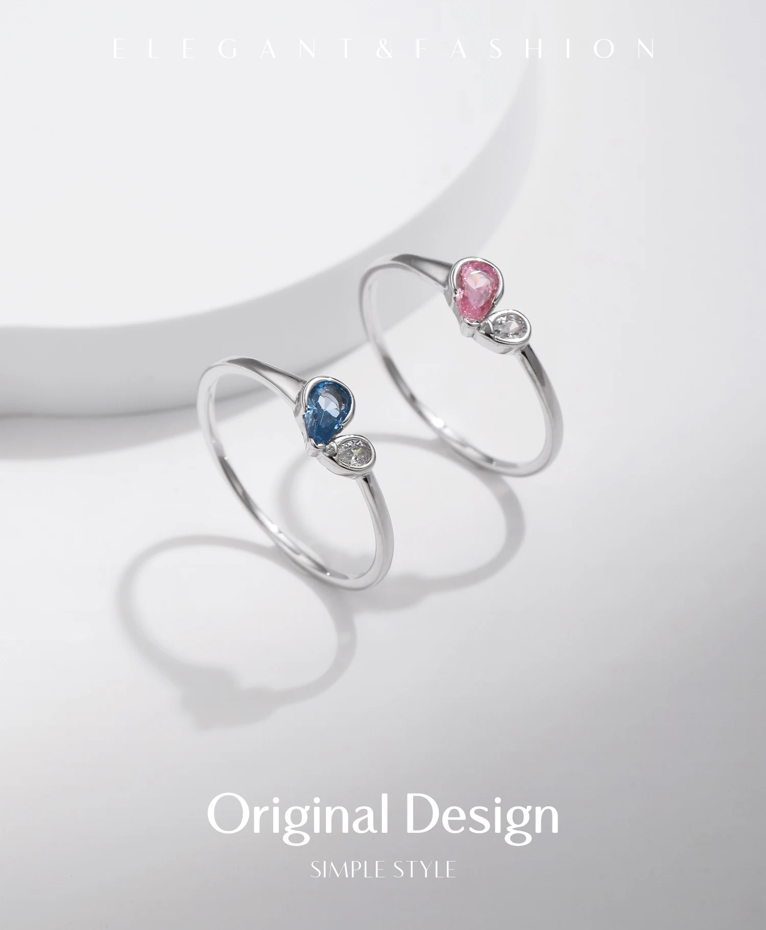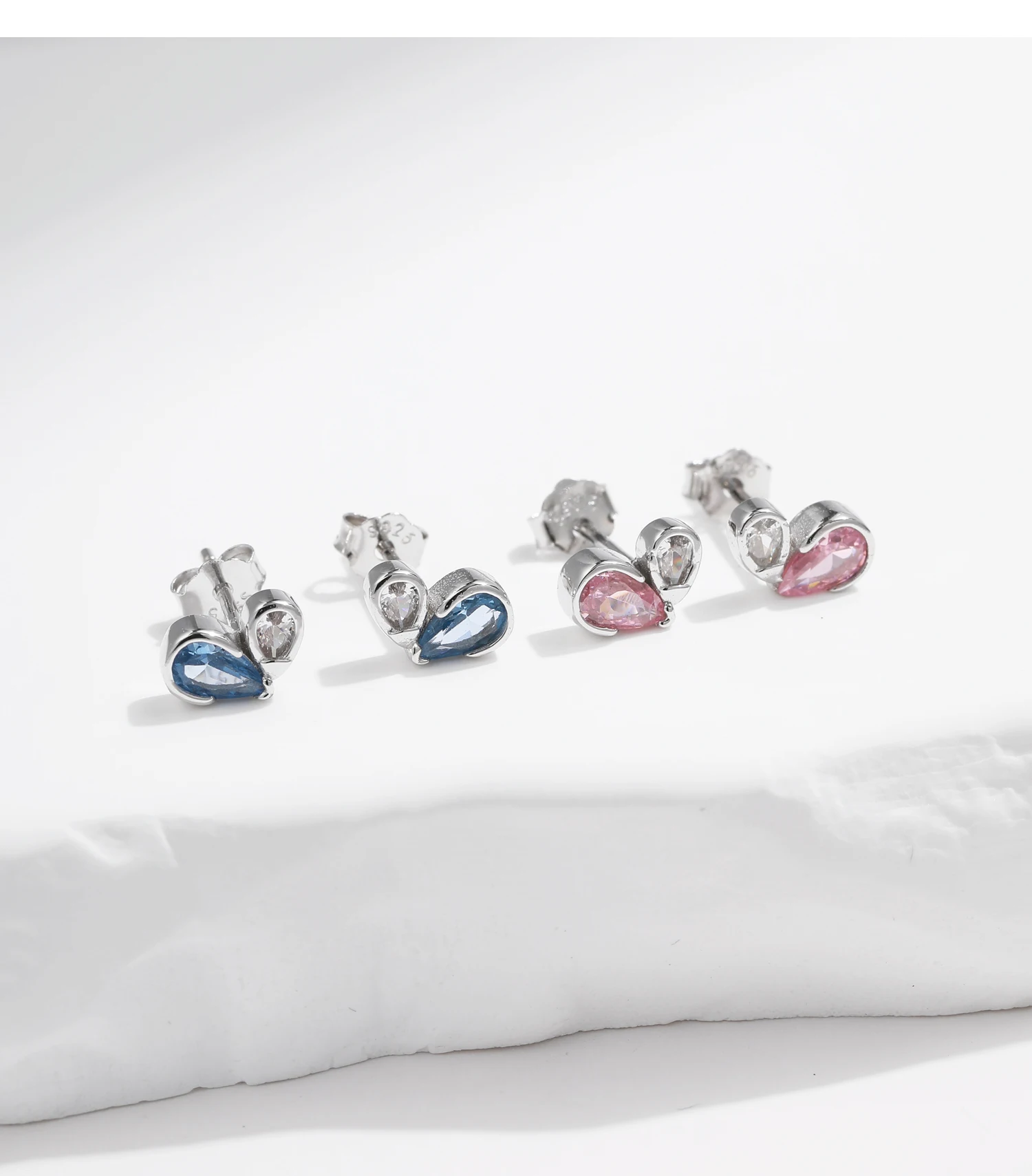 Conjunto de joyas MODIAN de plata de ley 925 con pequeños corazones románticos de circonita azul y rosa para mujer, anillos y pendientes de moda.