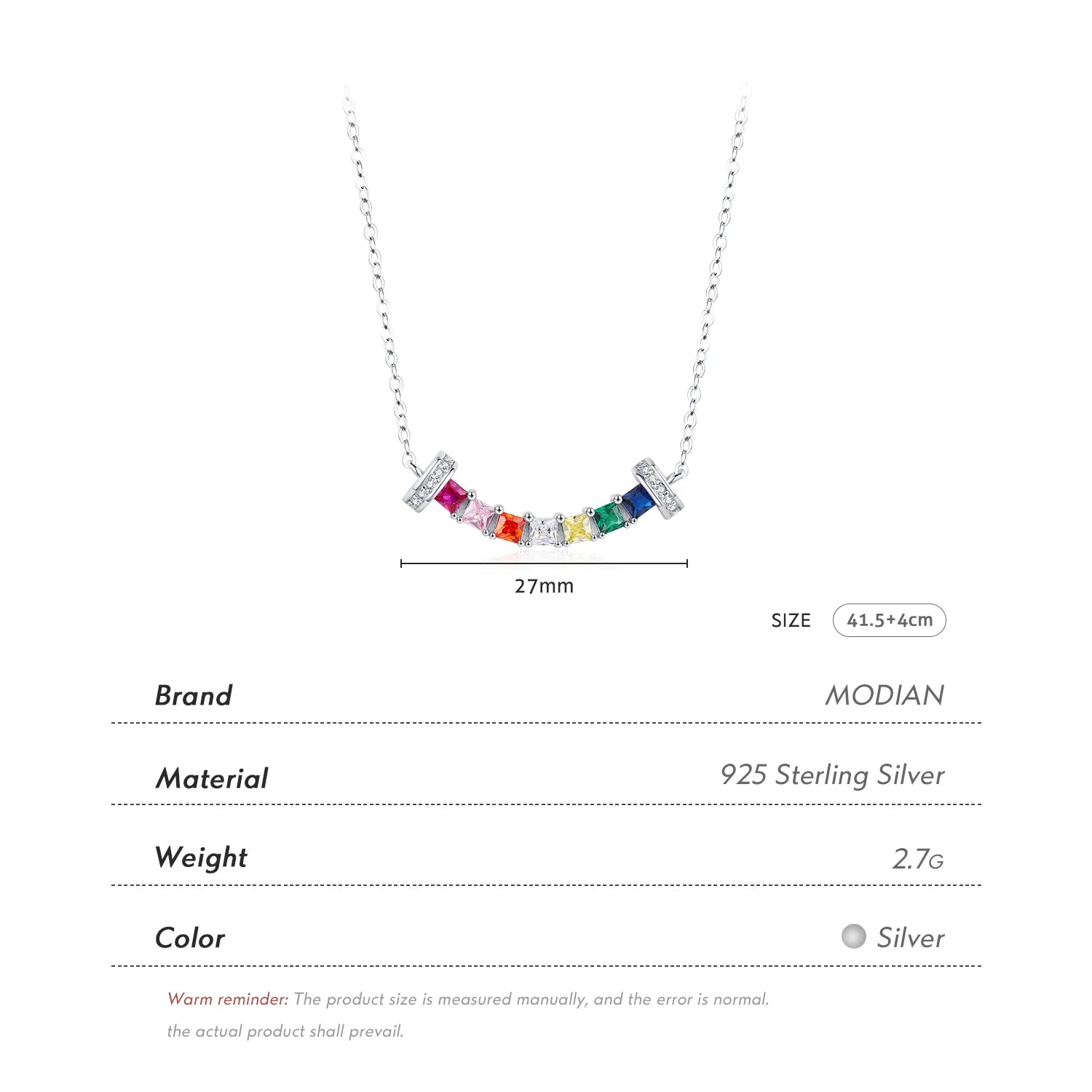 Collar con colgante de circonitas coloridas de arcoíris con forma de sonrisa cuadrada de plata de ley 925 de MODIAN, cadena de cuello de moda para mujer, joyería fina