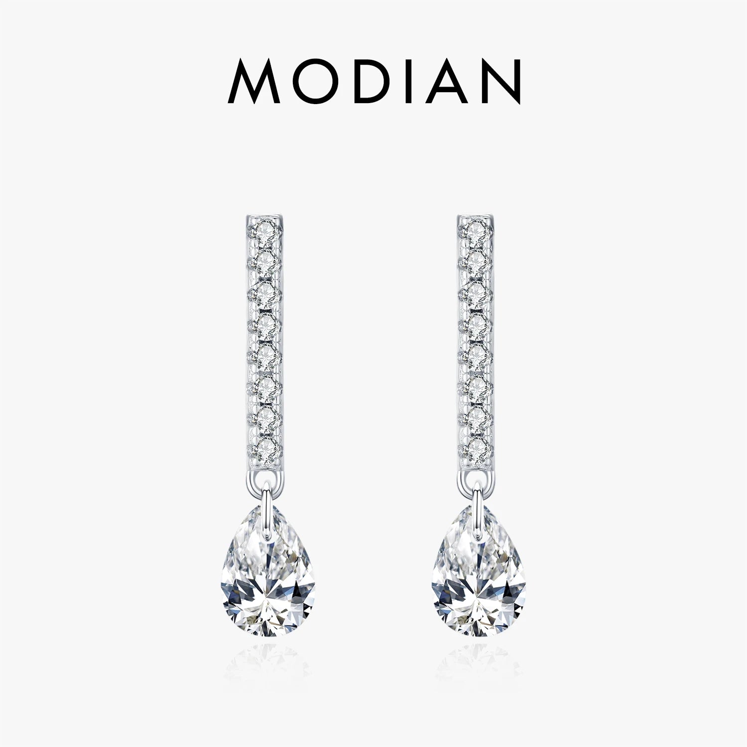 Pendientes MODIAN de plata de ley 925 con forma de gota de agua y circonita para mujer, joyería fina apilable para fiestas.