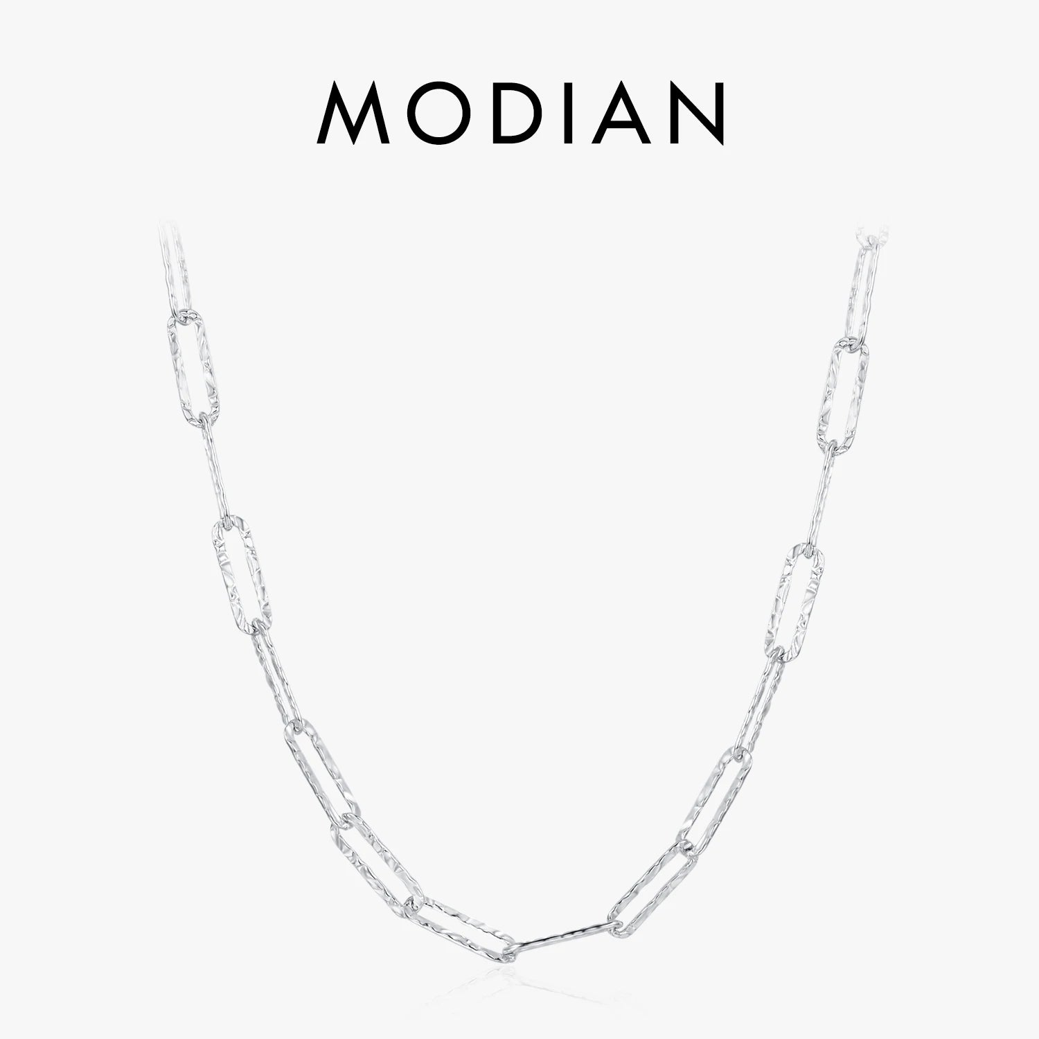 Collar moderno de plata de ley 925 con textura de papel de aluminio de MODIAN, joyería sencilla apilable chapada en platino para mujeres y niñas, accesorios