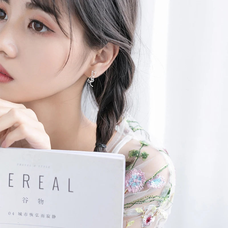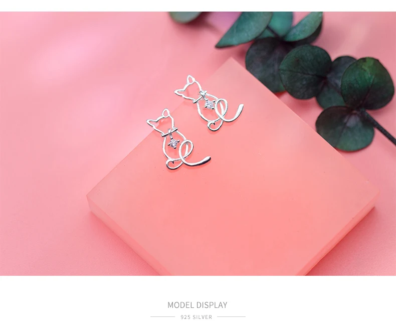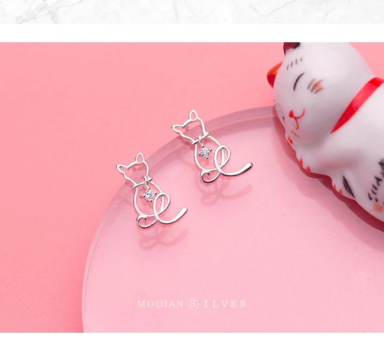 Pendientes Modian Charm Classic con circonitas transparentes, diseño de animales y gatos, joyería romántica de plata de ley 925 para mujer, para Navidad.