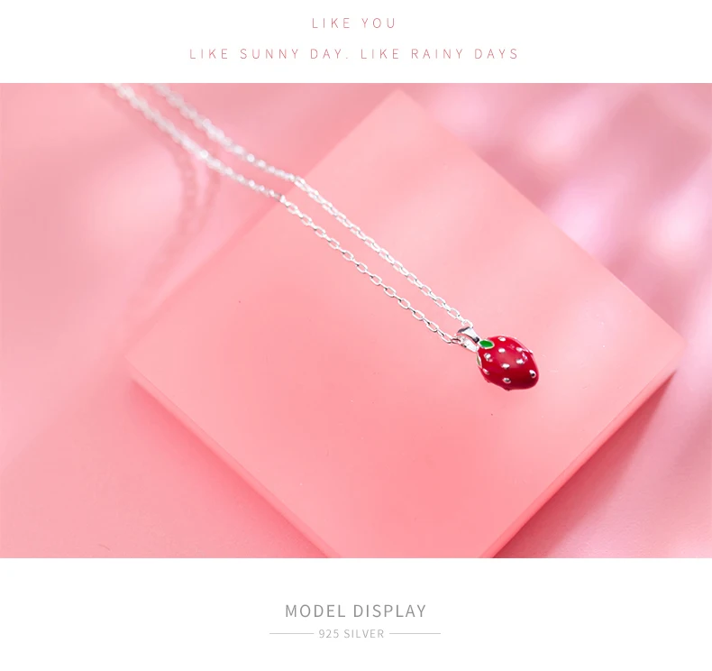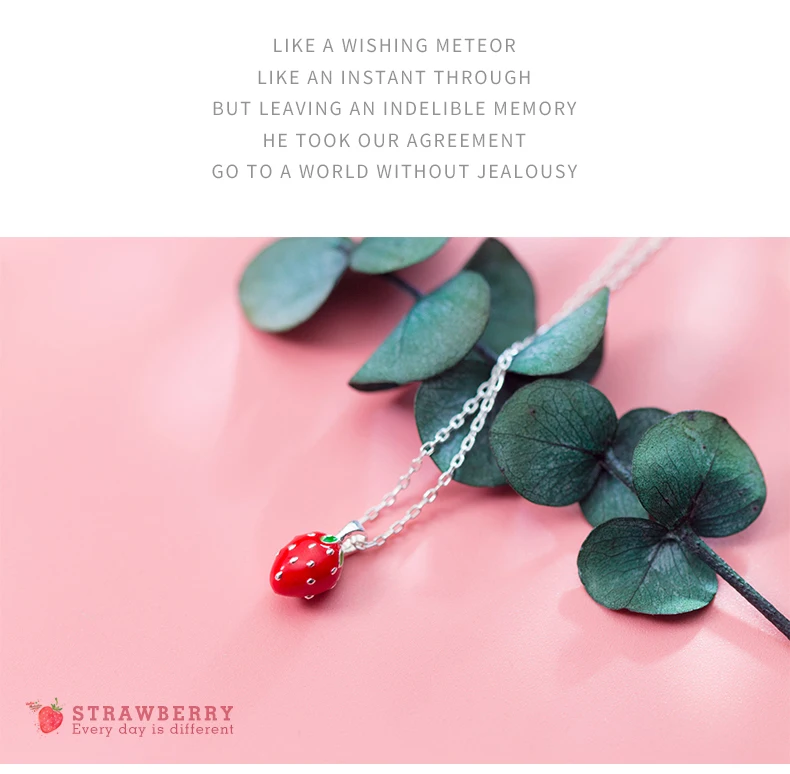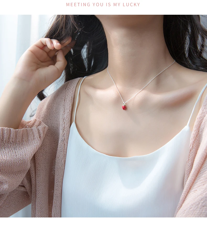 Collar Modian con dije de fresa dulce y encantador, colgante de plata de ley 100 % 925 para mujer, regalo de joyería para el Día de San Valentín.