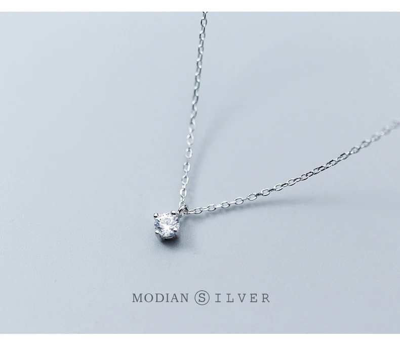 Collar con colgante redondo de circonita cúbica transparente clásico de Modian para mujer, 100 % plata de ley 925, joyería de cristal de 1,5 quilates, regalo