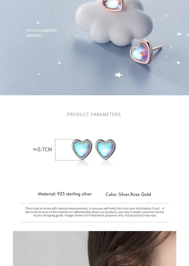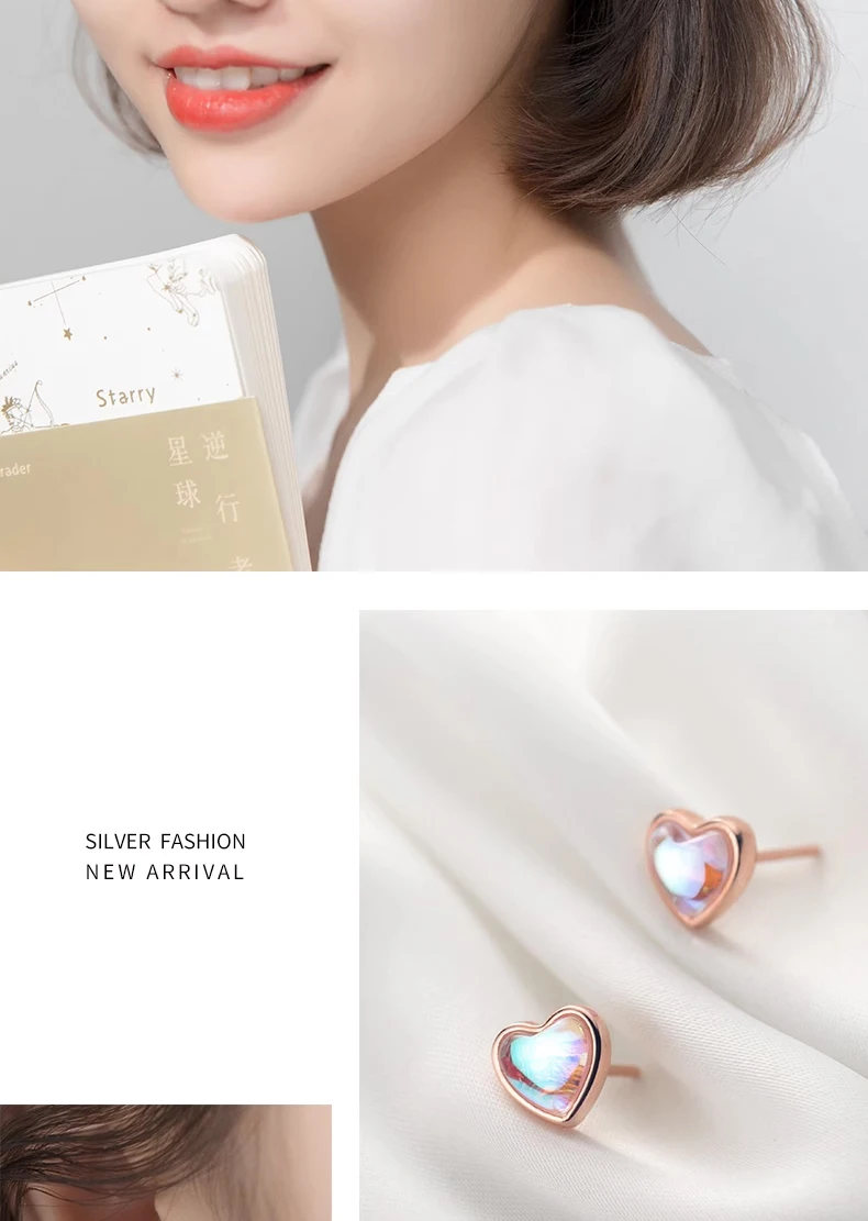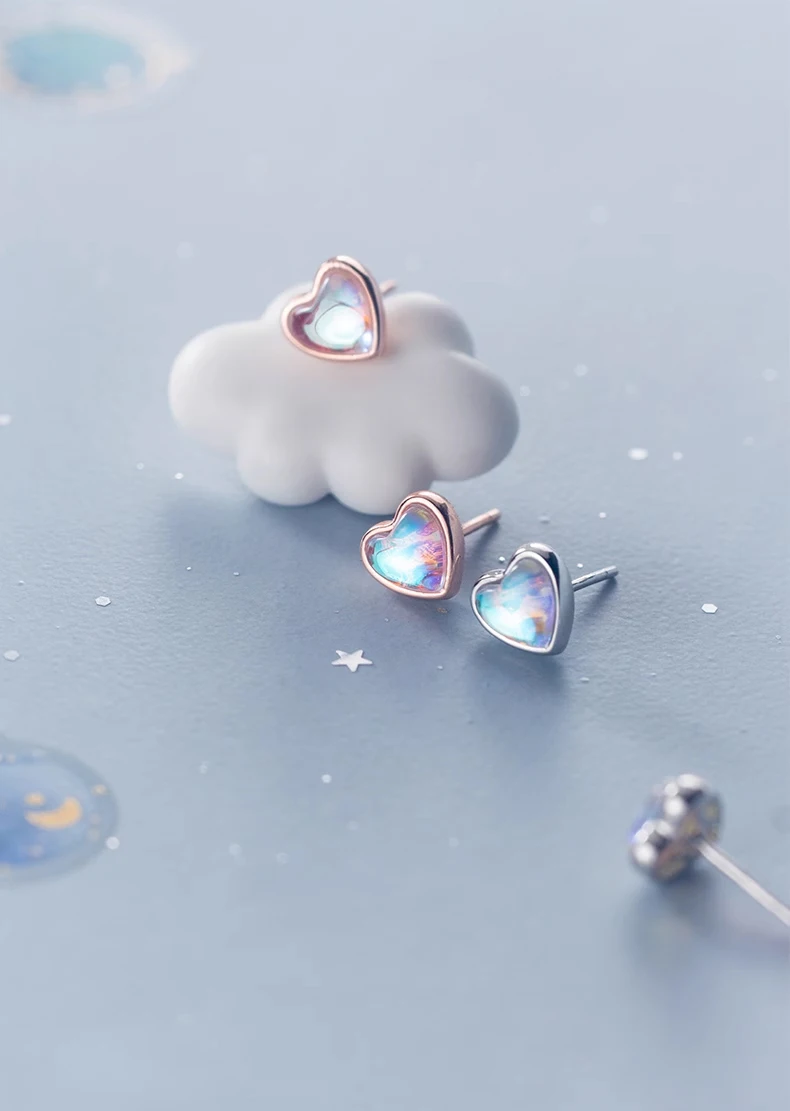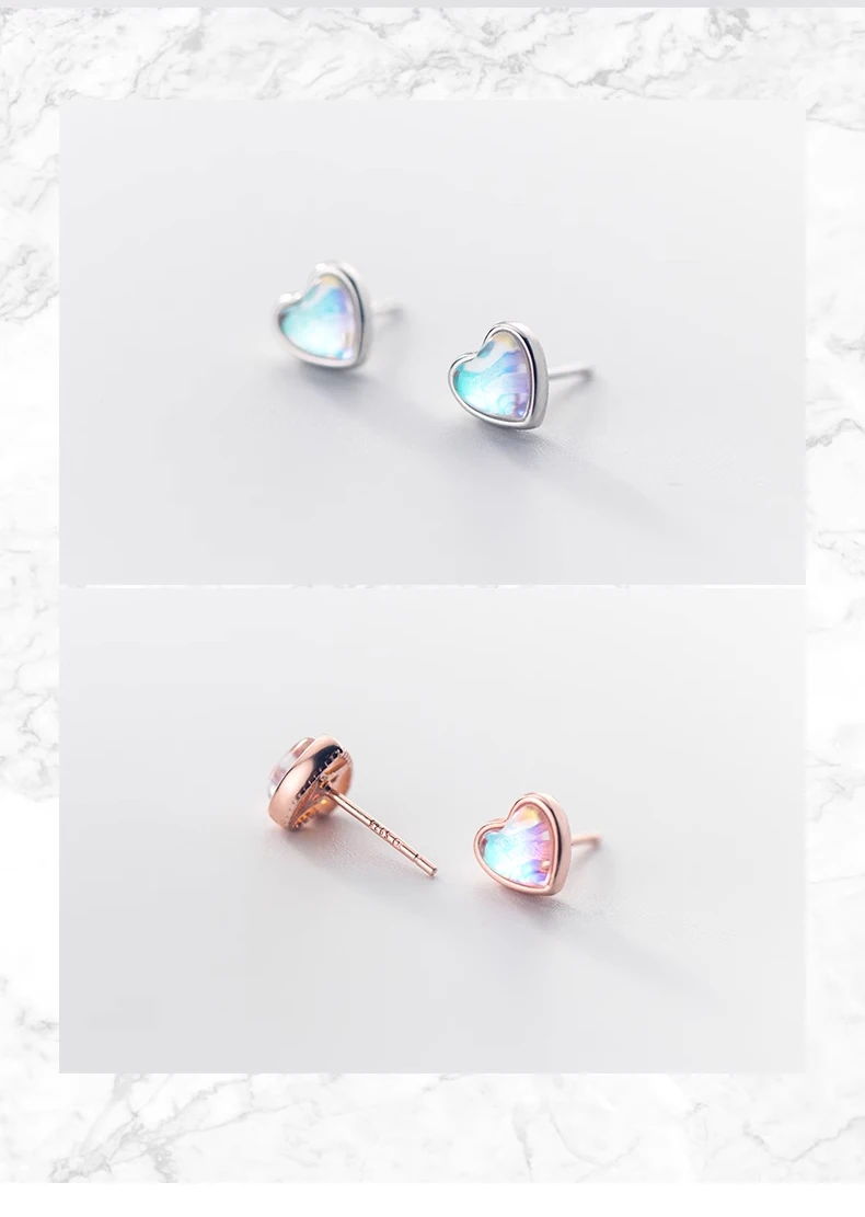 Pendientes Modian con forma de corazón para mujer, de plata de ley 925, con ópalo arcoíris, ideales para bodas, compromisos y otras ocasiones especiales.