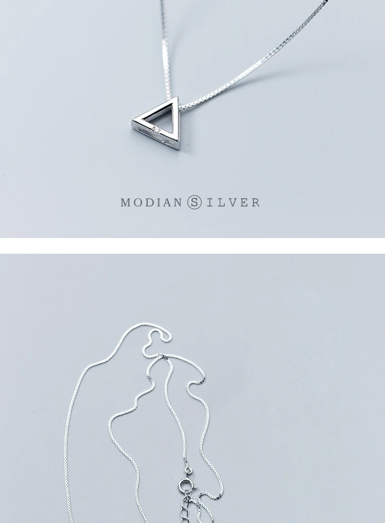 Collar con colgante mini de triángulo geométrico de diseño simple de Modian para mujer en plata de ley 925, joyería fina de estilo japonés.