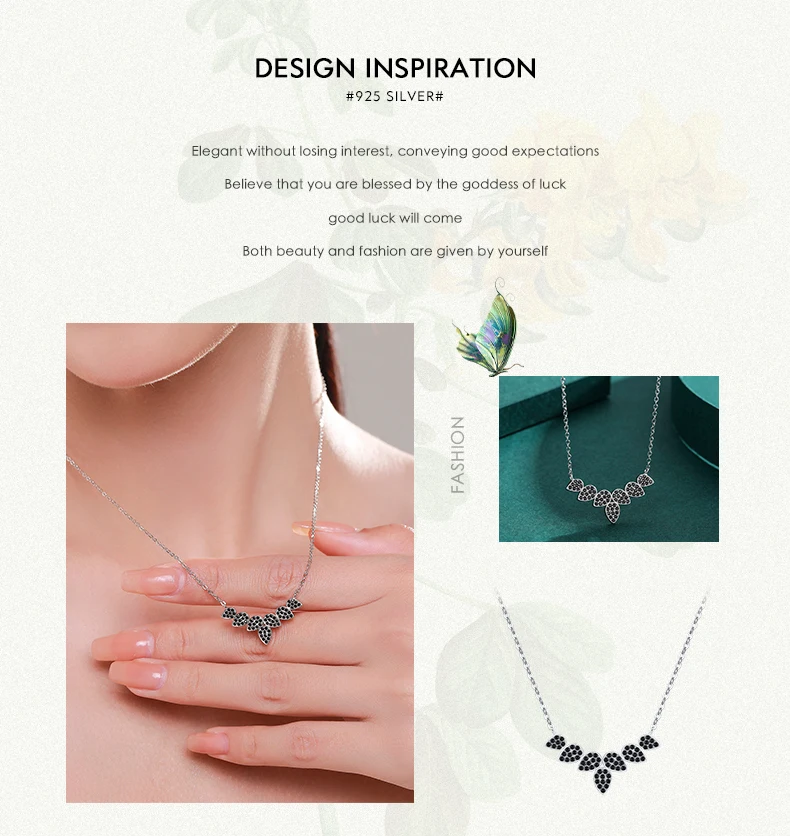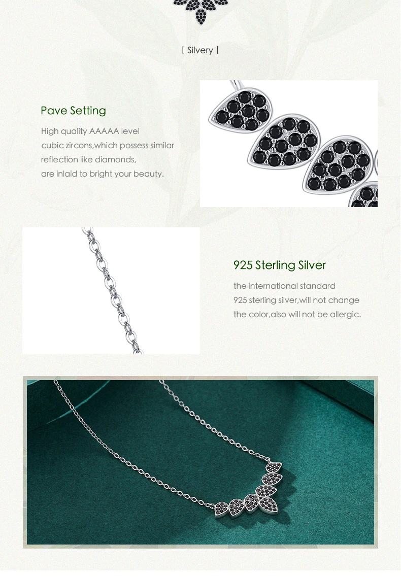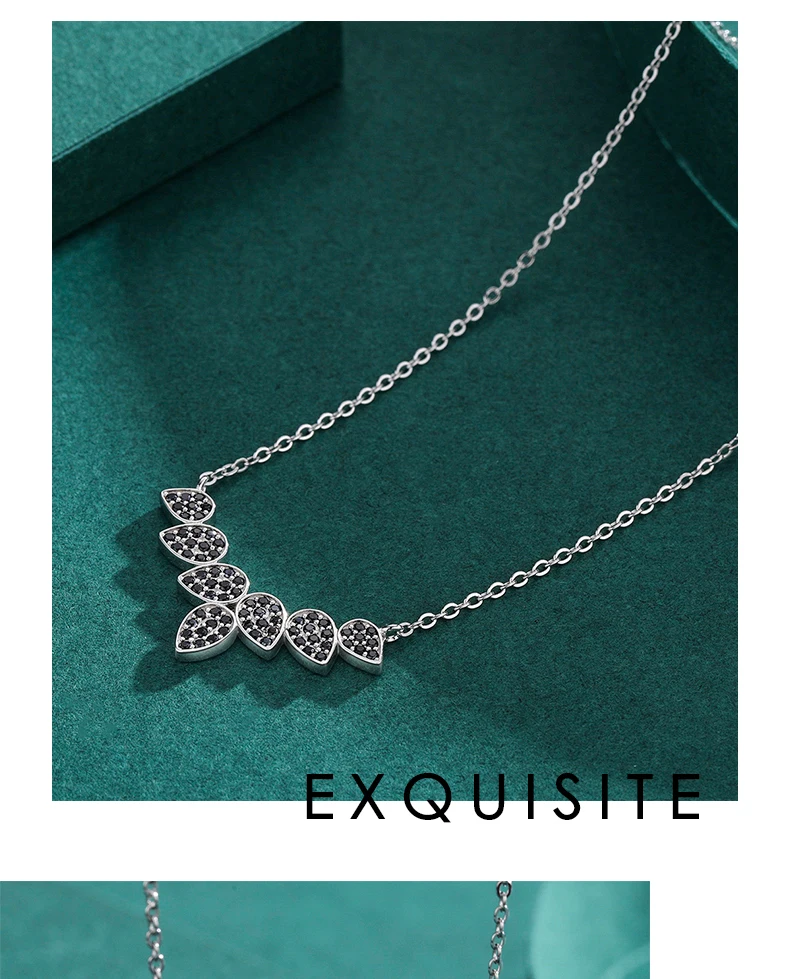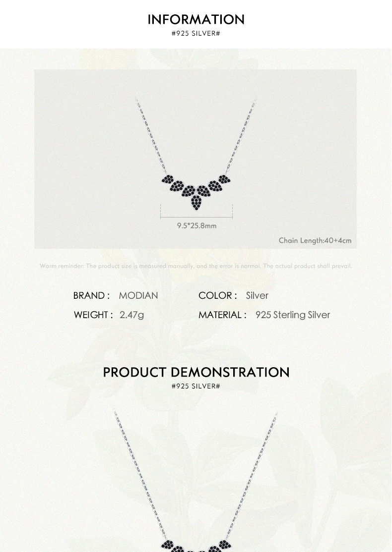 Collar con colgante de hojas de árbol y trigo de plata de ley 925 auténtica de MODIAN para mujer, joyería fina con circonita negra, accesorios de regalo.