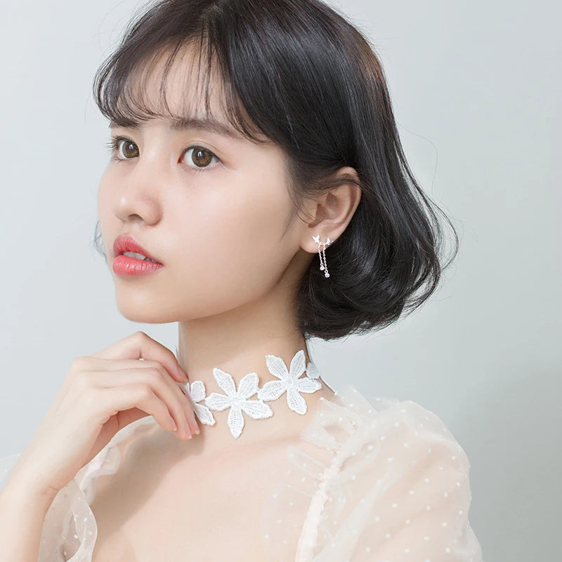 Modian - Pendientes de plata de ley 925 auténtica con forma de mariposa y brillantes para mujer y niña, ideal como regalo de fiesta o boda