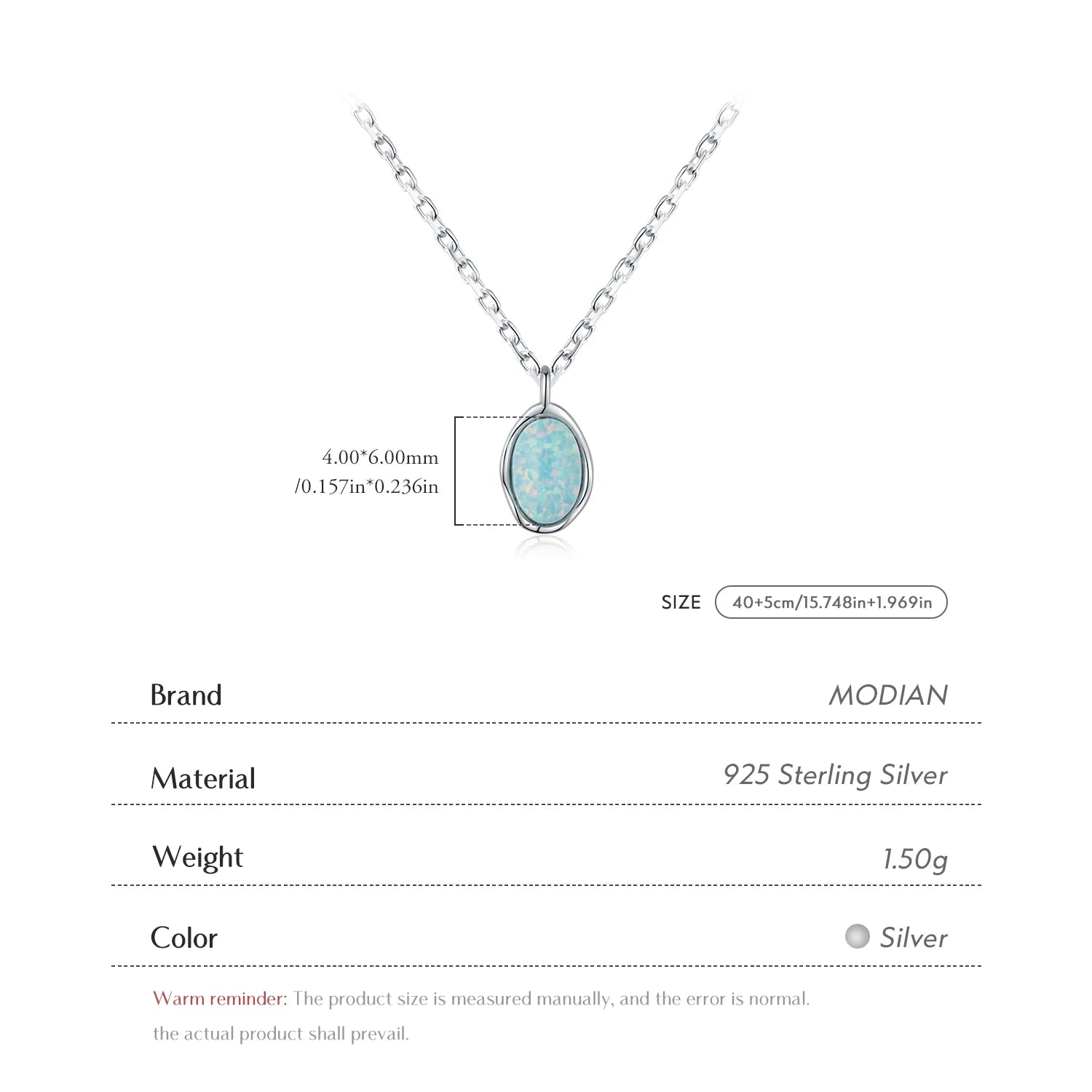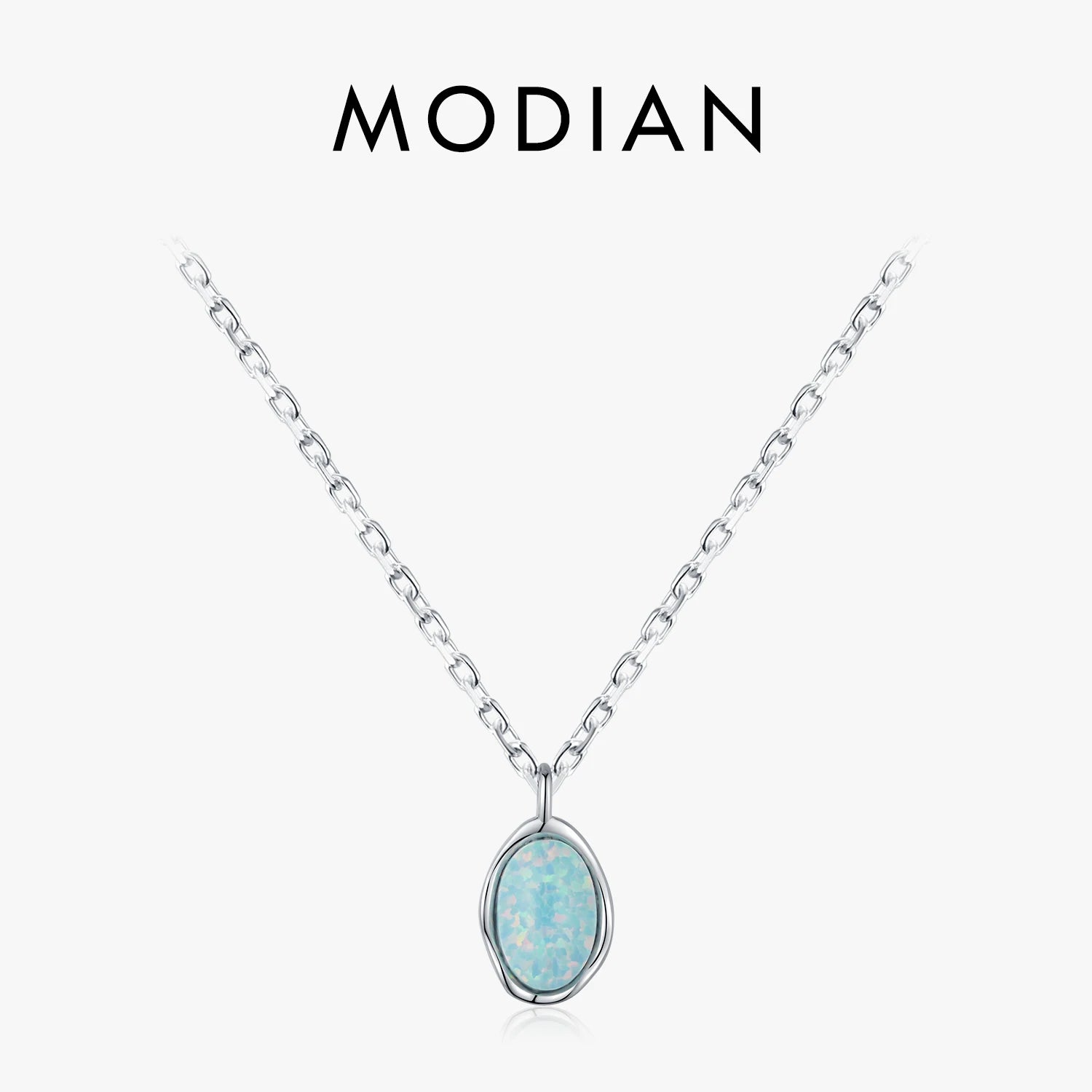 Collar de cadena de eslabones MODIAN de plata de ley 925 con colgante de ópalo de metal con ondas irregulares vintage para mujer, joyería fina