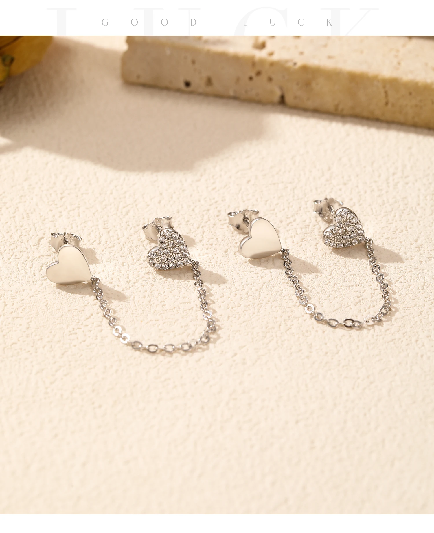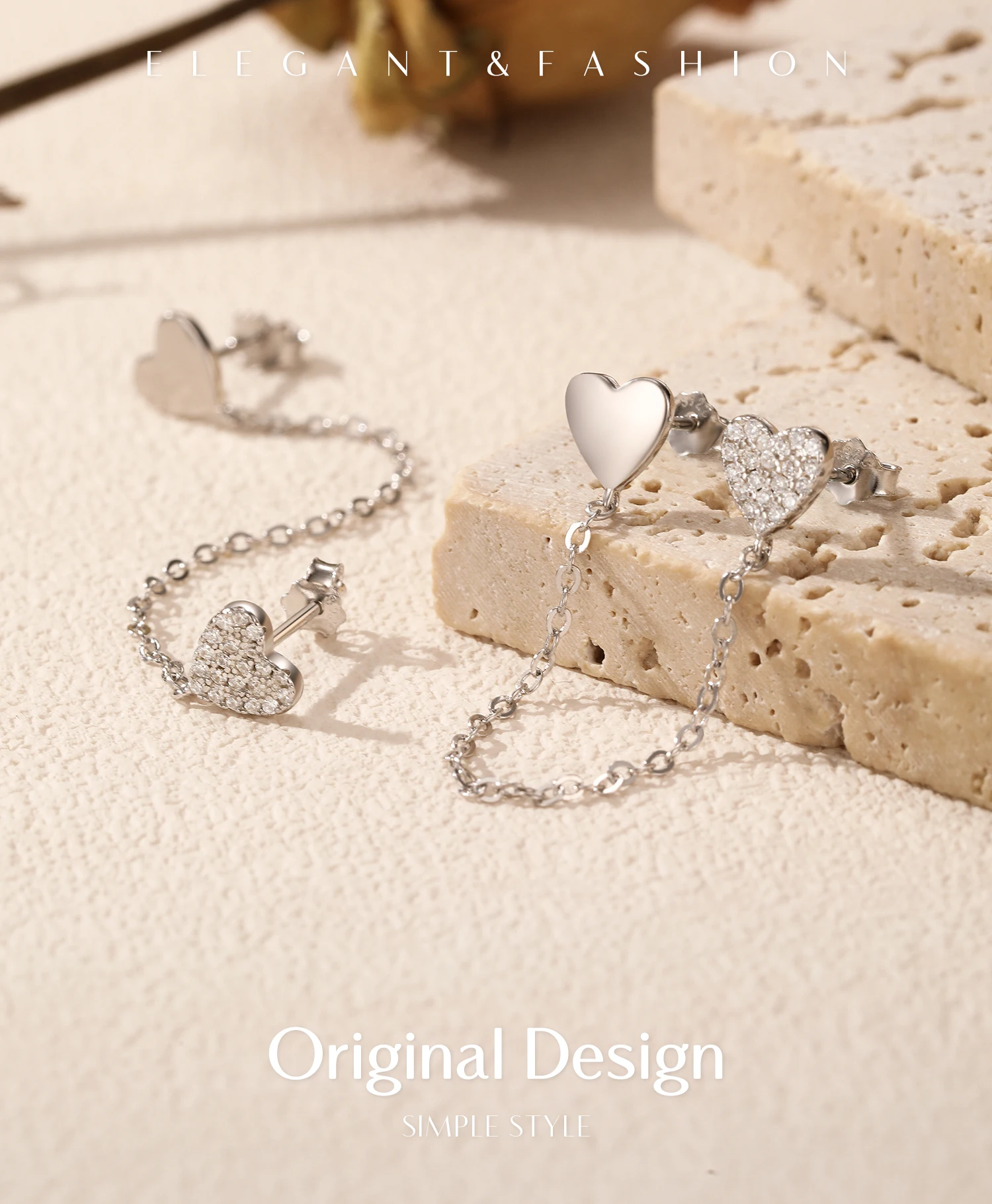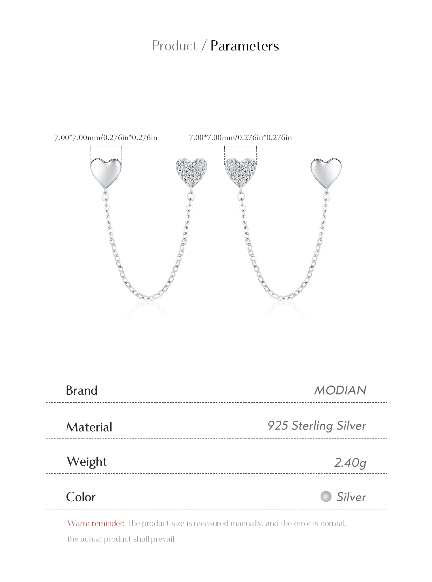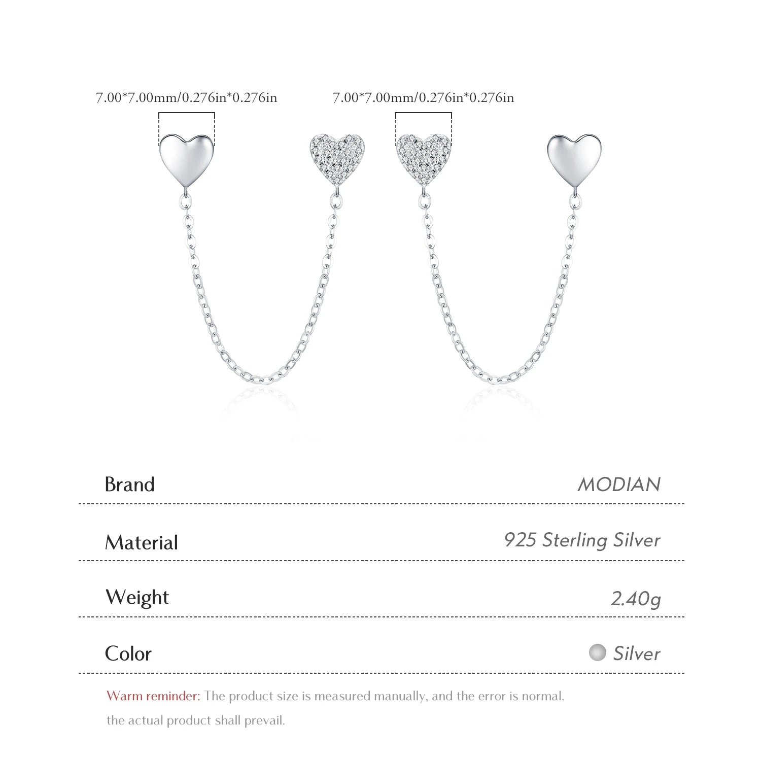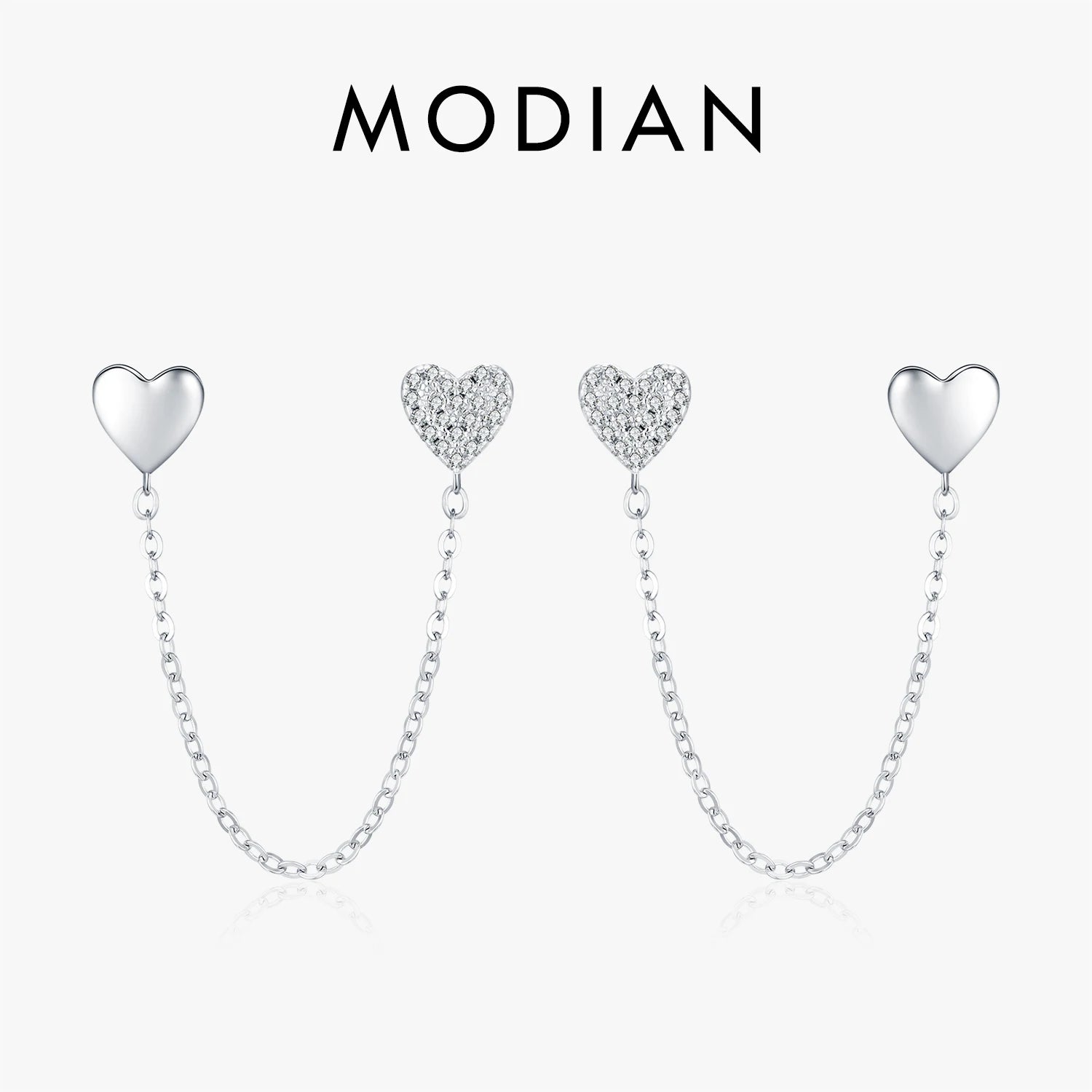 Pendientes MODIAN de plata de ley 925 con borlas y cadena larga, delicados pendientes de tuerca con forma de corazón y circonita cúbica para mujer, joyería fina apilable.
