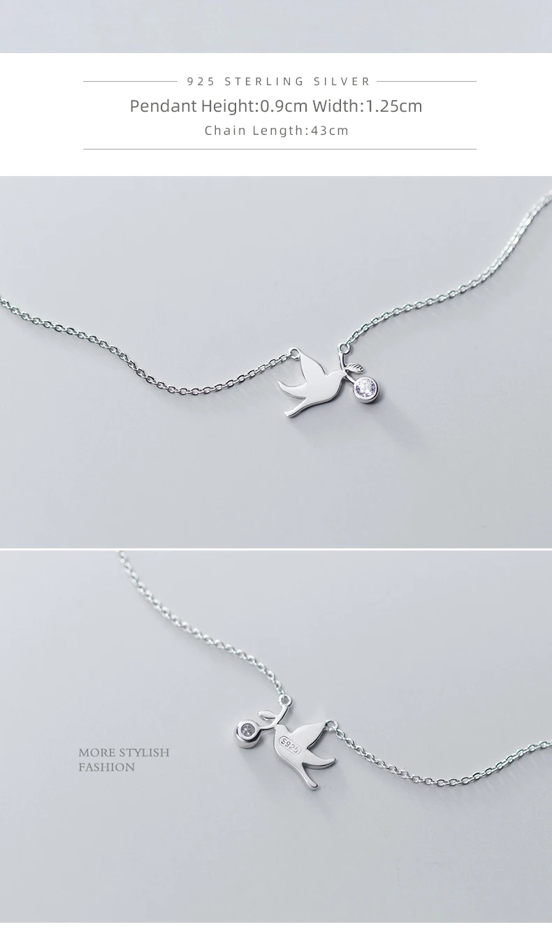 Colgante de plata de ley 925 con diseño de golondrina de mimbre, diseño de animal y planta, de Modian, para mujer, cadena de eslabones, joyería fina