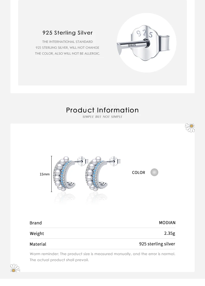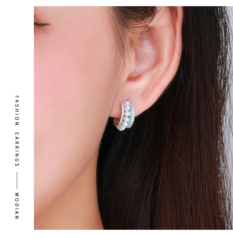 Pendientes Modian de lujo con turquesa, de plata de ley 925 auténtica, con perla y brillantes, para mujer, joyería de marca.