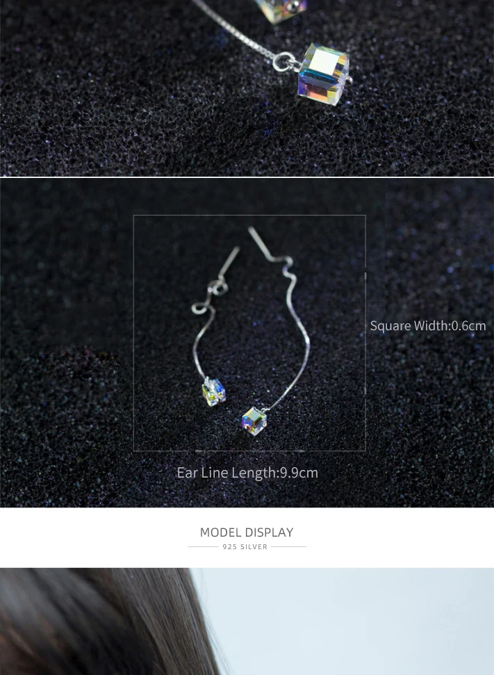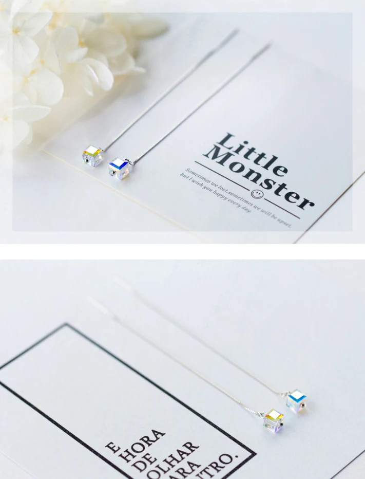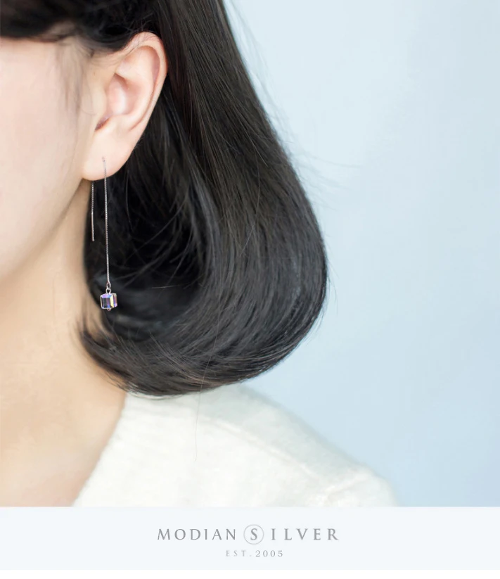 Modian - Pendientes de plata de ley 925 con forma de gota cuadrada geométrica de cristal colorido para mujer, joyería fina de moda