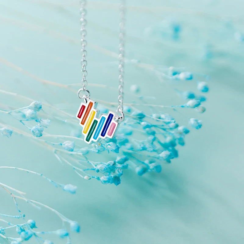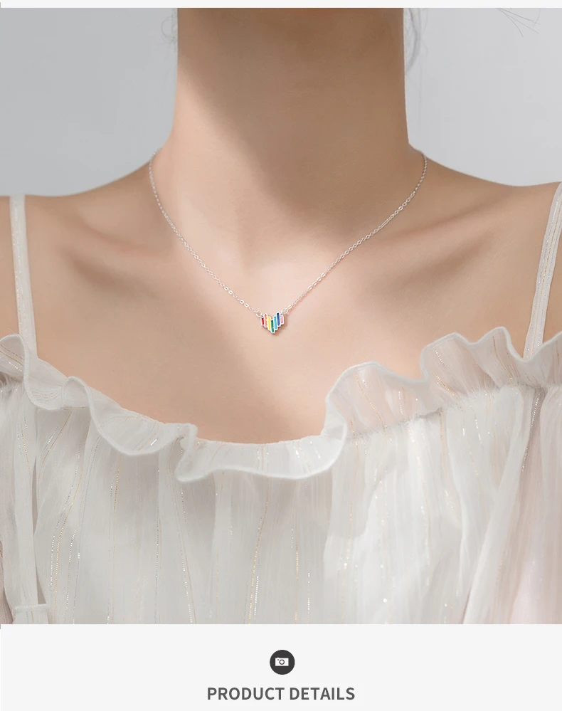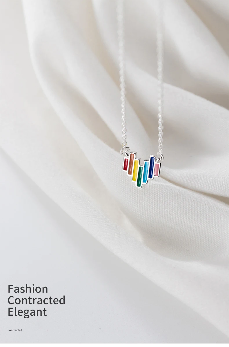 MODIAN - Nuevo collar con colgante de corazón de arcoíris en plata de ley 925 para mujer, collar colorido de moda, joyería fina de estilo coreano