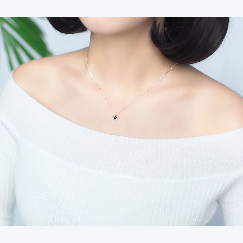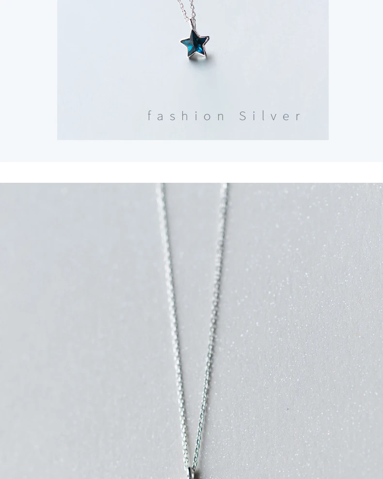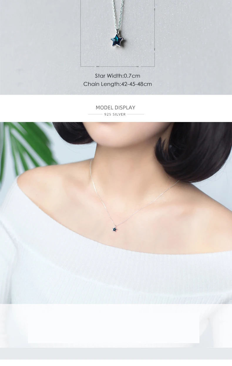 Collar Modian de plata de ley 925 con mini estrellas azules, colgante retro, ajustable, joyería fina original