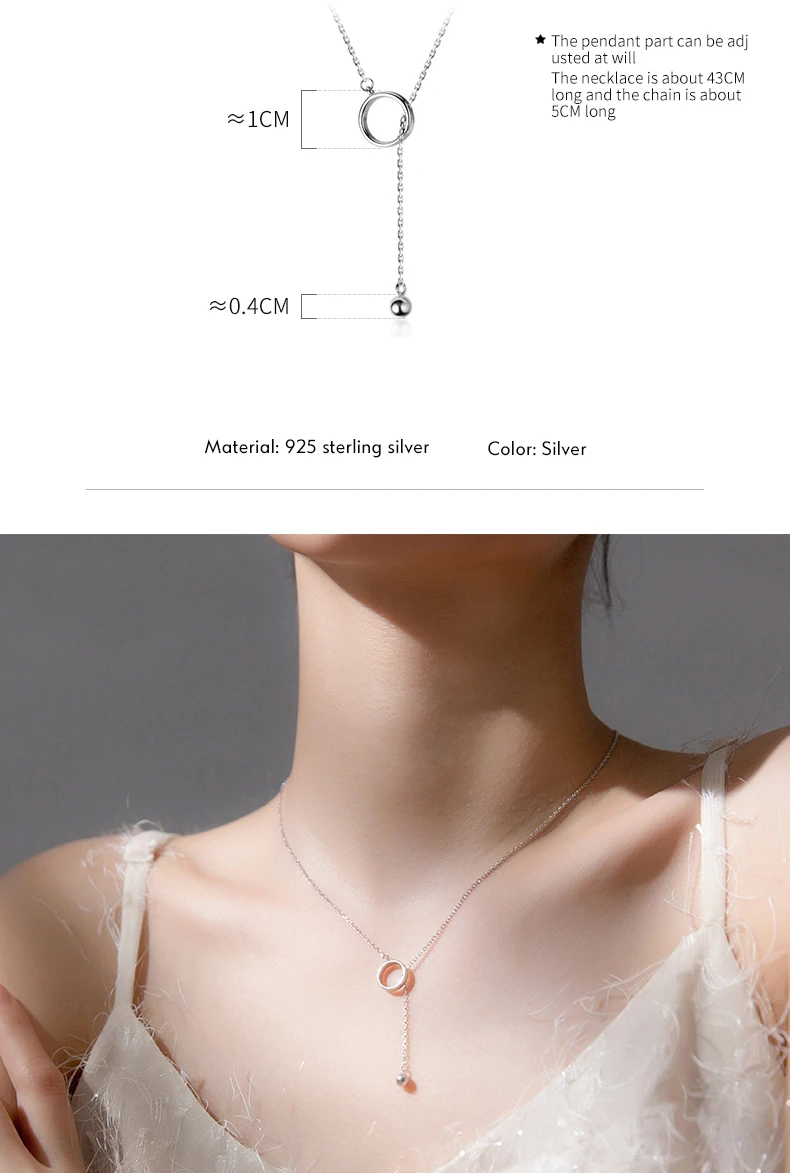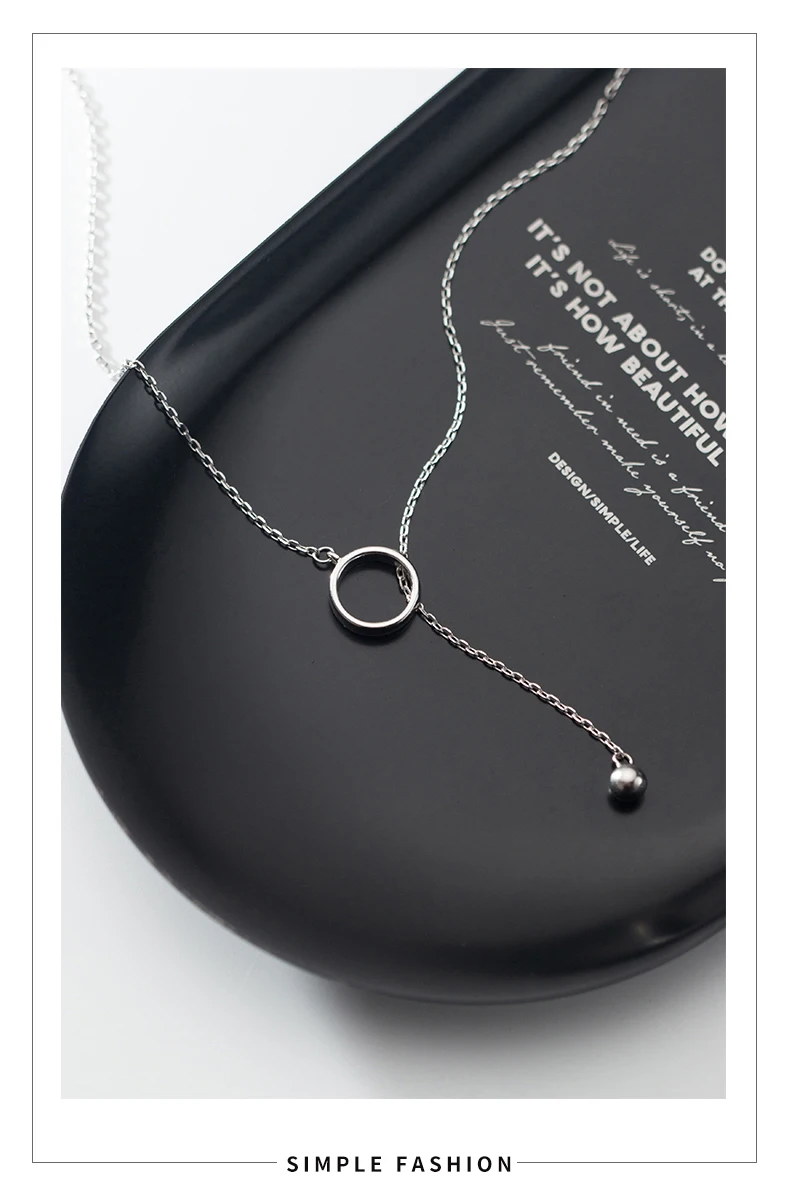 Collar con colgante de cuentas redondas de luz minimalista de plata esterlina 925 pura MODIAN para mujer, collar geométrico en forma de Y, joyería fina