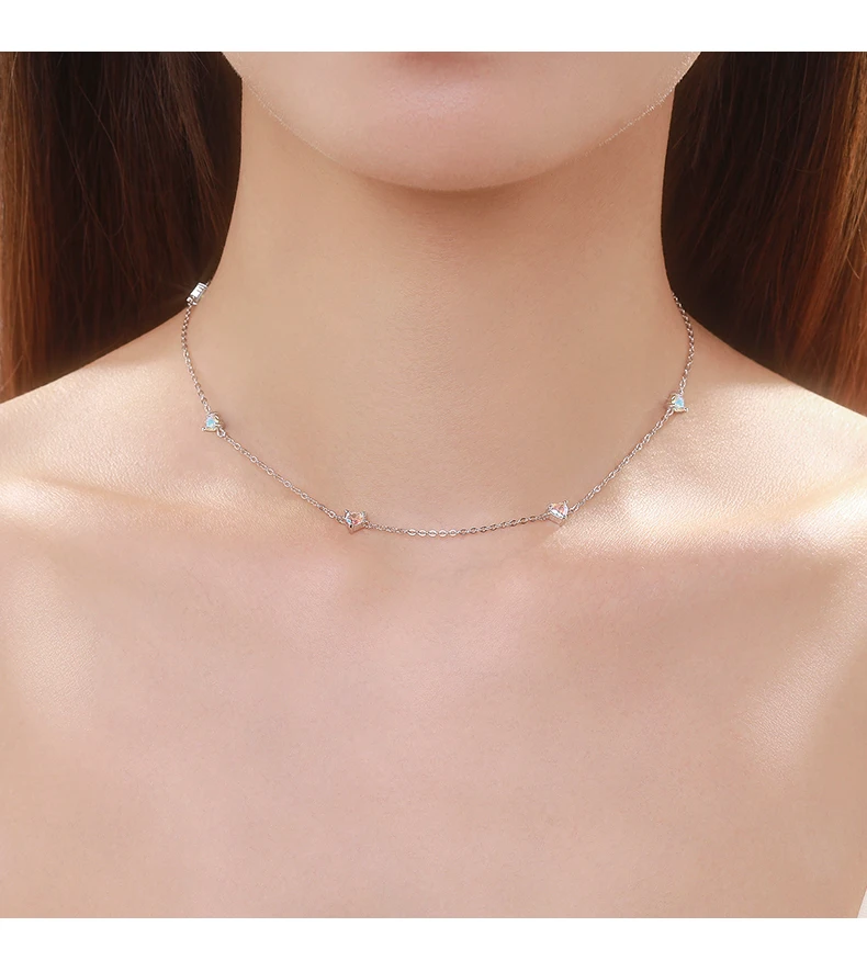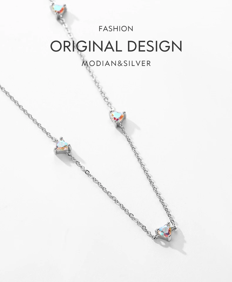 Gargantilla corta Modian de plata de ley 925 auténtica con circonitas de colores y dije de corazones para mujer, joyería fina para bodas.
